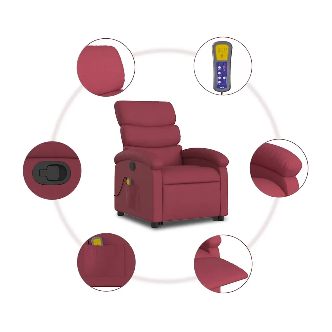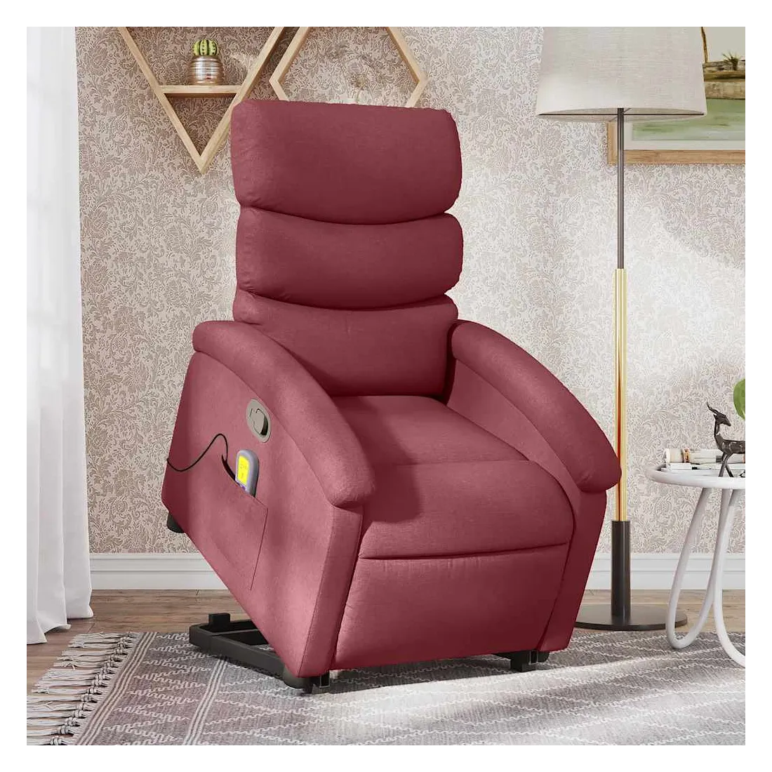 Asseyez-vous et détendez-vous dans ce fauteuil inclinable de massage très confortable ! Fonction de levage électrique : ce fauteuil inclinable pour personnes âgées est équipé d'un moteur électrique pour la fonction de levage. Grâce à la fonction qui pousse toute la chaise vers le haut, vous pouvez facilement vous tenir debout sans stresser votre dos et vos genoux en appuyant simplement sur le bouton.Fonction d'inclinaison manuelle : ce fauteuil inclinable est doté d'une poignée du côté droit. Vous pouvez régler manuellement le repose-pieds et le dossier dans n'importe quelle position selon votre confort en tirant simplement sur la poignée. Cette fonction permet une inclinaison maximale de 135 degrés. De plus, le dossier peut revenir rapidement à sa position d'origine en tirant simplement sur la poignée.Fonction de vibration : les 6 points de massage vous permettent de faire l'expérience d'un massage mieux ciblé. De plus, la télécommande incluse vous permet de choisir différents programmes de massage. La fonction de massage est alimentée par le connecteur USB qui nécessite une source d'alimentation USB certifiée de 5 V (non fournie).Expérience d'assise confortable : le siège, le dossier et les larges accoudoirs bien rembourrés recouverts de tissu procurent une sensation confortable et chaleureuse, vous permettant de vous sentir enveloppé lorsque vous êtes assis. Le tissu présente un aspect simple et épuré et est respirant et durable.Poche latérale pratique : ce fauteuil est doté d'une poche latérale pour ranger votre télécommande ou garder vos objets essentiels à portée de main.Cadre solide et stable : le cadre en bois et en métal offre une structure solide et une grande stabilité. Ce fauteuil inclinable est confortable et durable.