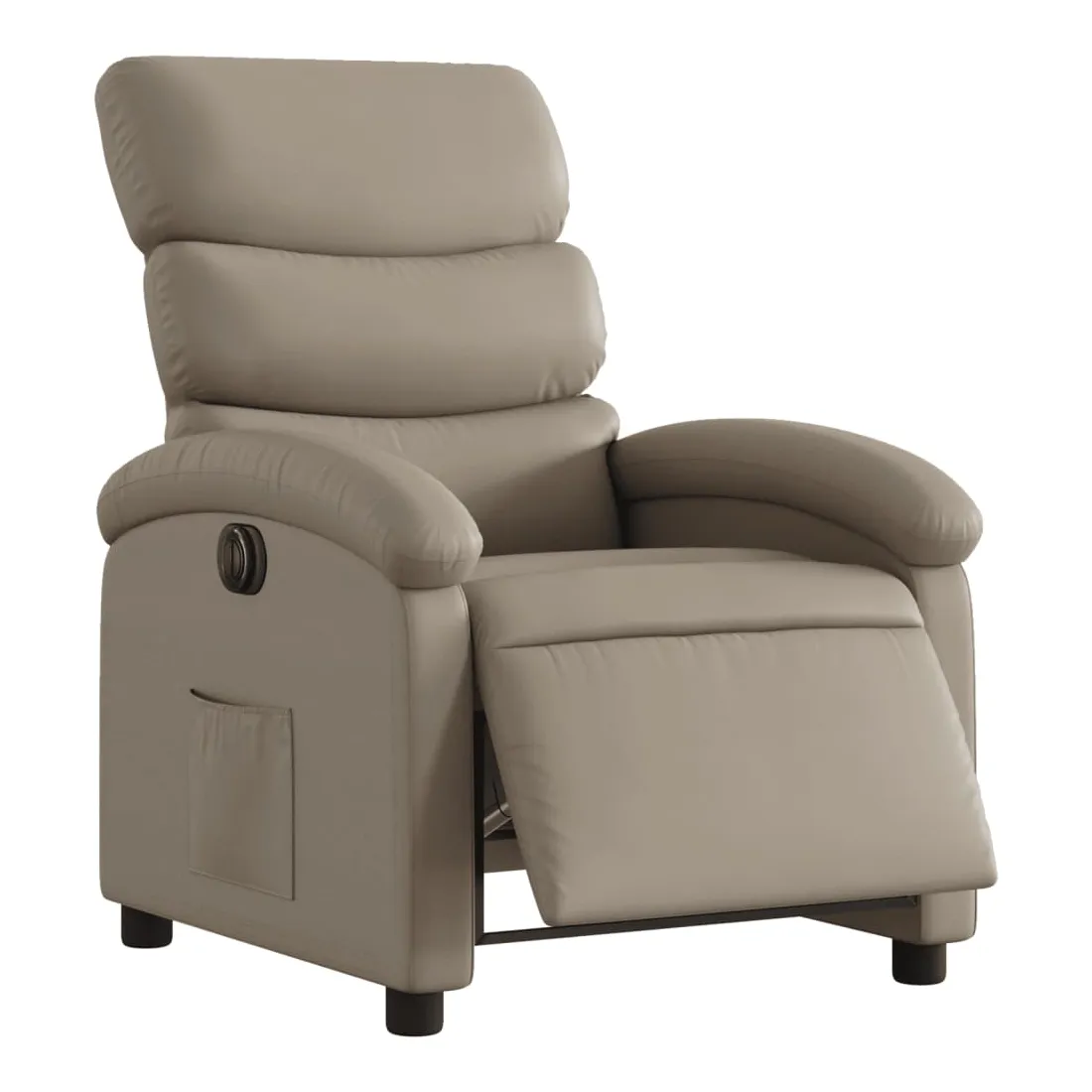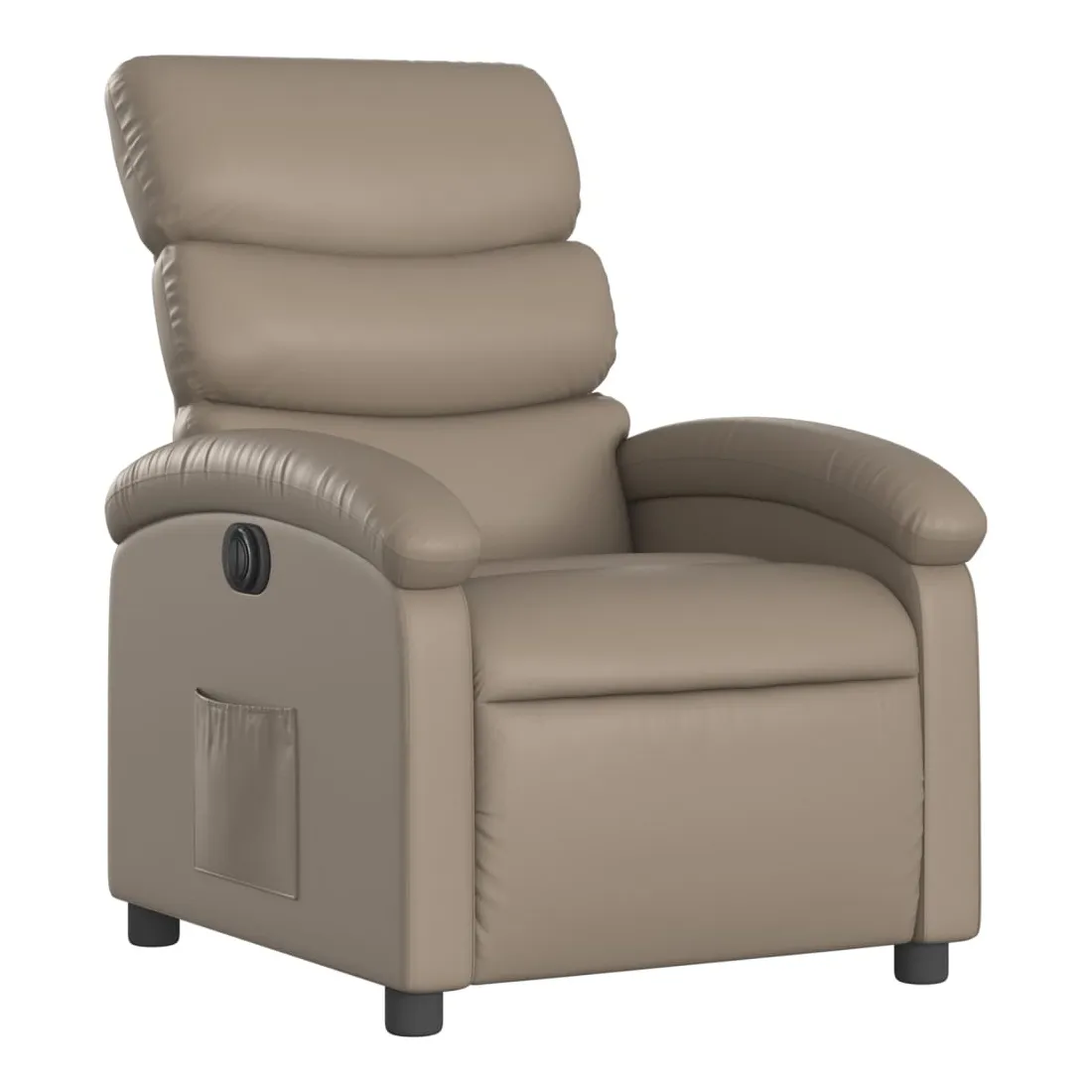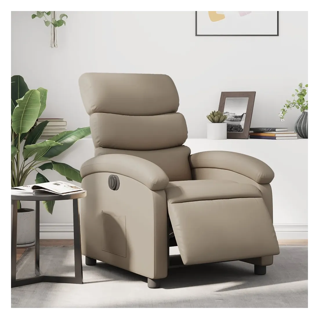 Asseyez-vous et détendez-vous dans ce fauteuil inclinable électrique très confortable ! Fonction d'inclinaison électrique : ce fauteuil inclinable est équipé d'un moteur électrique qui permet de régler automatiquement le repose-pied et le dossier dans n'importe quelle position, selon votre confort, en appuyant simplement sur le bouton situé sur le côté du fauteuil. Cette fonction permet une inclinaison maximale de 135 degrés. En outre, le dossier peut revenir automatiquement à sa position d'origine par une simple pression sur le bouton.Expérience de siège confortable : le siège, le dossier et les larges accoudoirs rembourrés épais recouverts de similicuir procurent une sensation confortable, vous faisant vous sentir enlacé lorsque vous êtes assis. Le similicuir est un matériau très résistant. Il est résistant aux taches, ce qui le rend facile à nettoyer avec un chiffon humide. La surface lisse donne également un aspect luxueux et la beauté du cuir véritable.Poche latérale pratique : ce fauteuil est doté d'une poche latérale pour vous permettre de garder vos objets essentiels à portée de main.Cadre solide et stable : le cadre en bois et en métal offre une structure solide et une grande stabilité. Ce fauteuil inclinable est confortable et durable.