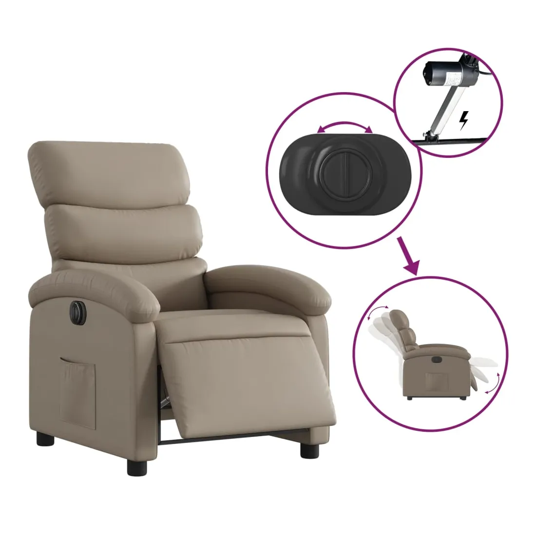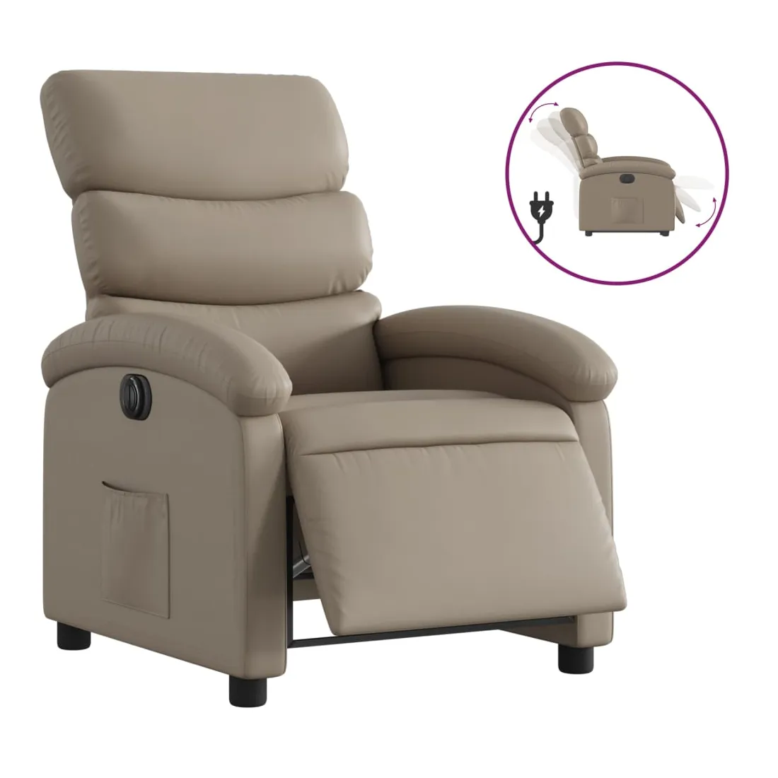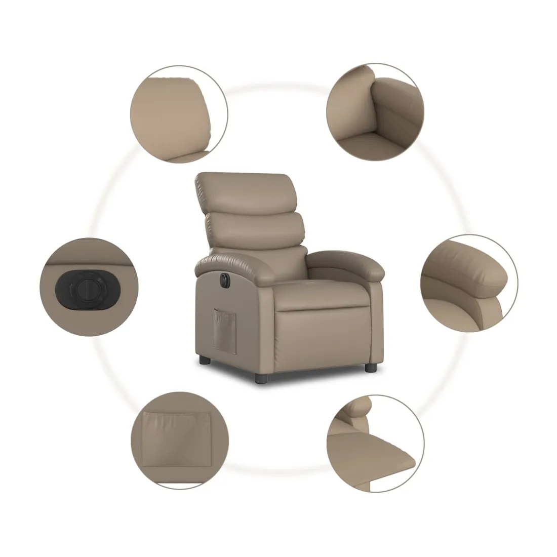 Asseyez-vous et détendez-vous dans ce fauteuil inclinable électrique très confortable ! Fonction d'inclinaison électrique : ce fauteuil inclinable est équipé d'un moteur électrique qui permet de régler automatiquement le repose-pied et le dossier dans n'importe quelle position, selon votre confort, en appuyant simplement sur le bouton situé sur le côté du fauteuil. Cette fonction permet une inclinaison maximale de 135 degrés. En outre, le dossier peut revenir automatiquement à sa position d'origine par une simple pression sur le bouton.Expérience de siège confortable : le siège, le dossier et les larges accoudoirs rembourrés épais recouverts de similicuir procurent une sensation confortable, vous faisant vous sentir enlacé lorsque vous êtes assis. Le similicuir est un matériau très résistant. Il est résistant aux taches, ce qui le rend facile à nettoyer avec un chiffon humide. La surface lisse donne également un aspect luxueux et la beauté du cuir véritable.Poche latérale pratique : ce fauteuil est doté d'une poche latérale pour vous permettre de garder vos objets essentiels à portée de main.Cadre solide et stable : le cadre en bois et en métal offre une structure solide et une grande stabilité. Ce fauteuil inclinable est confortable et durable.