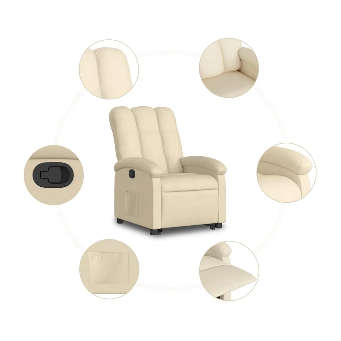 Asseyez-vous et détendez-vous dans ce fauteuil inclinable très confortable ! Fonction de levage électrique : ce fauteuil inclinable pour personnes âgées est équipé d'un moteur électrique pour la fonction de levage. Grâce à la fonction qui pousse toute la chaise vers le haut, vous pouvez facilement vous tenir debout sans stresser votre dos et vos genoux en appuyant simplement sur le bouton.Fonction d'inclinaison manuelle : ce fauteuil inclinable est doté d'une poignée du côté droit. Vous pouvez régler manuellement le repose-pieds et le dossier dans n'importe quelle position selon votre confort en tirant simplement sur la poignée. Cette fonction permet une inclinaison maximale de 135 degrés. De plus, le dossier peut revenir rapidement à sa position d'origine en tirant simplement sur la poignée.Expérience d'assise confortable : le siège, le dossier et les larges accoudoirs bien rembourrés recouverts de tissu procurent une sensation confortable et chaleureuse, vous permettant de vous sentir enveloppé lorsque vous êtes assis. Le tissu présente un aspect simple et épuré et est respirant et durable.Poche latérale pratique : ce fauteuil est doté d'une poche latérale pour vous permettre de garder vos objets essentiels à portée de main.Cadre solide et stable : le cadre en bois et en métal offre une structure solide et une grande stabilité. Ce fauteuil inclinable est confortable et durable.