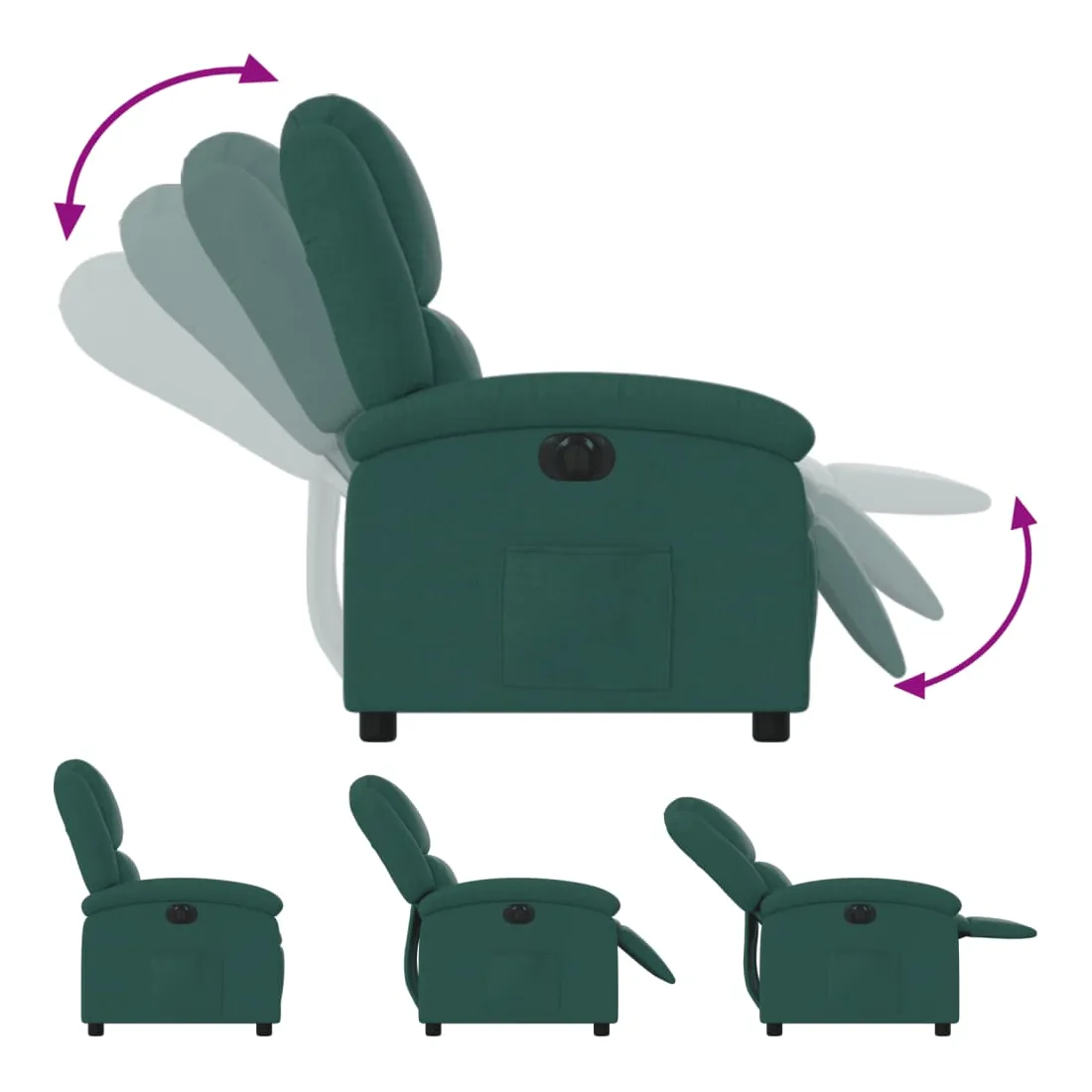 Asseyez-vous et détendez-vous dans ce fauteuil inclinable électrique très confortable ! Fonction d'inclinaison électrique : ce fauteuil inclinable est équipé d'un moteur électrique qui permet de régler automatiquement le repose-pied et le dossier dans n'importe quelle position, selon votre confort, en appuyant simplement sur le bouton situé sur le côté du fauteuil. Cette fonction permet une inclinaison maximale de 135 degrés. En outre, le dossier peut revenir automatiquement à sa position d'origine par une simple pression sur le bouton.Expérience d'assise confortable : le siège, le dossier et les larges accoudoirs bien rembourrés recouverts de tissu procurent une sensation confortable et chaleureuse, vous permettant de vous sentir enveloppé lorsque vous êtes assis. Le tissu présente un aspect simple et épuré et est respirant et durable.Poche latérale pratique : ce fauteuil est doté d'une poche latérale pour vous permettre de garder vos objets essentiels à portée de main.Cadre solide et stable : le cadre en bois et en métal offre une structure solide et une grande stabilité. Ce fauteuil inclinable est confortable et durable.