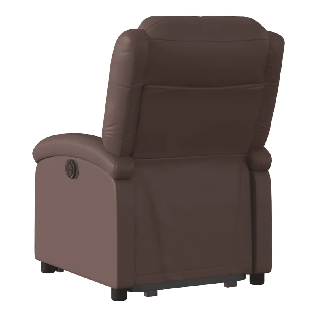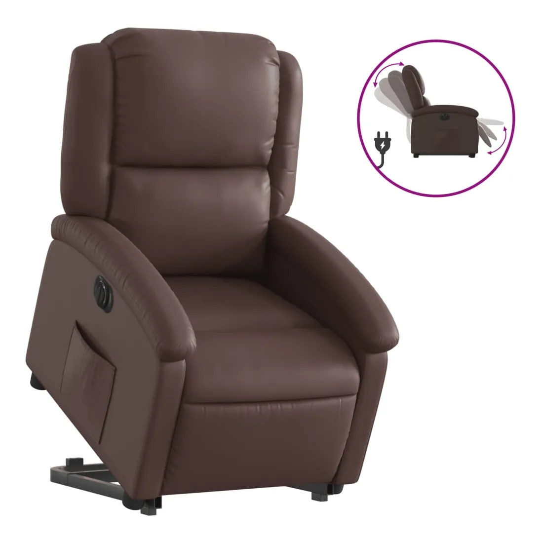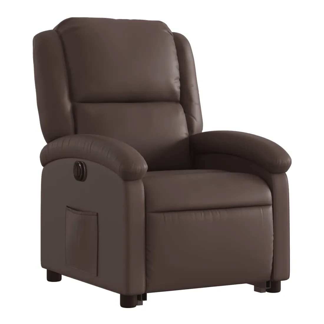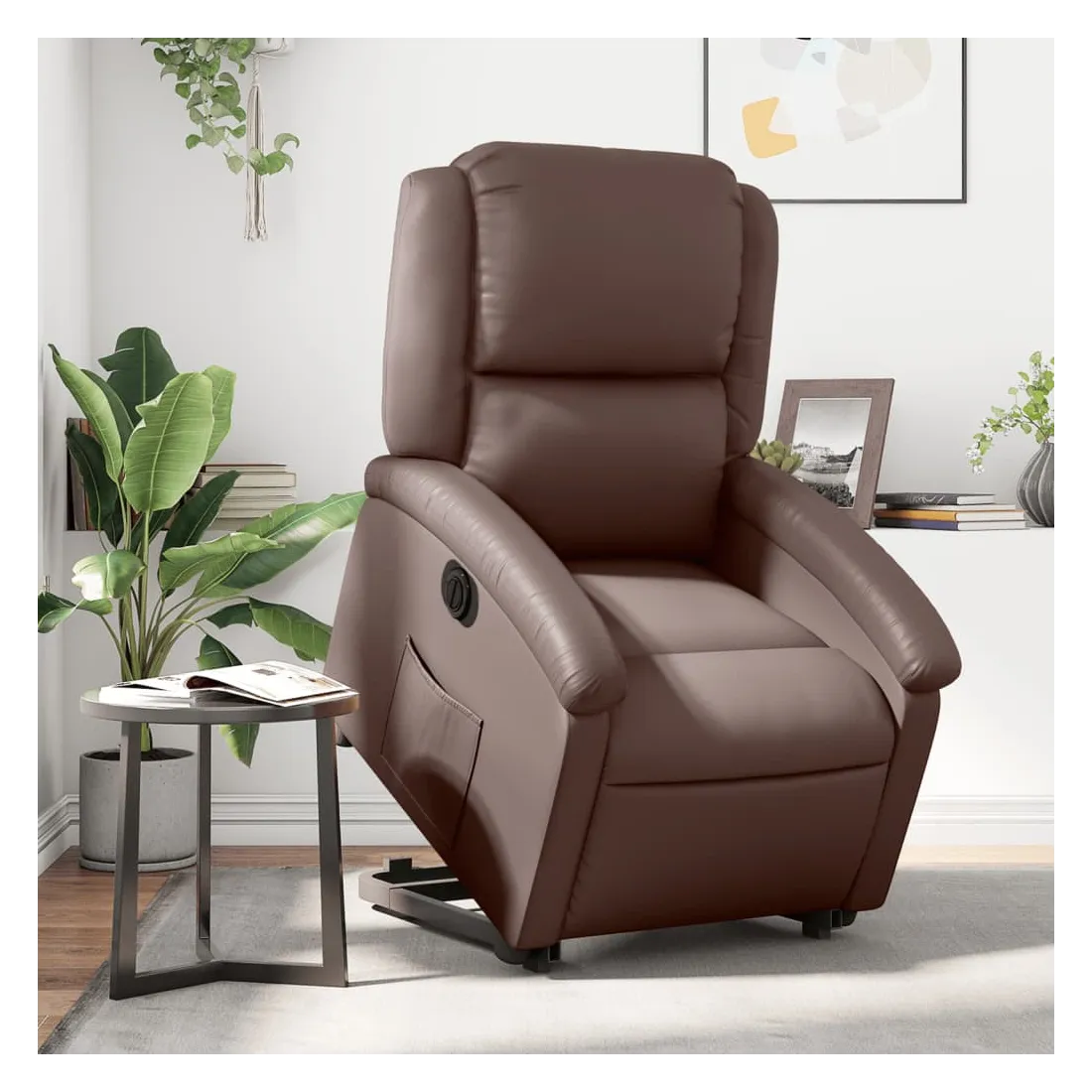 Asseyez-vous et détendez-vous dans ce fauteuil inclinable électrique très confortable ! Fonction de levage électrique : ce fauteuil inclinable pour personnes âgées est équipé d'un moteur électrique pour la fonction de levage. Grâce à la fonction qui pousse toute la chaise vers le haut, vous pouvez facilement vous tenir debout sans stresser votre dos et vos genoux en appuyant simplement sur le bouton.Fonction d'inclinaison électrique : ce fauteuil inclinable est également équipé d'un moteur électrique qui permet de régler automatiquement le repose-pied et le dossier dans n'importe quelle position, selon votre confort, en appuyant simplement sur le bouton situé sur le côté du fauteuil. Cette fonction permet une inclinaison maximale de 135 degrés. En outre, le dossier peut revenir automatiquement à sa position d'origine par une simple pression sur le bouton.Expérience de siège confortable : le siège, le dossier et les larges accoudoirs rembourrés épais recouverts de similicuir procurent une sensation confortable, vous faisant vous sentir enlacé lorsque vous êtes assis. Le similicuir est un matériau très résistant. Il est résistant aux taches, ce qui le rend facile à nettoyer avec un chiffon humide. La surface lisse donne également un aspect luxueux et la beauté du cuir véritable.Poche latérale pratique : ce fauteuil est doté d'une poche latérale pour vous permettre de garder vos objets essentiels à portée de main.Cadre solide et stable : le cadre en bois et en métal offre une structure solide et une grande stabilité. Ce fauteuil inclinable est confortable et durable.