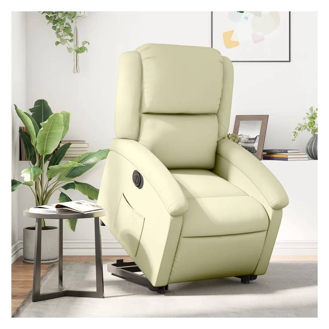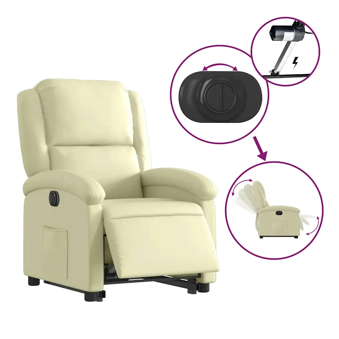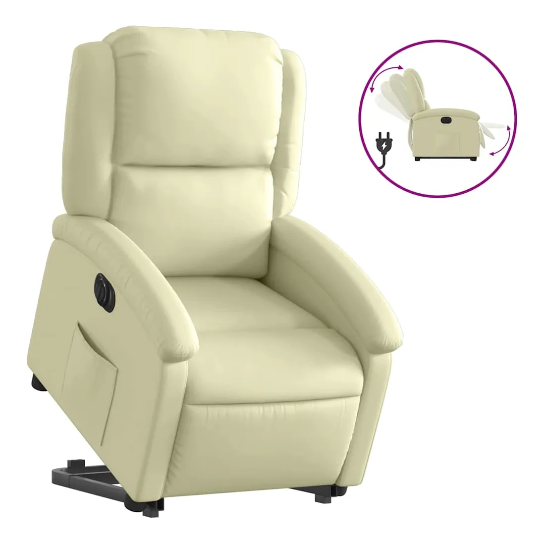 Asseyez-vous et détendez-vous dans ce fauteuil inclinable électrique très confortable ! Fonction de levage électrique : ce fauteuil inclinable pour personnes âgées est équipé d'un moteur électrique pour la fonction de levage. Grâce à la fonction qui pousse toute la chaise vers le haut, vous pouvez facilement vous tenir debout sans stresser votre dos et vos genoux en appuyant simplement sur le bouton.Fonction d'inclinaison électrique : ce fauteuil inclinable est également équipé d'un moteur électrique qui permet de régler automatiquement le repose-pied et le dossier dans n'importe quelle position, selon votre confort, en appuyant simplement sur le bouton situé sur le côté du fauteuil. Cette fonction permet une inclinaison maximale de 135 degrés. En outre, le dossier peut revenir automatiquement à sa position d'origine par une simple pression sur le bouton.Expérience de siège confortable : le siège, le dossier et les larges accoudoirs rembourrés épais recouverts de cuir véritable procurent une sensation confortable et chaleureuse, vous faisant vous sentir enlacé lorsque vous êtes assis. Le cuir véritable est un matériau naturellement intemporel. Il peut durer toute une vie avec des soins et un entretien appropriés. La surface lisse lui donne également un aspect élégant tout en garantissant un confort optimal.Poche latérale pratique : ce fauteuil est doté d'une poche latérale pour vous permettre de garder vos objets essentiels à portée de main.Cadre solide et stable : le cadre en bois et en métal offre une structure solide et une grande stabilité. Ce fauteuil inclinable est confortable et durable.