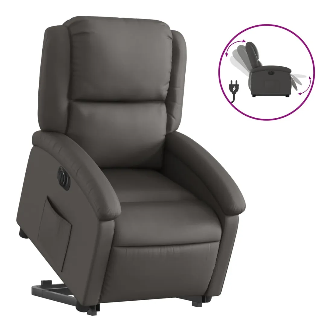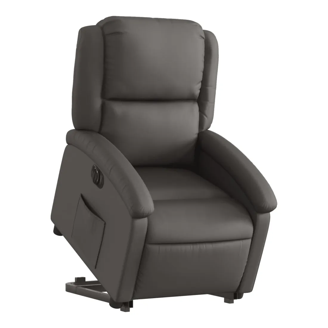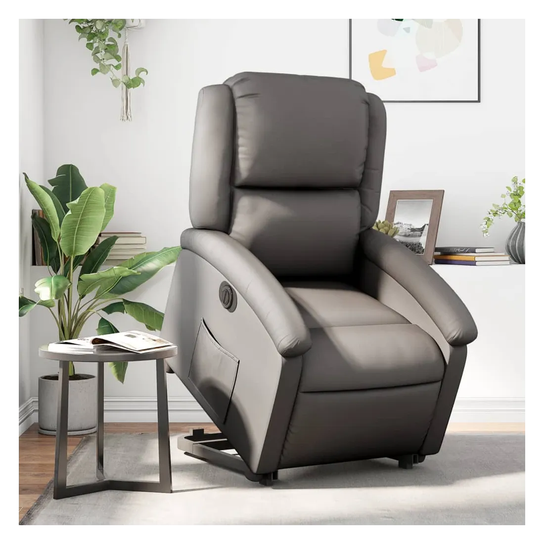 Asseyez-vous et détendez-vous dans ce fauteuil inclinable électrique très confortable ! Fonction de levage électrique : ce fauteuil inclinable pour personnes âgées est équipé d'un moteur électrique pour la fonction de levage. Grâce à la fonction qui pousse toute la chaise vers le haut, vous pouvez facilement vous tenir debout sans stresser votre dos et vos genoux en appuyant simplement sur le bouton.Fonction d'inclinaison électrique : ce fauteuil inclinable est également équipé d'un moteur électrique qui permet de régler automatiquement le repose-pied et le dossier dans n'importe quelle position, selon votre confort, en appuyant simplement sur le bouton situé sur le côté du fauteuil. Cette fonction permet une inclinaison maximale de 135 degrés. En outre, le dossier peut revenir automatiquement à sa position d'origine par une simple pression sur le bouton.Expérience de siège confortable : le siège, le dossier et les larges accoudoirs rembourrés épais recouverts de cuir véritable procurent une sensation confortable et chaleureuse, vous faisant vous sentir enlacé lorsque vous êtes assis. Le cuir véritable est un matériau naturellement intemporel. Il peut durer toute une vie avec des soins et un entretien appropriés. La surface lisse lui donne également un aspect élégant tout en garantissant un confort optimal.Poche latérale pratique : ce fauteuil est doté d'une poche latérale pour vous permettre de garder vos objets essentiels à portée de main.Cadre solide et stable : le cadre en bois et en métal offre une structure solide et une grande stabilité. Ce fauteuil inclinable est confortable et durable.