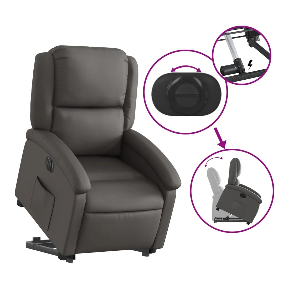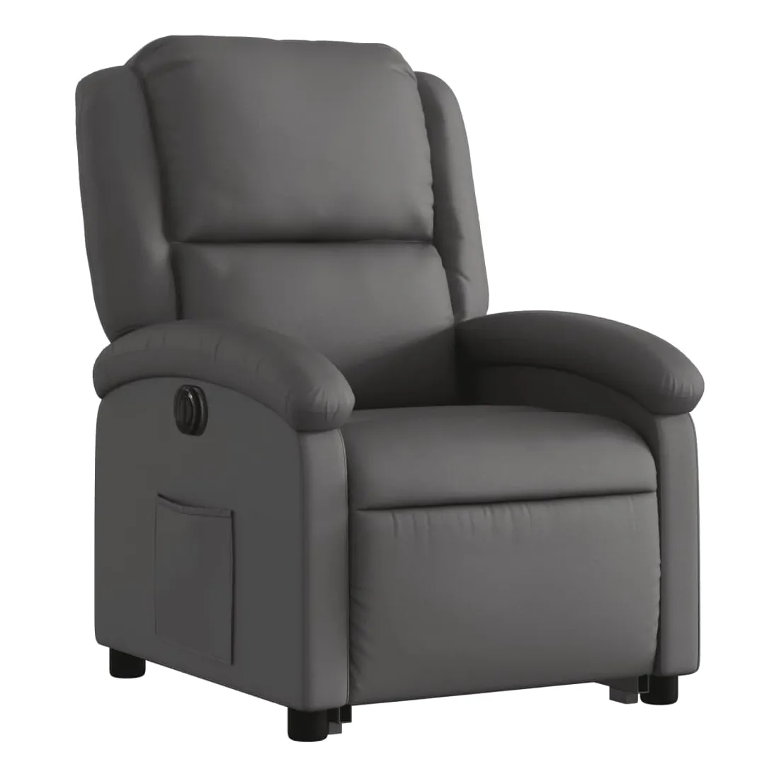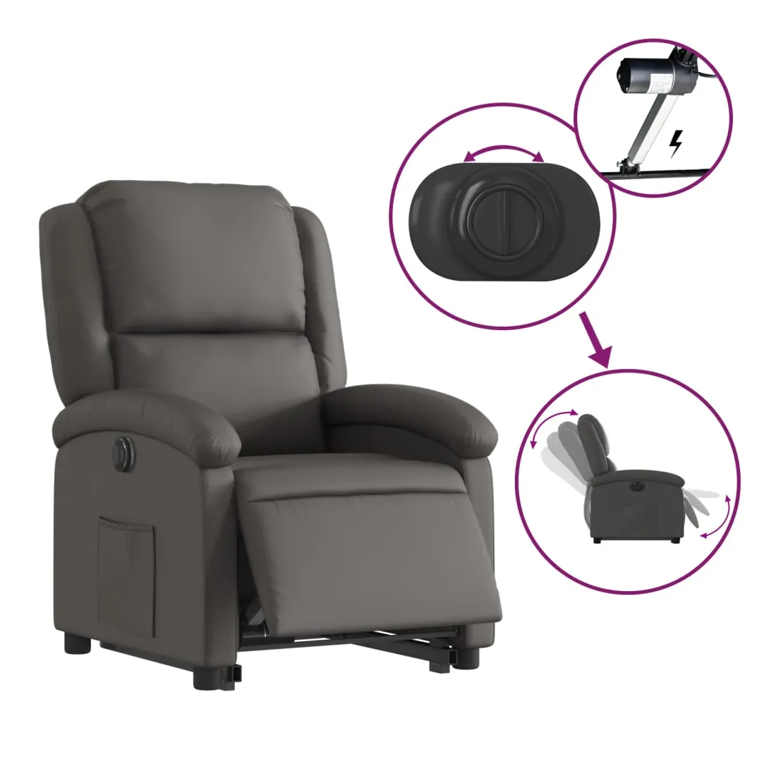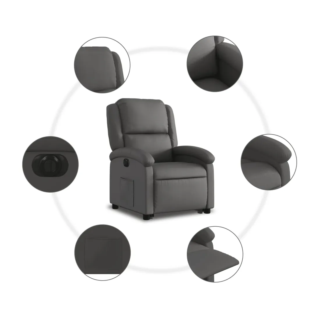 Asseyez-vous et détendez-vous dans ce fauteuil inclinable électrique très confortable ! Fonction de levage électrique : ce fauteuil inclinable pour personnes âgées est équipé d'un moteur électrique pour la fonction de levage. Grâce à la fonction qui pousse toute la chaise vers le haut, vous pouvez facilement vous tenir debout sans stresser votre dos et vos genoux en appuyant simplement sur le bouton.Fonction d'inclinaison électrique : ce fauteuil inclinable est également équipé d'un moteur électrique qui permet de régler automatiquement le repose-pied et le dossier dans n'importe quelle position, selon votre confort, en appuyant simplement sur le bouton situé sur le côté du fauteuil. Cette fonction permet une inclinaison maximale de 135 degrés. En outre, le dossier peut revenir automatiquement à sa position d'origine par une simple pression sur le bouton.Expérience de siège confortable : le siège, le dossier et les larges accoudoirs rembourrés épais recouverts de cuir véritable procurent une sensation confortable et chaleureuse, vous faisant vous sentir enlacé lorsque vous êtes assis. Le cuir véritable est un matériau naturellement intemporel. Il peut durer toute une vie avec des soins et un entretien appropriés. La surface lisse lui donne également un aspect élégant tout en garantissant un confort optimal.Poche latérale pratique : ce fauteuil est doté d'une poche latérale pour vous permettre de garder vos objets essentiels à portée de main.Cadre solide et stable : le cadre en bois et en métal offre une structure solide et une grande stabilité. Ce fauteuil inclinable est confortable et durable.