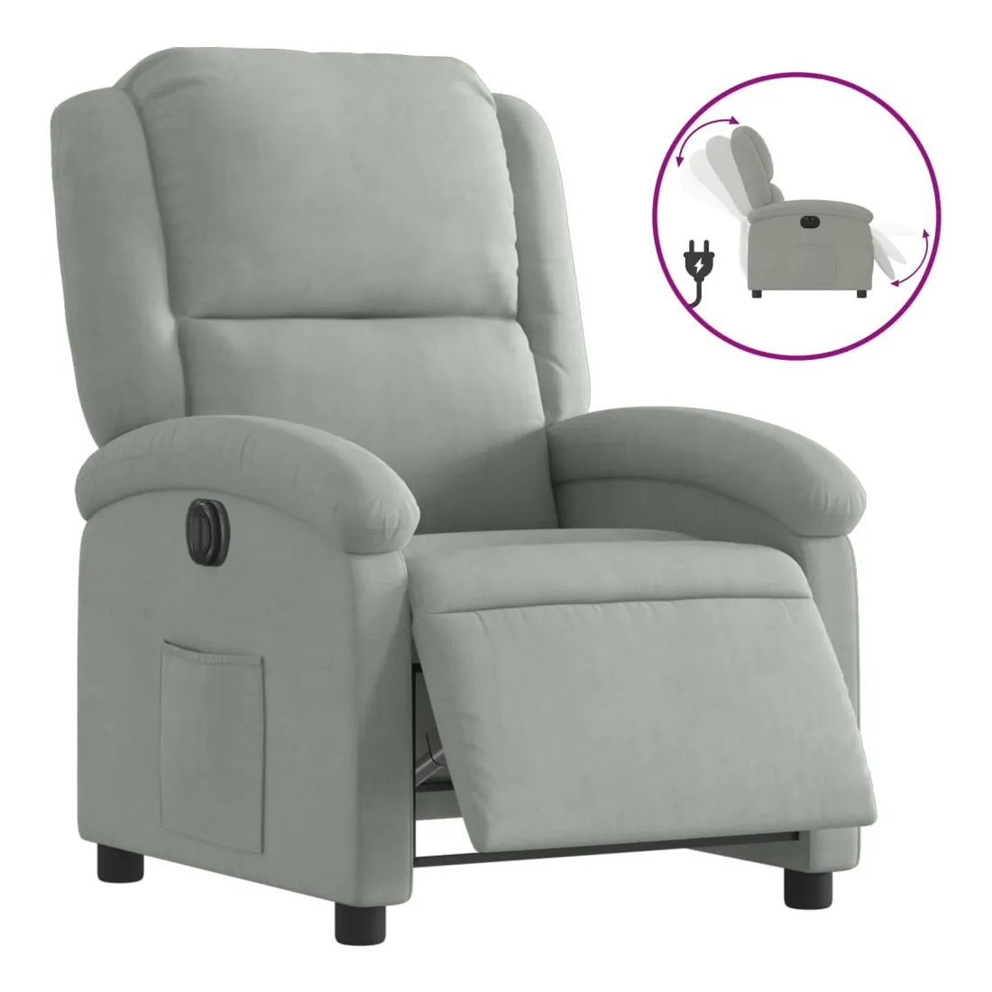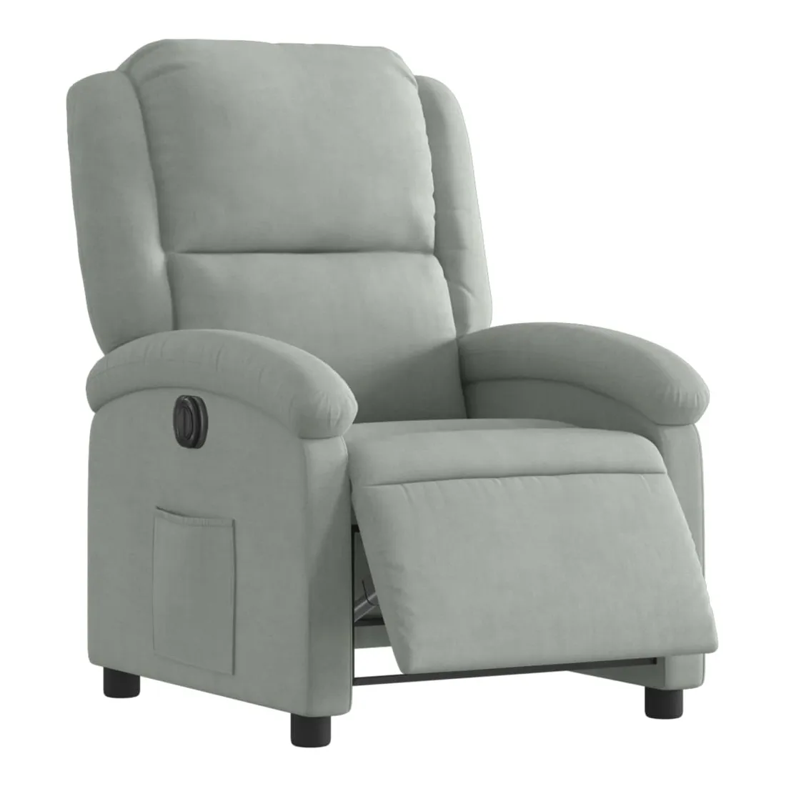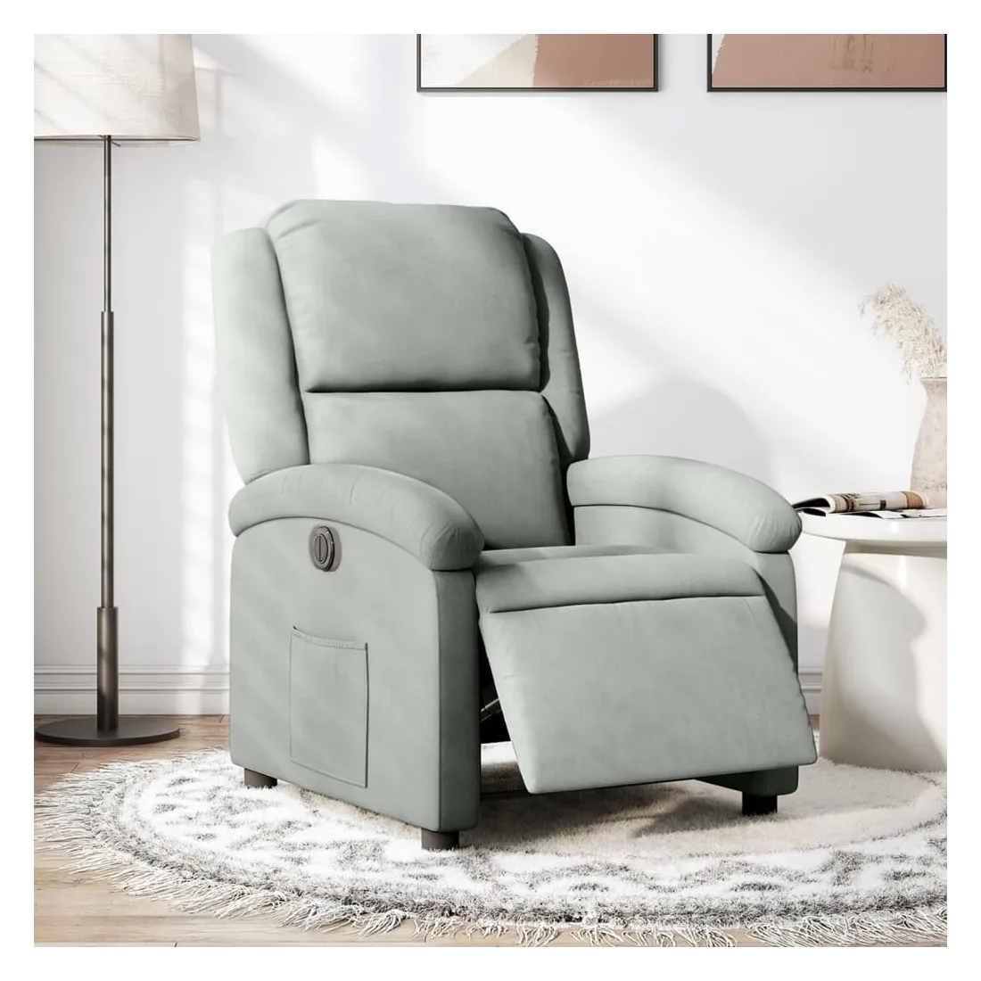Asseyez-vous et détendez-vous dans ce fauteuil inclinable électrique très confortable ! Fonction d'inclinaison électrique : ce fauteuil inclinable est équipé d'un moteur électrique qui permet de régler automatiquement le repose-pied et le dossier dans n'importe quelle position, selon votre confort, en appuyant simplement sur le bouton situé sur le côté du fauteuil. Cette fonction permet une inclinaison maximale de 135 degrés. En outre, le dossier peut revenir automatiquement à sa position d'origine par une simple pression sur le bouton.Expérience d'assise confortable : le siège, le dossier et les larges accoudoirs rembourrés épais recouverts de velours procurent une sensation confortable et chaleureuse, vous faisant vous sentir enlacé lorsque vous êtes assis. Le velours est un tissu doux et confortable qui est agréable sur la peau.Poche latérale pratique : ce fauteuil est doté d'une poche latérale pour vous permettre de garder vos objets essentiels à portée de main.Cadre solide et stable : le cadre en bois et en métal offre une structure solide et une grande stabilité. Ce fauteuil inclinable est confortable et durable.