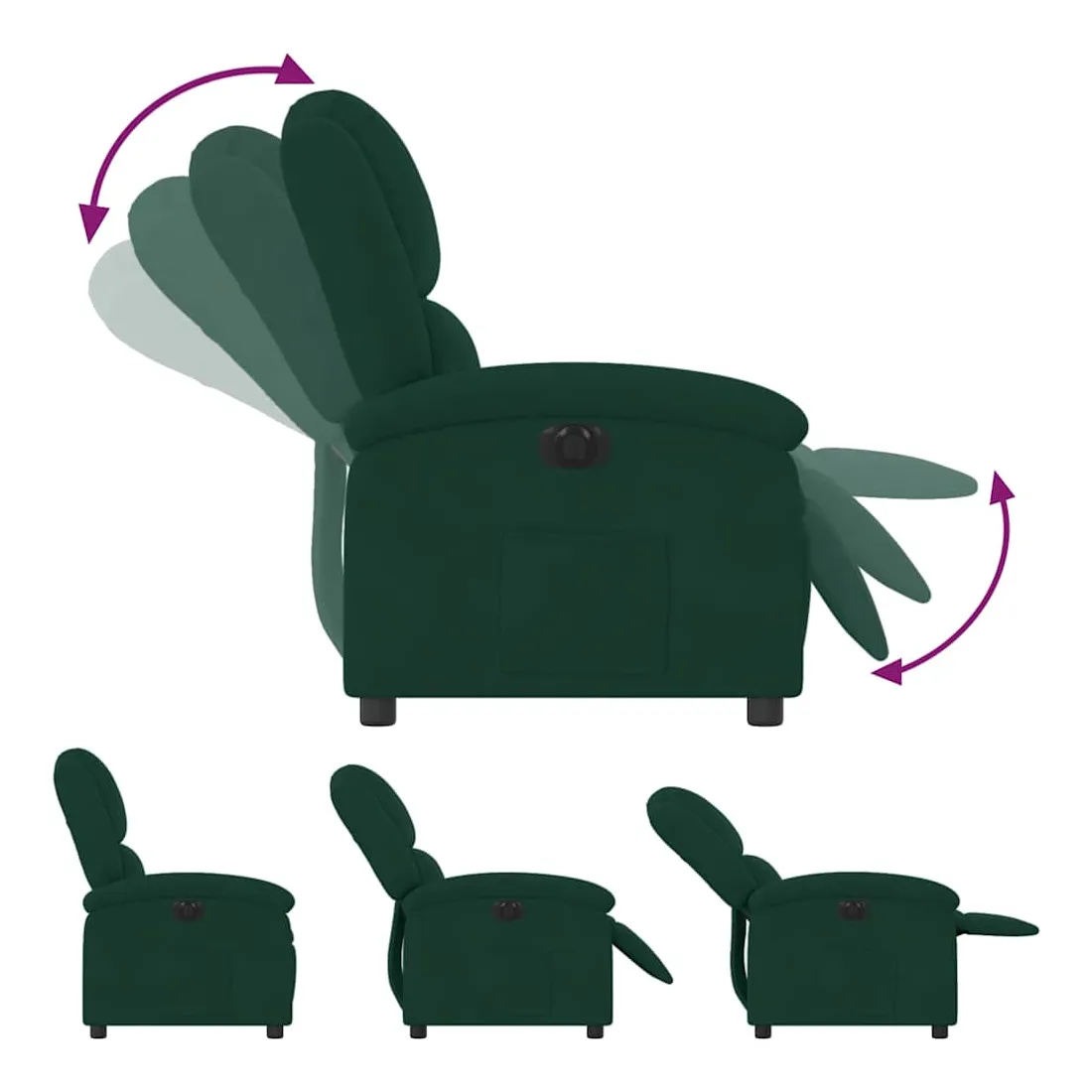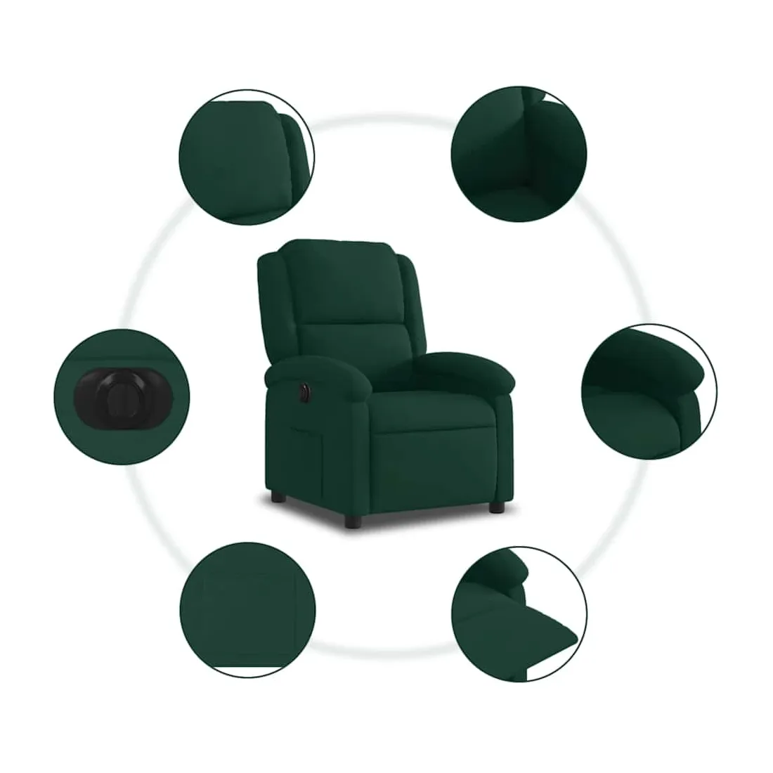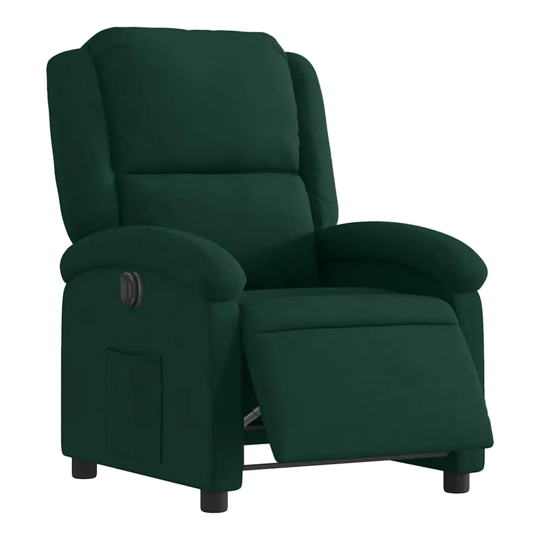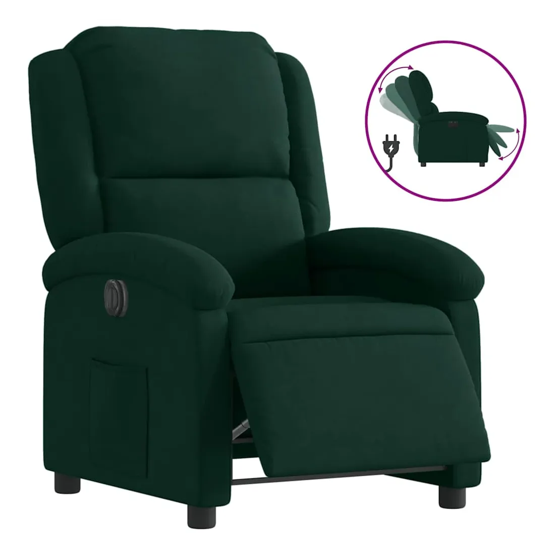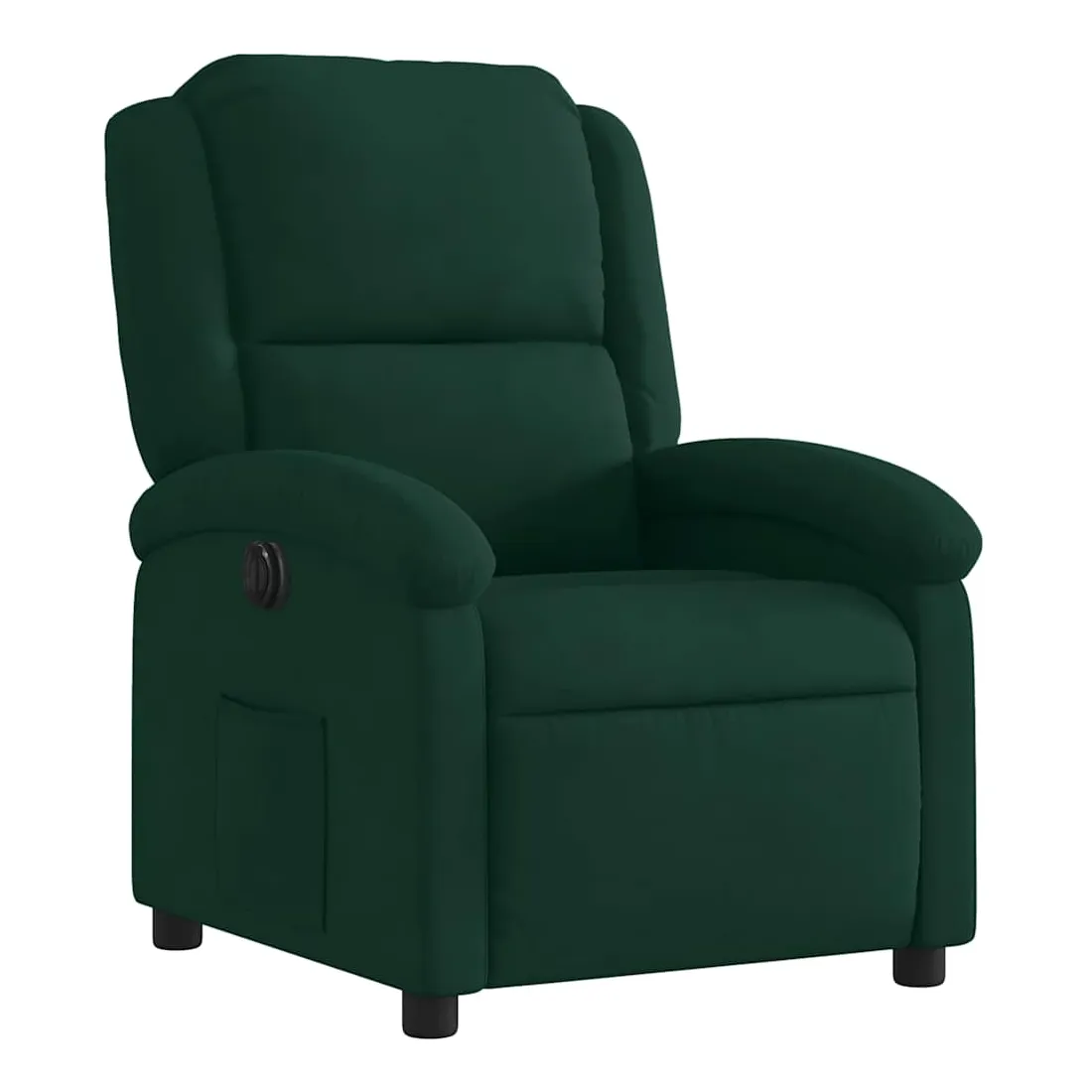 Asseyez-vous et détendez-vous dans ce fauteuil inclinable électrique très confortable ! Fonction d'inclinaison électrique : ce fauteuil inclinable est équipé d'un moteur électrique qui permet de régler automatiquement le repose-pied et le dossier dans n'importe quelle position, selon votre confort, en appuyant simplement sur le bouton situé sur le côté du fauteuil. Cette fonction permet une inclinaison maximale de 135 degrés. En outre, le dossier peut revenir automatiquement à sa position d'origine par une simple pression sur le bouton.Expérience d'assise confortable : le siège, le dossier et les larges accoudoirs rembourrés épais recouverts de velours procurent une sensation confortable et chaleureuse, vous faisant vous sentir enlacé lorsque vous êtes assis. Le velours est un tissu doux et confortable qui est agréable sur la peau.Poche latérale pratique : ce fauteuil est doté d'une poche latérale pour vous permettre de garder vos objets essentiels à portée de main.Cadre solide et stable : le cadre en bois et en métal offre une structure solide et une grande stabilité. Ce fauteuil inclinable est confortable et durable.