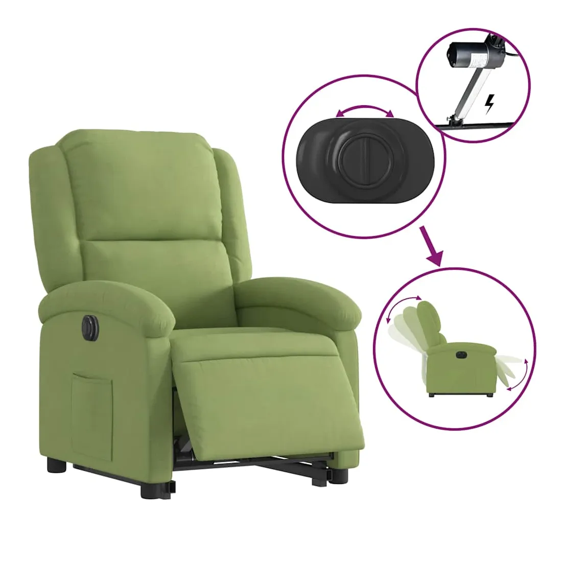 Fauteuil inclinable électrique vert clair velours