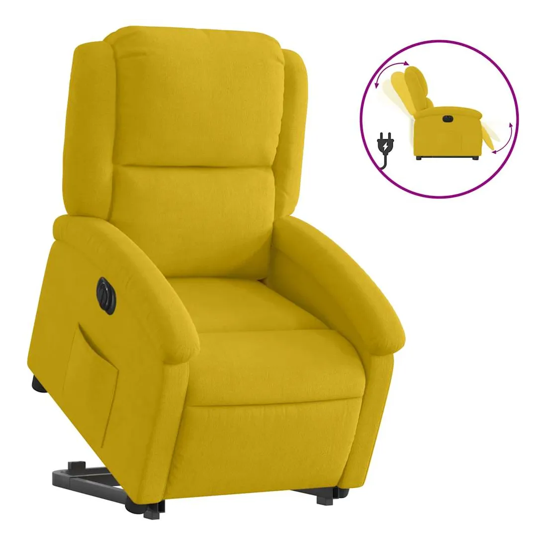 Asseyez-vous et détendez-vous dans ce fauteuil inclinable électrique très confortable ! Fonction de levage électrique : ce fauteuil inclinable pour personnes âgées est équipé d'un moteur électrique pour la fonction de levage. Grâce à la fonction qui pousse toute la chaise vers le haut, vous pouvez facilement vous tenir debout sans stresser votre dos et vos genoux en appuyant simplement sur le bouton.Fonction d'inclinaison électrique : ce fauteuil inclinable est également équipé d'un moteur électrique qui permet de régler automatiquement le repose-pied et le dossier dans n'importe quelle position, selon votre confort, en appuyant simplement sur le bouton situé sur le côté du fauteuil. Cette fonction permet une inclinaison maximale de 135 degrés. En outre, le dossier peut revenir automatiquement à sa position d'origine par une simple pression sur le bouton.Expérience d'assise confortable : le siège, le dossier et les larges accoudoirs rembourrés épais recouverts de velours procurent une sensation confortable et chaleureuse, vous faisant vous sentir enlacé lorsque vous êtes assis. Le velours est un tissu doux et confortable qui est agréable sur la peau.Poche latérale pratique : ce fauteuil est doté d'une poche latérale pour vous permettre de garder vos objets essentiels à portée de main.Cadre solide et stable : le cadre en bois et en métal offre une structure solide et une grande stabilité. Ce fauteuil inclinable est confortable et durable.