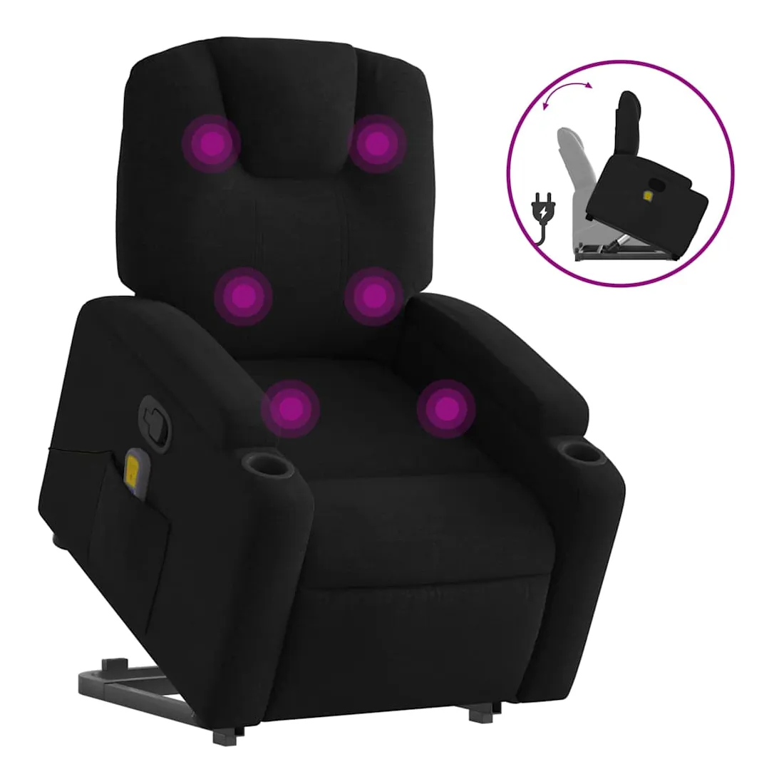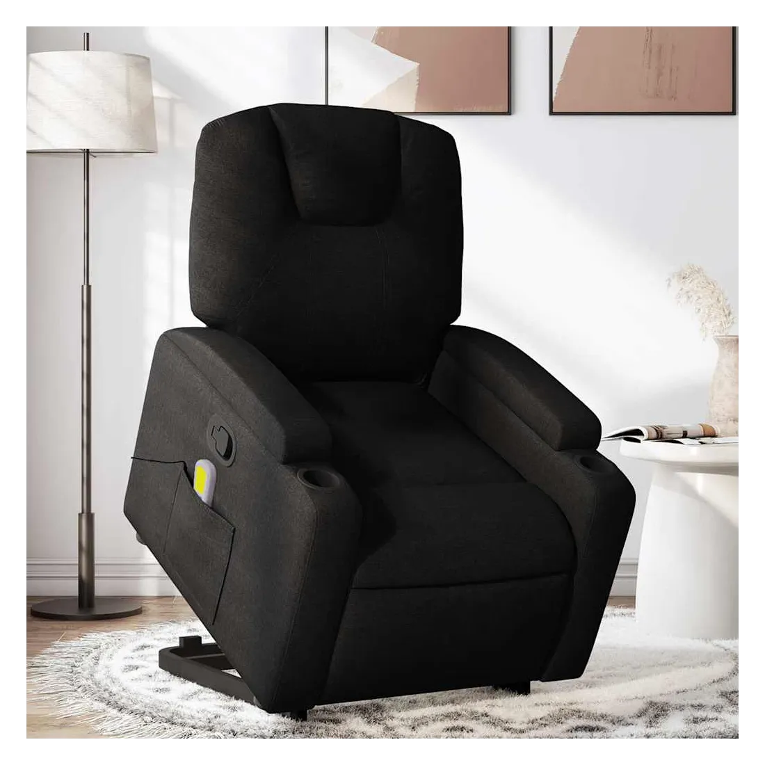 Asseyez-vous et détendez-vous dans ce fauteuil inclinable de massage très confortable ! Fonction de levage électrique : ce fauteuil inclinable pour personnes âgées est équipé d'un moteur électrique pour la fonction de levage. Grâce à la fonction qui pousse toute la chaise vers le haut, vous pouvez facilement vous tenir debout sans stresser votre dos et vos genoux en appuyant simplement sur le bouton.Fonction d'inclinaison manuelle : ce fauteuil inclinable est doté d'une poignée du côté droit. Vous pouvez régler manuellement le repose-pieds et le dossier dans n'importe quelle position selon votre confort en tirant simplement sur la poignée. Cette fonction permet une inclinaison maximale de 135 degrés. De plus, le dossier peut revenir rapidement à sa position d'origine en tirant simplement sur la poignée.Fonction de vibration : les 6 points de massage vous permettent de faire l'expérience d'un massage mieux ciblé. De plus, la télécommande incluse vous permet de choisir différents programmes de massage. La fonction de massage est alimentée par le connecteur USB qui nécessite une source d'alimentation USB certifiée de 5 V (non fournie).Expérience d'assise confortable : le siège, le dossier et les larges accoudoirs bien rembourrés recouverts de tissu procurent une sensation confortable et chaleureuse, vous permettant de vous sentir enveloppé lorsque vous êtes assis. Le tissu présente un aspect simple et épuré et est respirant et durable.Porte-gobelets et poche latérale pratiques : ce fauteuil dispose de deux porte-gobelets pratiques pour vos boissons et d'une poche latérale pour votre télécommande ou pour garder vos objets essentiels à portée de main.Cadre solide et stable : le cadre en bois et en métal offre une structure solide et une grande stabilité. Ce fauteuil inclinable est confortable et durable.