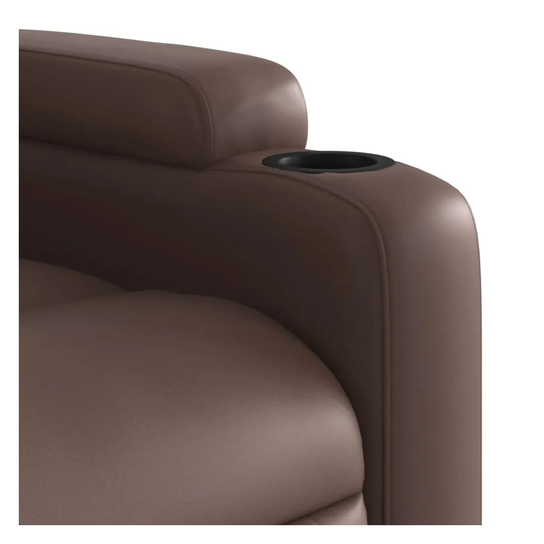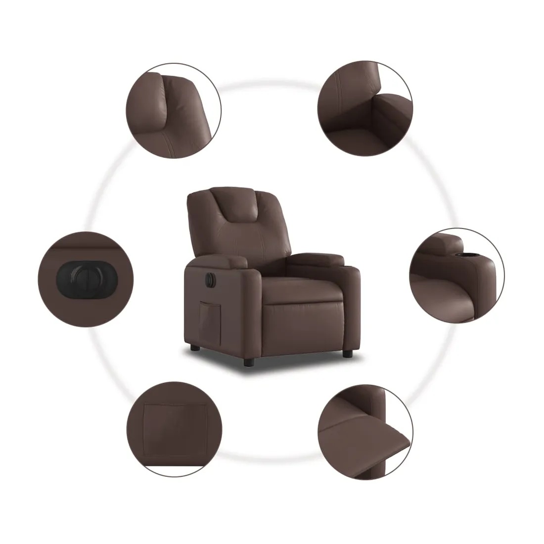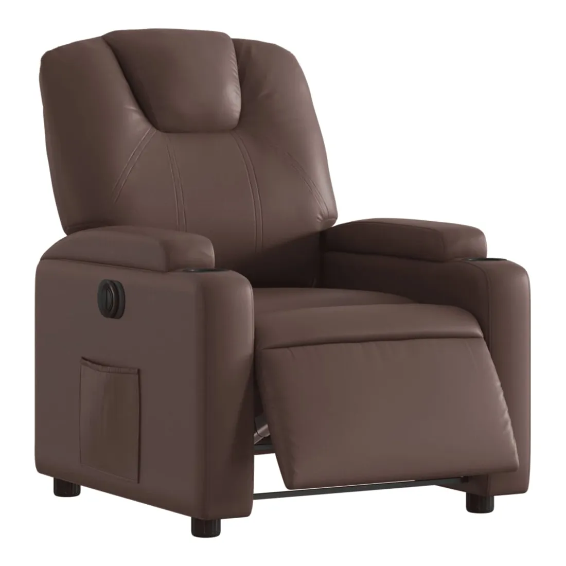 Asseyez-vous et détendez-vous dans ce fauteuil inclinable électrique très confortable ! Fonction d'inclinaison électrique : ce fauteuil inclinable est équipé d'un moteur électrique qui permet de régler automatiquement le repose-pied et le dossier dans n'importe quelle position, selon votre confort, en appuyant simplement sur le bouton situé sur le côté du fauteuil. Cette fonction permet une inclinaison maximale de 135 degrés. En outre, le dossier peut revenir automatiquement à sa position d'origine par une simple pression sur le bouton.Expérience de siège confortable : le siège, le dossier et les larges accoudoirs rembourrés épais recouverts de similicuir procurent une sensation confortable, vous faisant vous sentir enlacé lorsque vous êtes assis. Le similicuir est un matériau très résistant. Il est résistant aux taches, ce qui le rend facile à nettoyer avec un chiffon humide. La surface lisse donne également un aspect luxueux et la beauté du cuir véritable.Porte-gobelets et poche latérale pratiques : ce fauteuil dispose de deux porte-gobelets pratiques pour vos boissons et d'une poche latérale pour garder vos objets essentiels à portée de main.Cadre solide et stable : le cadre en bois et en métal offre une structure solide et une grande stabilité. Ce fauteuil inclinable est confortable et durable.