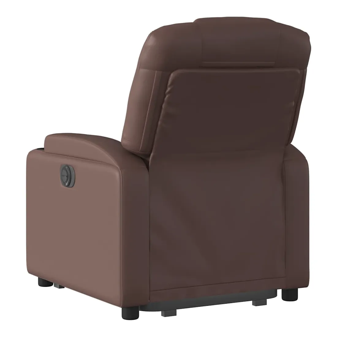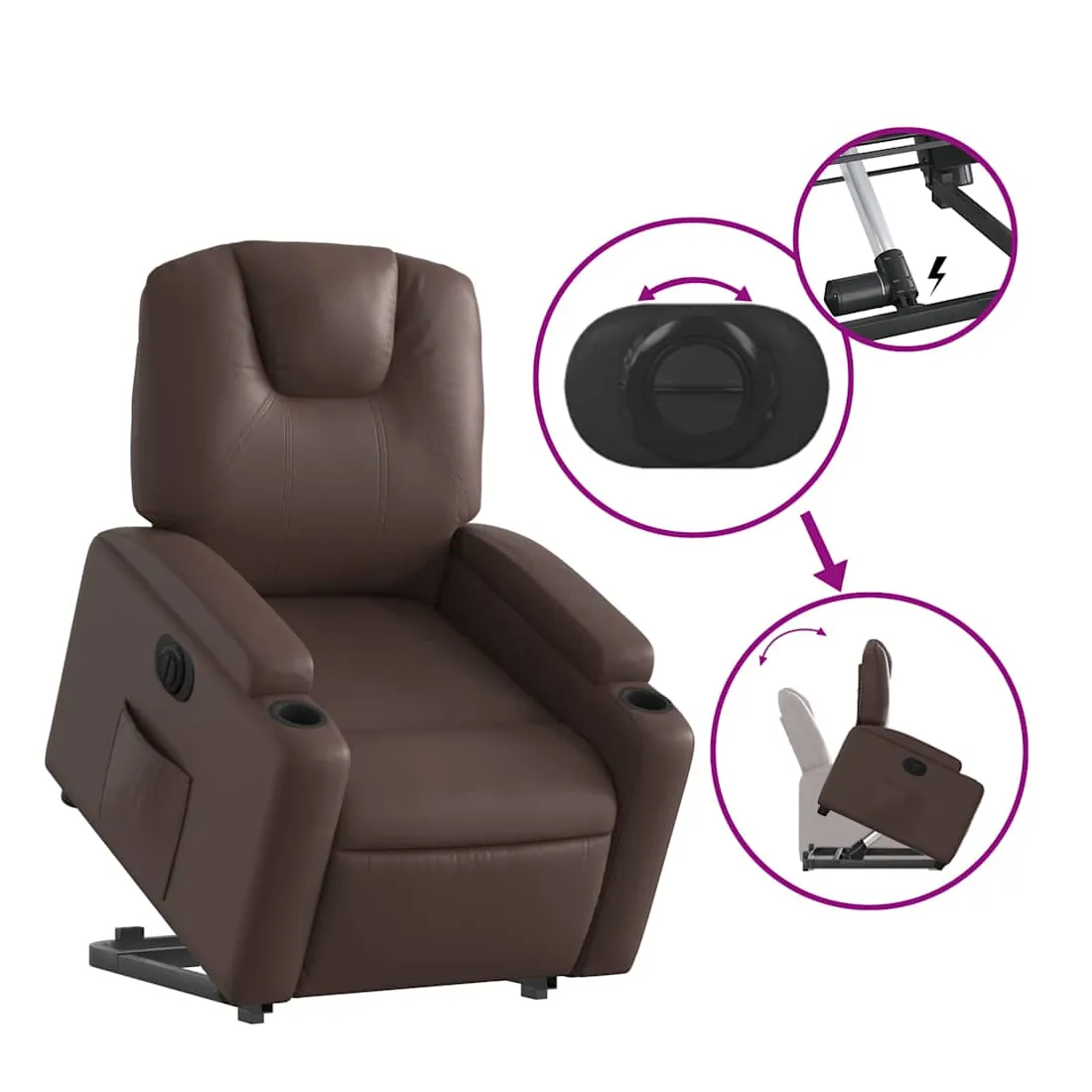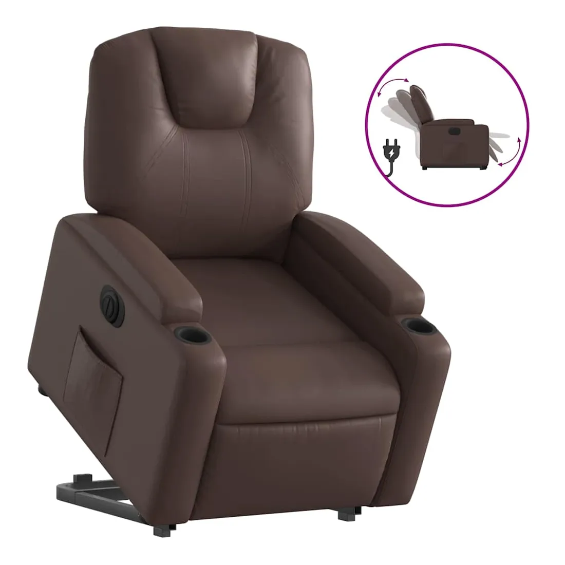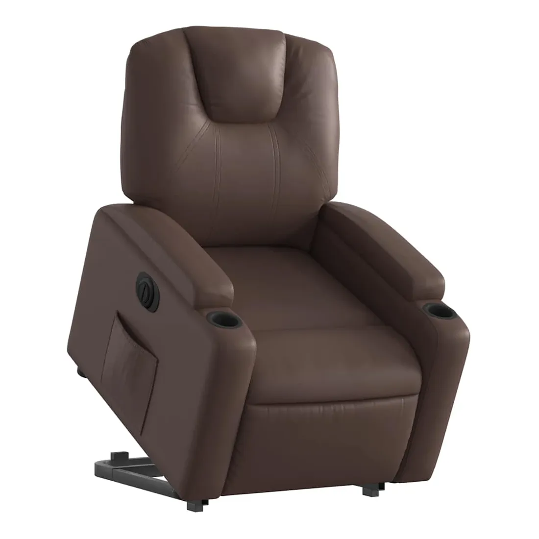 Asseyez-vous et détendez-vous dans ce fauteuil inclinable électrique très confortable ! Fonction de levage électrique : ce fauteuil inclinable pour personnes âgées est équipé d'un moteur électrique pour la fonction de levage. Grâce à la fonction qui pousse toute la chaise vers le haut, vous pouvez facilement vous tenir debout sans stresser votre dos et vos genoux en appuyant simplement sur le bouton.Fonction d'inclinaison électrique : ce fauteuil inclinable est également équipé d'un moteur électrique qui permet de régler automatiquement le repose-pied et le dossier dans n'importe quelle position, selon votre confort, en appuyant simplement sur le bouton situé sur le côté du fauteuil. Cette fonction permet une inclinaison maximale de 135 degrés. En outre, le dossier peut revenir automatiquement à sa position d'origine par une simple pression sur le bouton.Expérience de siège confortable : le siège, le dossier et les larges accoudoirs rembourrés épais recouverts de similicuir procurent une sensation confortable, vous faisant vous sentir enlacé lorsque vous êtes assis. Le similicuir est un matériau très résistant. Il est résistant aux taches, ce qui le rend facile à nettoyer avec un chiffon humide. La surface lisse donne également un aspect luxueux et la beauté du cuir véritable.Porte-gobelets et poche latérale pratiques : ce fauteuil dispose de deux porte-gobelets pratiques pour vos boissons et d'une poche latérale pour garder vos objets essentiels à portée de main.Cadre solide et stable : le cadre en bois et en métal offre une structure solide et une grande stabilité. Ce fauteuil inclinable est confortable et durable.