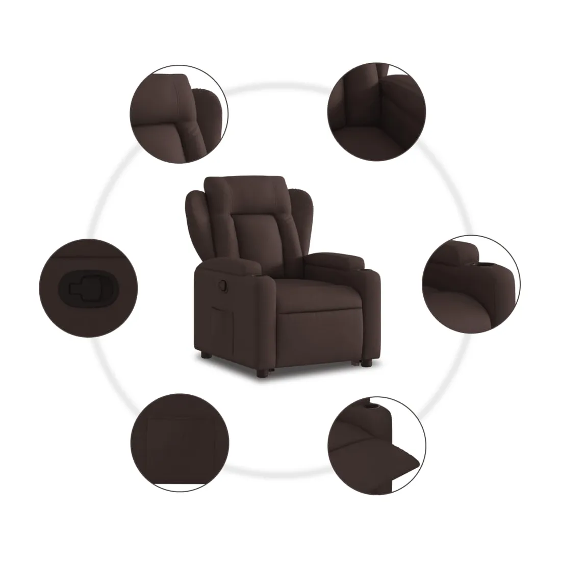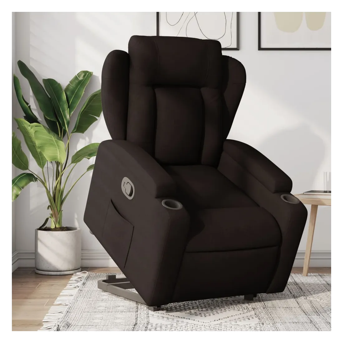 Asseyez-vous et détendez-vous dans ce fauteuil inclinable très confortable ! Fonction de levage électrique : ce fauteuil inclinable pour personnes âgées est équipé d'un moteur électrique pour la fonction de levage. Grâce à la fonction qui pousse toute la chaise vers le haut, vous pouvez facilement vous tenir debout sans stresser votre dos et vos genoux en appuyant simplement sur le bouton.Fonction d'inclinaison manuelle : ce fauteuil inclinable est doté d'une poignée du côté droit. Vous pouvez régler manuellement le repose-pieds et le dossier dans n'importe quelle position selon votre confort en tirant simplement sur la poignée. Cette fonction permet une inclinaison maximale de 135 degrés. De plus, le dossier peut revenir rapidement à sa position d'origine en tirant simplement sur la poignée.Expérience d'assise confortable : le siège, le dossier et les larges accoudoirs bien rembourrés recouverts de tissu procurent une sensation confortable et chaleureuse, vous permettant de vous sentir enveloppé lorsque vous êtes assis. Le tissu présente un aspect simple et épuré et est respirant et durable.Porte-gobelets et poche latérale pratiques : ce fauteuil dispose de deux porte-gobelets pratiques pour vos boissons et d'une poche latérale pour garder vos objets essentiels à portée de main.Cadre solide et stable : le cadre en bois et en métal offre une structure solide et une grande stabilité. Ce fauteuil inclinable est confortable et durable.