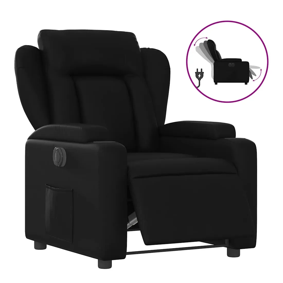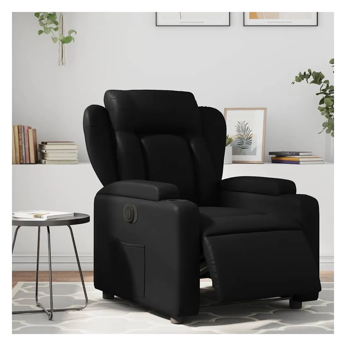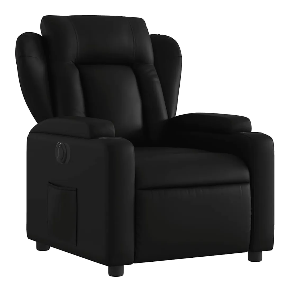 Asseyez-vous et détendez-vous dans ce fauteuil inclinable électrique très confortable ! Fonction d'inclinaison électrique : ce fauteuil inclinable est équipé d'un moteur électrique qui permet de régler automatiquement le repose-pied et le dossier dans n'importe quelle position, selon votre confort, en appuyant simplement sur le bouton situé sur le côté du fauteuil. Cette fonction permet une inclinaison maximale de 135 degrés. En outre, le dossier peut revenir automatiquement à sa position d'origine par une simple pression sur le bouton.Expérience de siège confortable : le siège, le dossier et les larges accoudoirs rembourrés épais recouverts de similicuir procurent une sensation confortable, vous faisant vous sentir enlacé lorsque vous êtes assis. Le similicuir est un matériau très résistant. Il est résistant aux taches, ce qui le rend facile à nettoyer avec un chiffon humide. La surface lisse donne également un aspect luxueux et la beauté du cuir véritable.Porte-gobelets et poche latérale pratiques : ce fauteuil dispose de deux porte-gobelets pratiques pour vos boissons et d'une poche latérale pour garder vos objets essentiels à portée de main.Cadre solide et stable : le cadre en bois et en métal offre une structure solide et une grande stabilité. Ce fauteuil inclinable est confortable et durable.