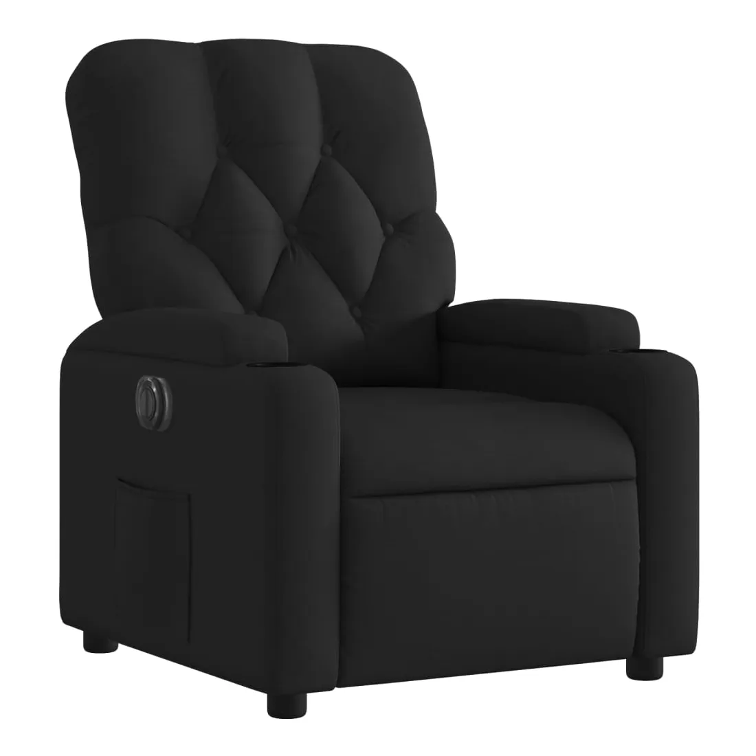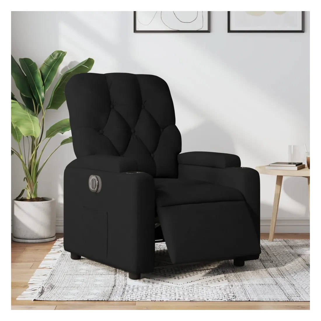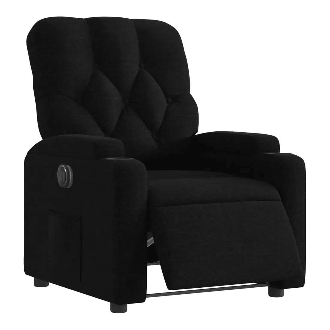 Asseyez-vous et détendez-vous dans ce fauteuil inclinable électrique très confortable ! Fonction d'inclinaison électrique : ce fauteuil inclinable est équipé d'un moteur électrique qui permet de régler automatiquement le repose-pied et le dossier dans n'importe quelle position, selon votre confort, en appuyant simplement sur le bouton situé sur le côté du fauteuil. Cette fonction permet une inclinaison maximale de 135 degrés. En outre, le dossier peut revenir automatiquement à sa position d'origine par une simple pression sur le bouton.Expérience d'assise confortable : le siège, le dossier et les larges accoudoirs bien rembourrés recouverts de tissu procurent une sensation confortable et chaleureuse, vous permettant de vous sentir enveloppé lorsque vous êtes assis. Le tissu présente un aspect simple et épuré et est respirant et durable.Porte-gobelets et poche latérale pratiques : ce fauteuil dispose de deux porte-gobelets pratiques pour vos boissons et d'une poche latérale pour garder vos objets essentiels à portée de main.Cadre solide et stable : le cadre en bois et en métal offre une structure solide et une grande stabilité. Ce fauteuil inclinable est confortable et durable.