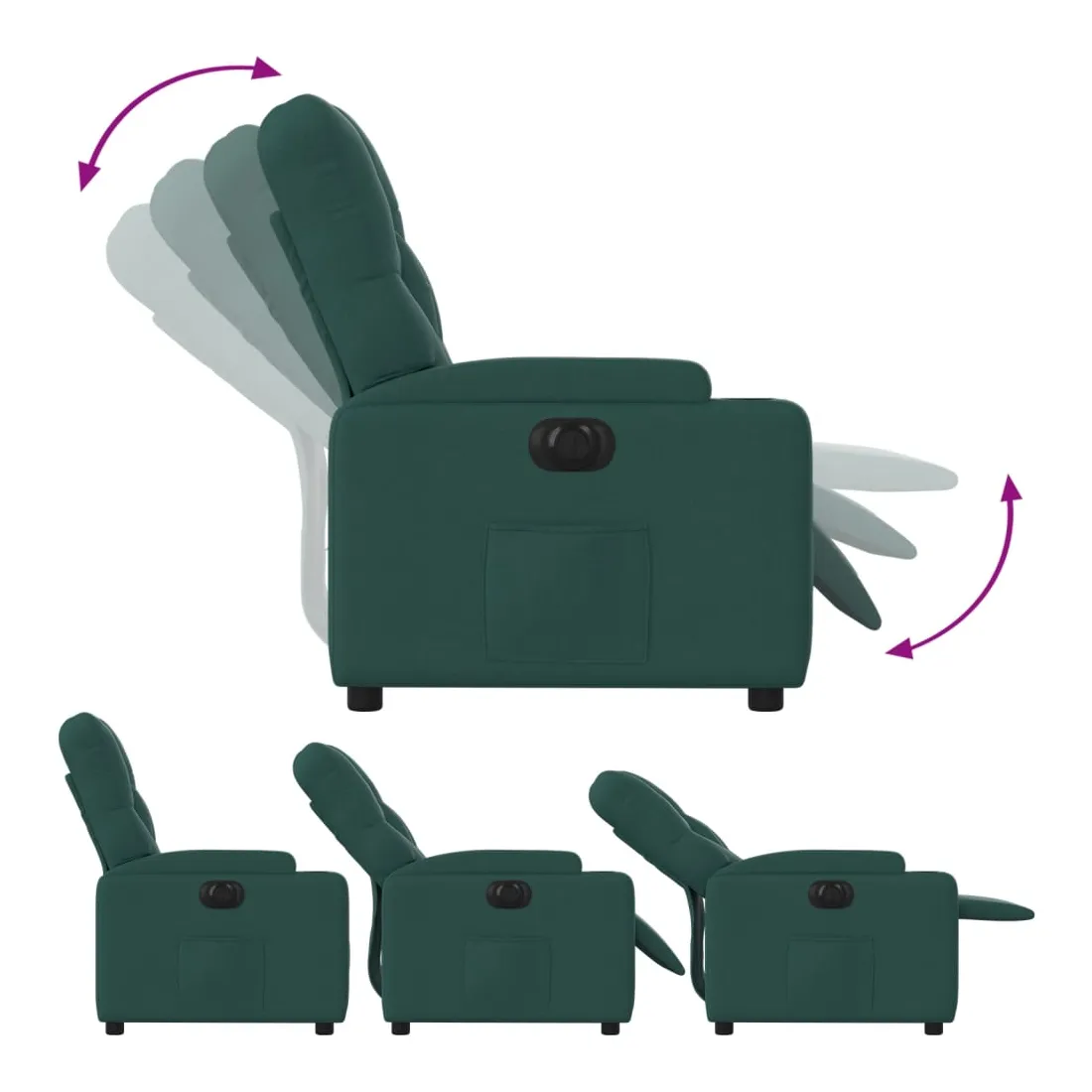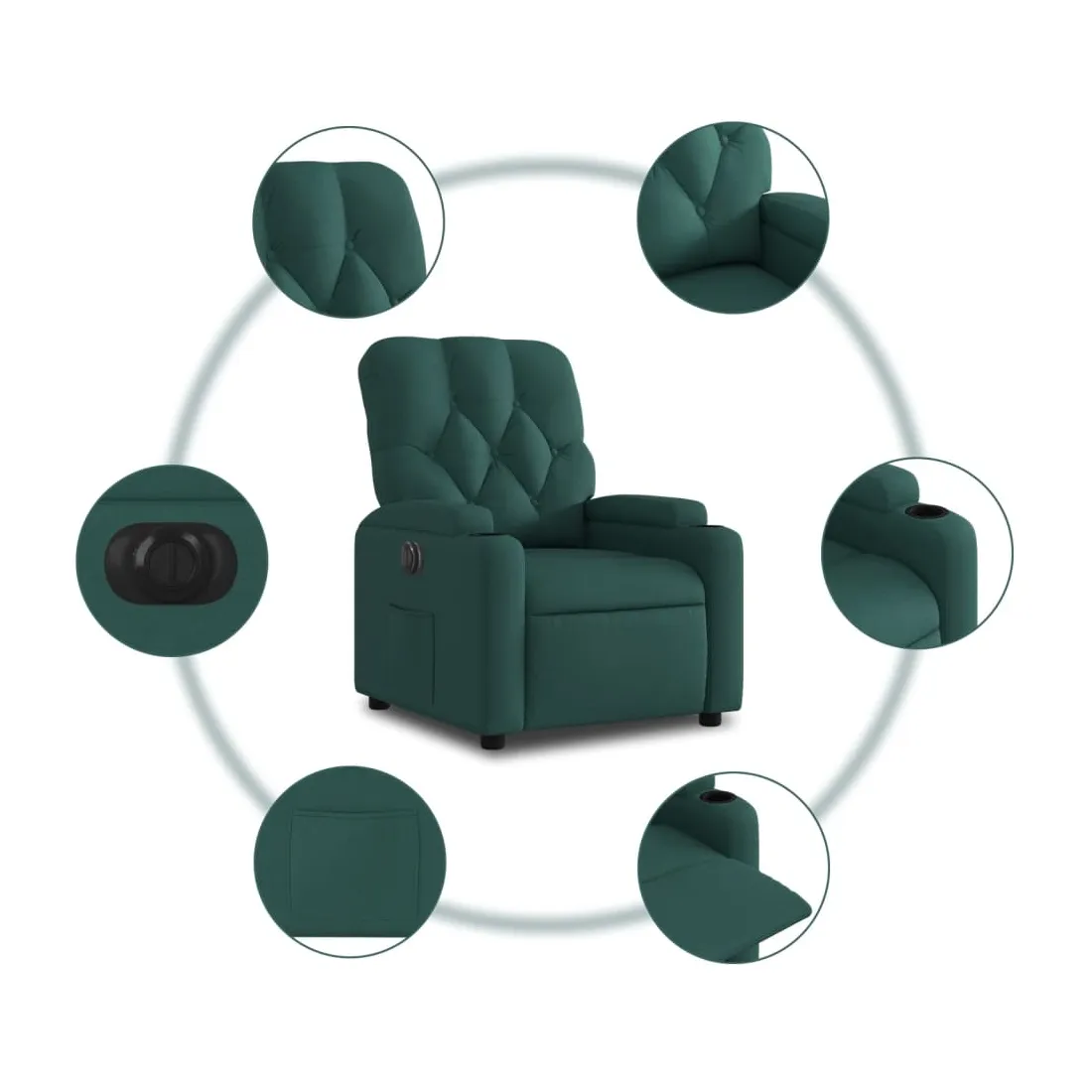 Asseyez-vous et détendez-vous dans ce fauteuil inclinable électrique très confortable ! Fonction d'inclinaison électrique : ce fauteuil inclinable est équipé d'un moteur électrique qui permet de régler automatiquement le repose-pied et le dossier dans n'importe quelle position, selon votre confort, en appuyant simplement sur le bouton situé sur le côté du fauteuil. Cette fonction permet une inclinaison maximale de 135 degrés. En outre, le dossier peut revenir automatiquement à sa position d'origine par une simple pression sur le bouton.Expérience d'assise confortable : le siège, le dossier et les larges accoudoirs bien rembourrés recouverts de tissu procurent une sensation confortable et chaleureuse, vous permettant de vous sentir enveloppé lorsque vous êtes assis. Le tissu présente un aspect simple et épuré et est respirant et durable.Porte-gobelets et poche latérale pratiques : ce fauteuil dispose de deux porte-gobelets pratiques pour vos boissons et d'une poche latérale pour garder vos objets essentiels à portée de main.Cadre solide et stable : le cadre en bois et en métal offre une structure solide et une grande stabilité. Ce fauteuil inclinable est confortable et durable.