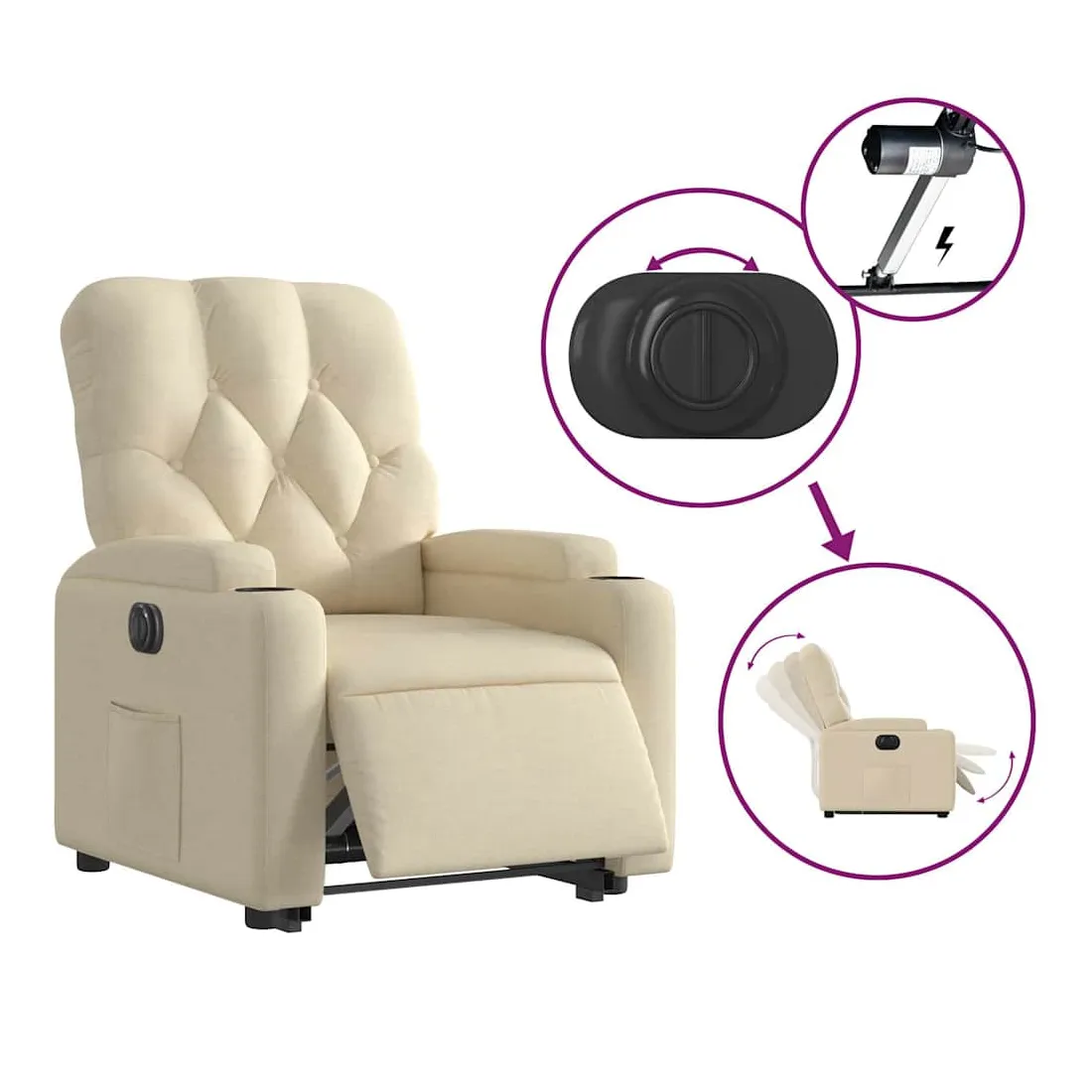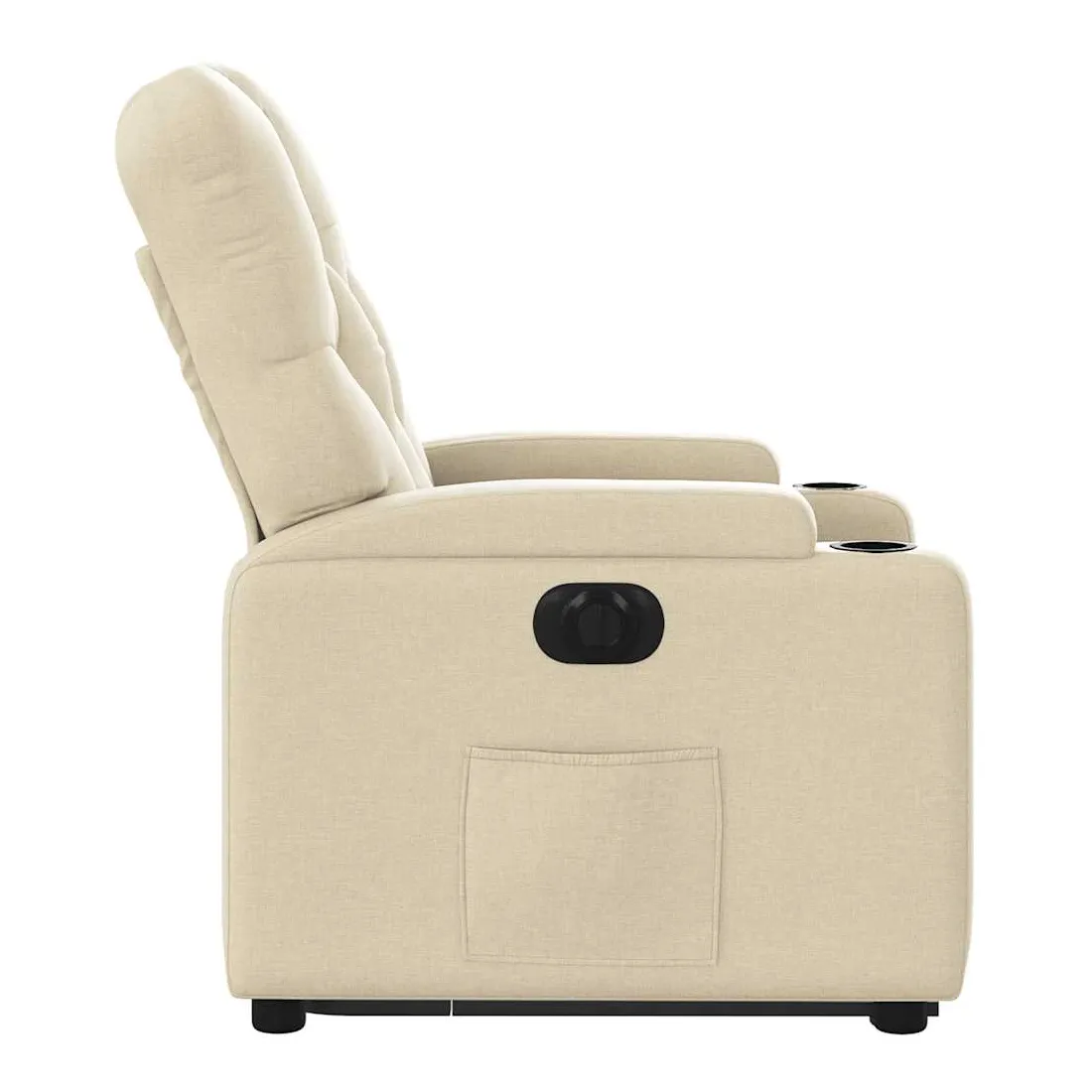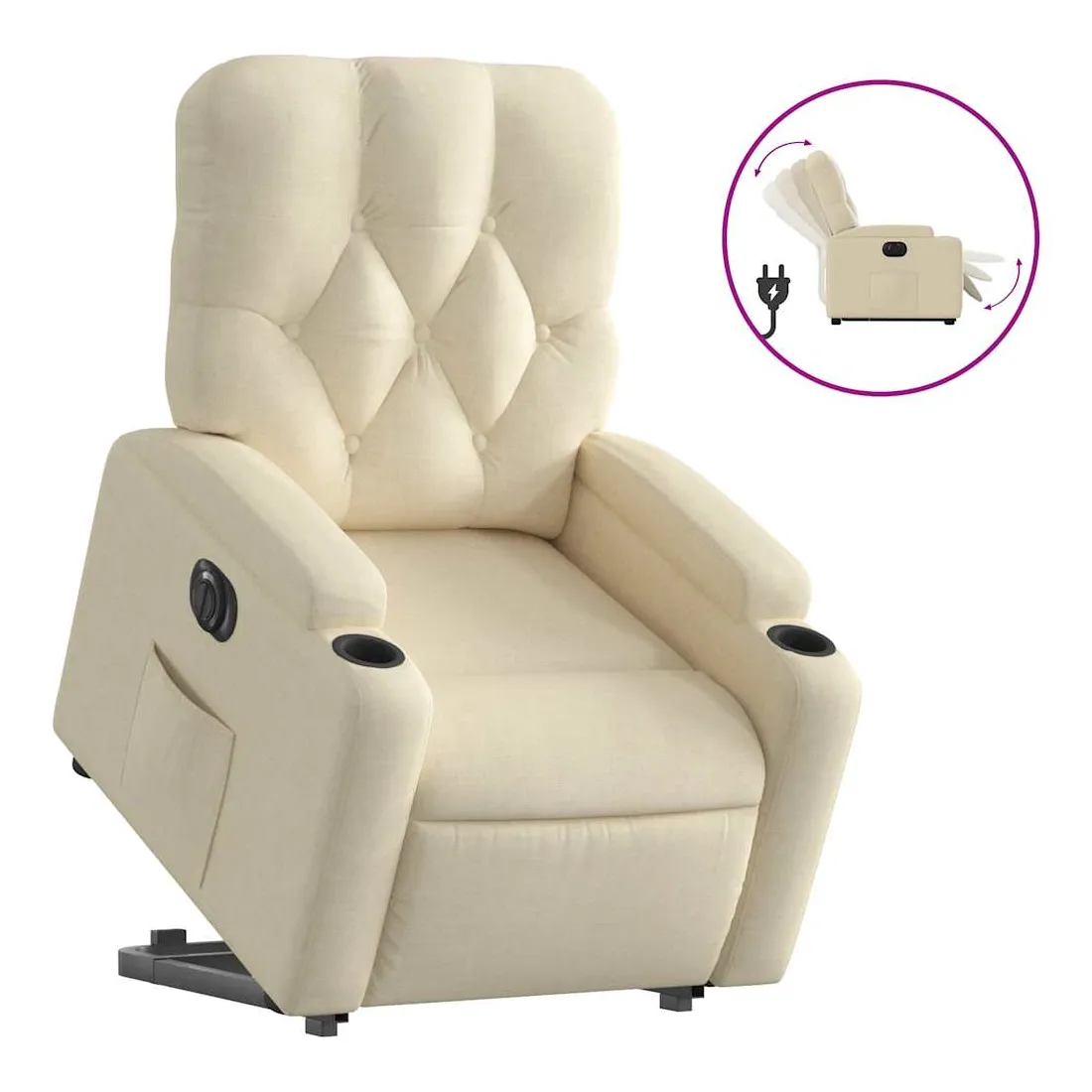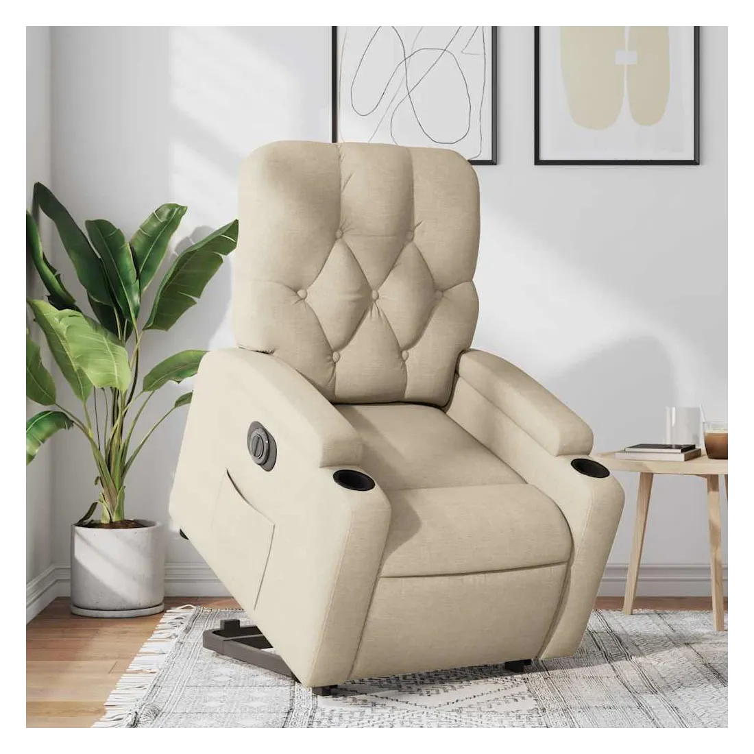 Asseyez-vous et détendez-vous dans ce fauteuil inclinable électrique très confortable ! Fonction de levage électrique : ce fauteuil inclinable pour personnes âgées est équipé d'un moteur électrique pour la fonction de levage. Grâce à la fonction qui pousse toute la chaise vers le haut, vous pouvez facilement vous tenir debout sans stresser votre dos et vos genoux en appuyant simplement sur le bouton.Fonction d'inclinaison électrique : ce fauteuil inclinable est également équipé d'un moteur électrique qui permet de régler automatiquement le repose-pied et le dossier dans n'importe quelle position, selon votre confort, en appuyant simplement sur le bouton situé sur le côté du fauteuil. Cette fonction permet une inclinaison maximale de 135 degrés. En outre, le dossier peut revenir automatiquement à sa position d'origine par une simple pression sur le bouton.Expérience d'assise confortable : le siège, le dossier et les larges accoudoirs bien rembourrés recouverts de tissu procurent une sensation confortable et chaleureuse, vous permettant de vous sentir enveloppé lorsque vous êtes assis. Le tissu présente un aspect simple et épuré et est respirant et durable.Porte-gobelets et poche latérale pratiques : ce fauteuil dispose de deux porte-gobelets pratiques pour vos boissons et d'une poche latérale pour garder vos objets essentiels à portée de main.Cadre solide et stable : le cadre en bois et en métal offre une structure solide et une grande stabilité. Ce fauteuil inclinable est confortable et durable.
