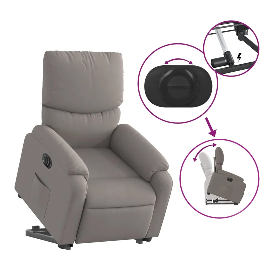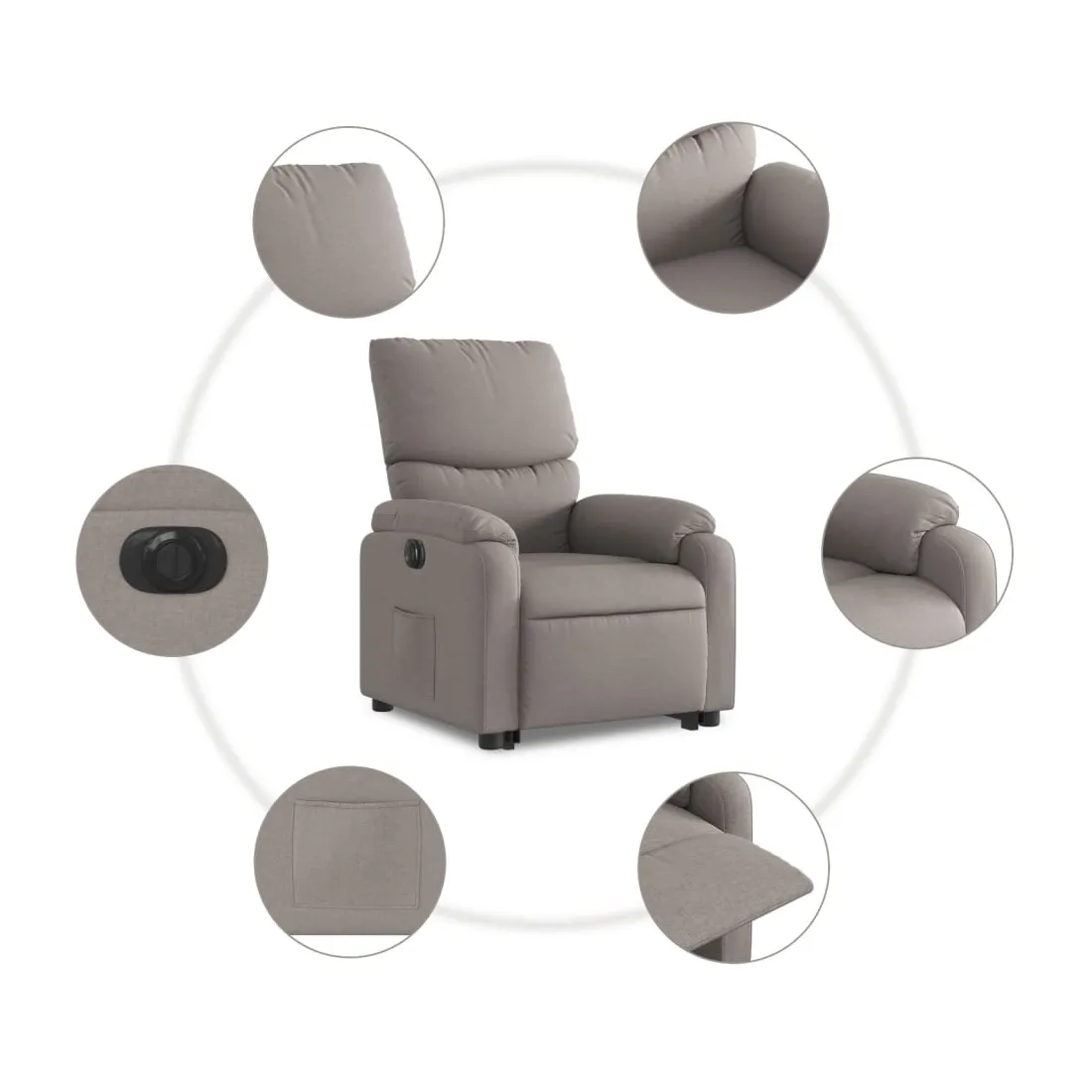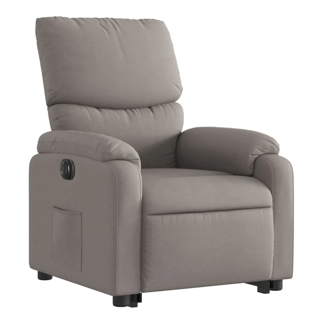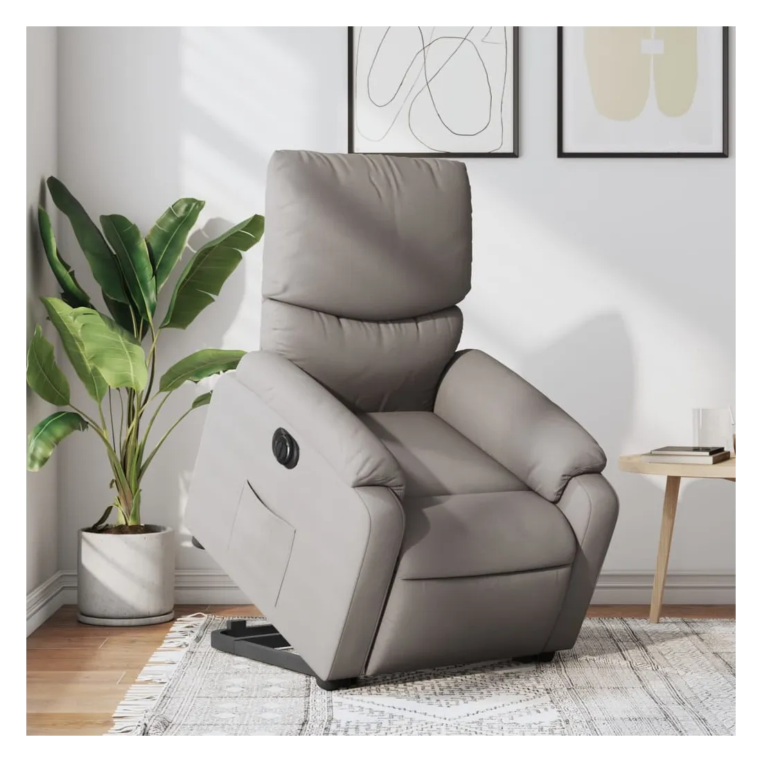 Asseyez-vous et détendez-vous dans ce fauteuil inclinable électrique très confortable ! Fonction de levage électrique : ce fauteuil inclinable pour personnes âgées est équipé d'un moteur électrique pour la fonction de levage. Grâce à la fonction qui pousse toute la chaise vers le haut, vous pouvez facilement vous tenir debout sans stresser votre dos et vos genoux en appuyant simplement sur le bouton.Fonction d'inclinaison électrique : ce fauteuil inclinable est également équipé d'un moteur électrique qui permet de régler automatiquement le repose-pied et le dossier dans n'importe quelle position, selon votre confort, en appuyant simplement sur le bouton situé sur le côté du fauteuil. Cette fonction permet une inclinaison maximale de 135 degrés. En outre, le dossier peut revenir automatiquement à sa position d'origine par une simple pression sur le bouton.Expérience d'assise confortable : le siège, le dossier et les larges accoudoirs bien rembourrés recouverts de tissu procurent une sensation confortable et chaleureuse, vous permettant de vous sentir enveloppé lorsque vous êtes assis. Le tissu présente un aspect simple et épuré et est respirant et durable.Poche latérale pratique : ce fauteuil est doté d'une poche latérale pour vous permettre de garder vos objets essentiels à portée de main.Cadre solide et stable : le cadre en bois et en métal offre une structure solide et une grande stabilité. Ce fauteuil inclinable est confortable et durable.