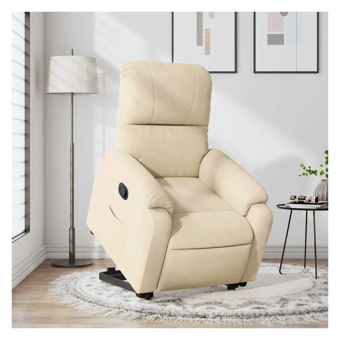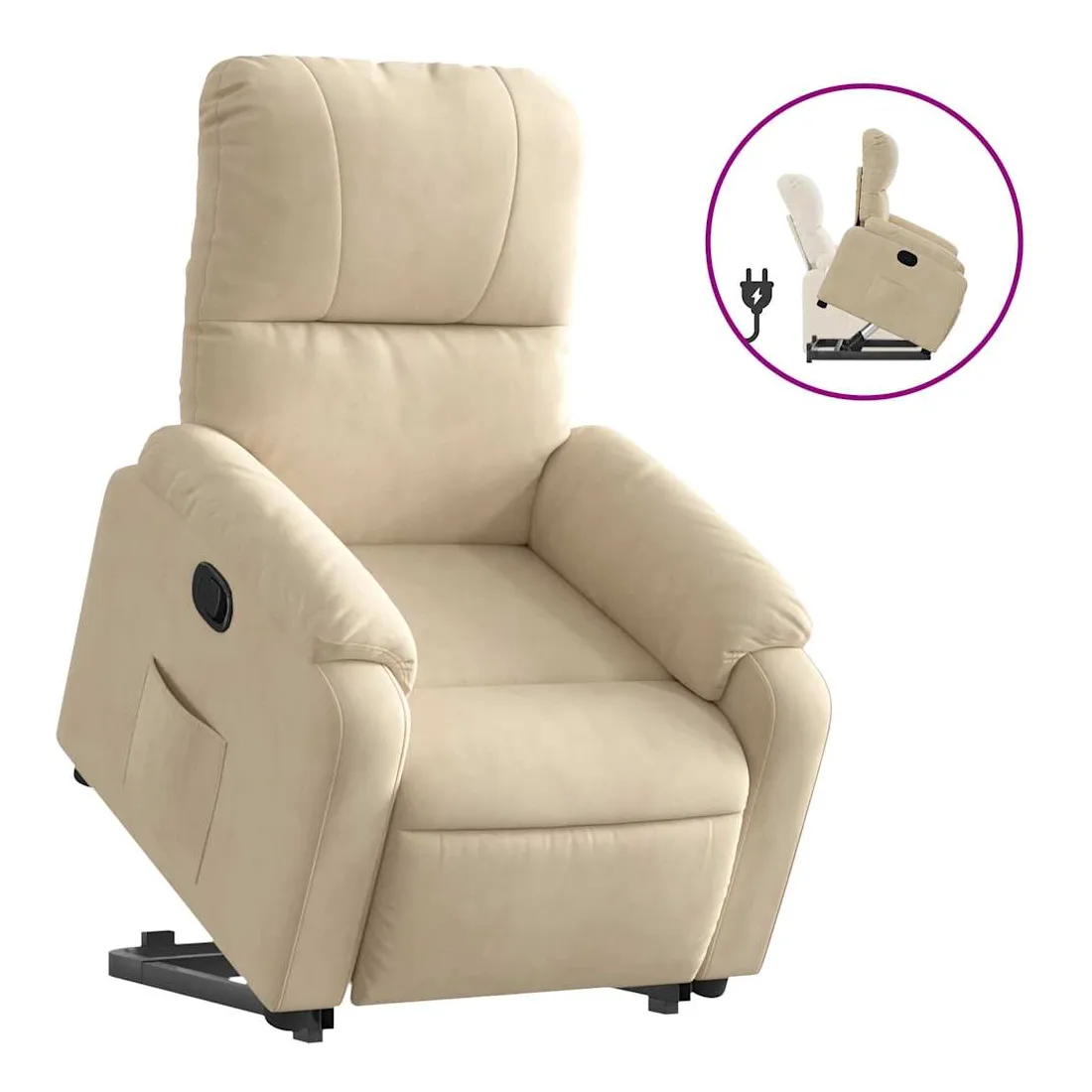 Asseyez-vous et détendez-vous dans ce fauteuil inclinable très confortable ! Fonction de levage électrique : ce fauteuil inclinable pour personnes âgées est équipé d'un moteur électrique pour la fonction de levage. Grâce à la fonction qui pousse toute la chaise vers le haut, vous pouvez facilement vous tenir debout sans stresser votre dos et vos genoux en appuyant simplement sur le bouton.Fonction d'inclinaison manuelle : ce fauteuil inclinable est doté d'une poignée du côté droit. Vous pouvez régler manuellement le repose-pieds et le dossier dans n'importe quelle position selon votre confort en tirant simplement sur la poignée. Cette fonction permet une inclinaison maximale de 135 degrés. De plus, le dossier peut revenir rapidement à sa position d'origine en tirant simplement sur la poignée.Expérience d'assise confortable : l'assise, le dossier et les larges accoudoirs recouverts de microfibres et dotés d'un rembourrage épais procurent une sensation de confort et de chaleur, vous permettant de vous sentir enveloppé lorsque vous êtes assis. La microfibre est un tissu synthétique composé de fibres ultrafines, particulièrement imperméables aux taches. La microfibre est un excellent choix pour le revêtement des meubles en raison de sa durabilité et de sa facilité d'entretien.Poche latérale pratique : ce fauteuil est doté d'une poche latérale pour vous permettre de garder vos objets essentiels à portée de main.Cadre solide et stable : le cadre en bois et en métal offre une structure solide et une grande stabilité. Ce fauteuil inclinable est confortable et durable.