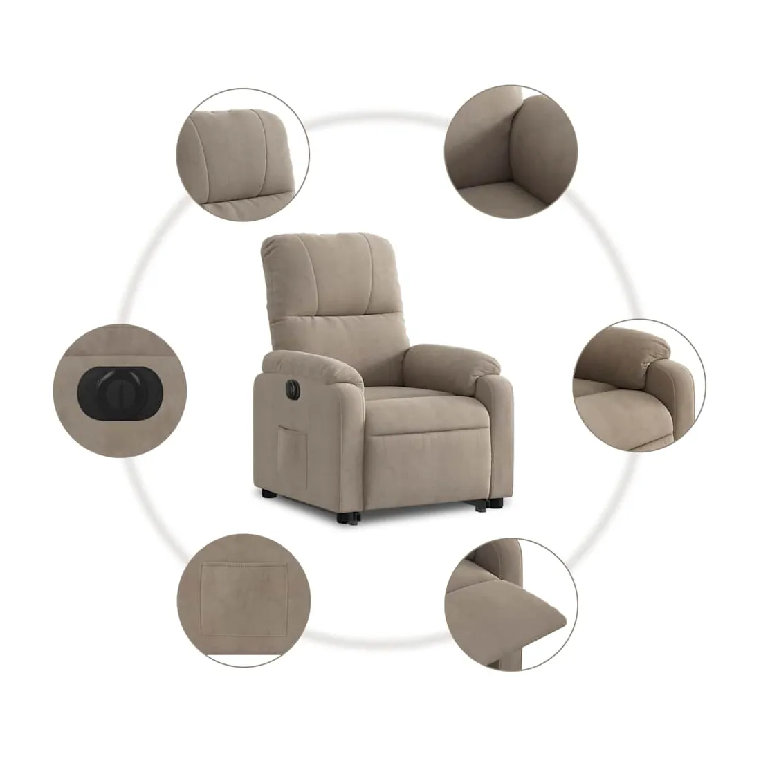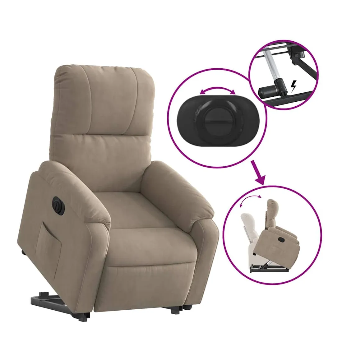 Asseyez-vous et détendez-vous dans ce fauteuil inclinable électrique très confortable ! Fonction de levage électrique : ce fauteuil inclinable pour personnes âgées est équipé d'un moteur électrique pour la fonction de levage. Grâce à la fonction qui pousse toute la chaise vers le haut, vous pouvez facilement vous tenir debout sans stresser votre dos et vos genoux en appuyant simplement sur le bouton.Fonction d'inclinaison électrique : ce fauteuil inclinable est également équipé d'un moteur électrique qui permet de régler automatiquement le repose-pied et le dossier dans n'importe quelle position, selon votre confort, en appuyant simplement sur le bouton situé sur le côté du fauteuil. Cette fonction permet une inclinaison maximale de 135 degrés. En outre, le dossier peut revenir automatiquement à sa position d'origine par une simple pression sur le bouton.Expérience d'assise confortable : l'assise, le dossier et les larges accoudoirs recouverts de microfibres et dotés d'un rembourrage épais procurent une sensation de confort et de chaleur, vous permettant de vous sentir enveloppé lorsque vous êtes assis. La microfibre est un tissu synthétique composé de fibres ultrafines, particulièrement imperméables aux taches. La microfibre est un excellent choix pour le revêtement des meubles en raison de sa durabilité et de sa facilité d'entretien.Poche latérale pratique : ce fauteuil est doté d'une poche latérale pour vous permettre de garder vos objets essentiels à portée de main.Cadre solide et stable : le cadre en bois et en métal offre une structure solide et une grande stabilité. Ce fauteuil inclinable est confortable et durable.