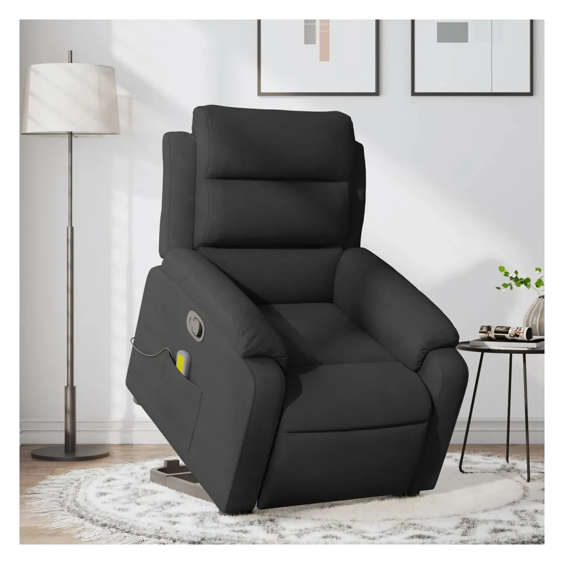 Asseyez-vous et détendez-vous dans ce fauteuil inclinable de massage très confortable ! Fonction de levage électrique : ce fauteuil inclinable pour personnes âgées est équipé d'un moteur électrique pour la fonction de levage. Grâce à la fonction qui pousse toute la chaise vers le haut, vous pouvez facilement vous tenir debout sans stresser votre dos et vos genoux en appuyant simplement sur le bouton.Fonction d'inclinaison manuelle : ce fauteuil inclinable est doté d'une poignée du côté droit. Vous pouvez régler manuellement le repose-pieds et le dossier dans n'importe quelle position selon votre confort en tirant simplement sur la poignée. Cette fonction permet une inclinaison maximale de 135 degrés. De plus, le dossier peut revenir rapidement à sa position d'origine en tirant simplement sur la poignée.Fonction de vibration : les 6 points de massage vous permettent de faire l'expérience d'un massage mieux ciblé. De plus, la télécommande incluse vous permet de choisir différents programmes de massage. La fonction de massage est alimentée par le connecteur USB qui nécessite une source d'alimentation USB certifiée de 5 V (non fournie).Expérience d'assise confortable : le siège, le dossier et les larges accoudoirs bien rembourrés recouverts de tissu procurent une sensation confortable et chaleureuse, vous permettant de vous sentir enveloppé lorsque vous êtes assis. Le tissu présente un aspect simple et épuré et est respirant et durable.Poche latérale pratique : ce fauteuil est doté d'une poche latérale pour ranger votre télécommande ou garder vos objets essentiels à portée de main.Cadre solide et stable : le cadre en bois et en métal offre une structure solide et une grande stabilité. Ce fauteuil inclinable est confortable et durable.