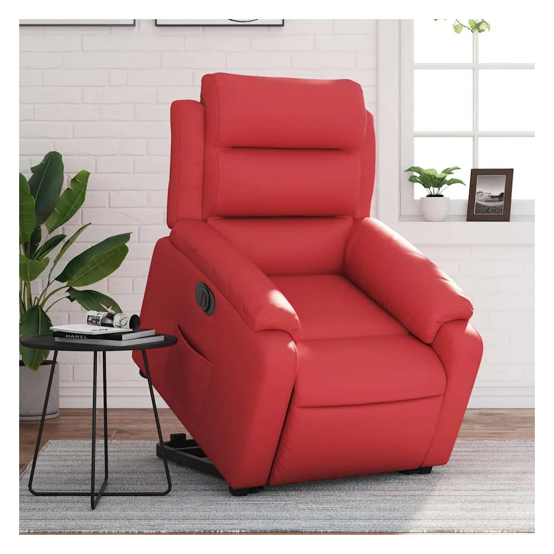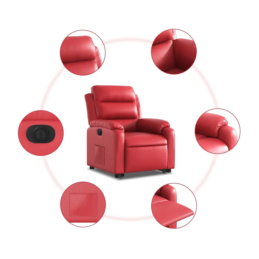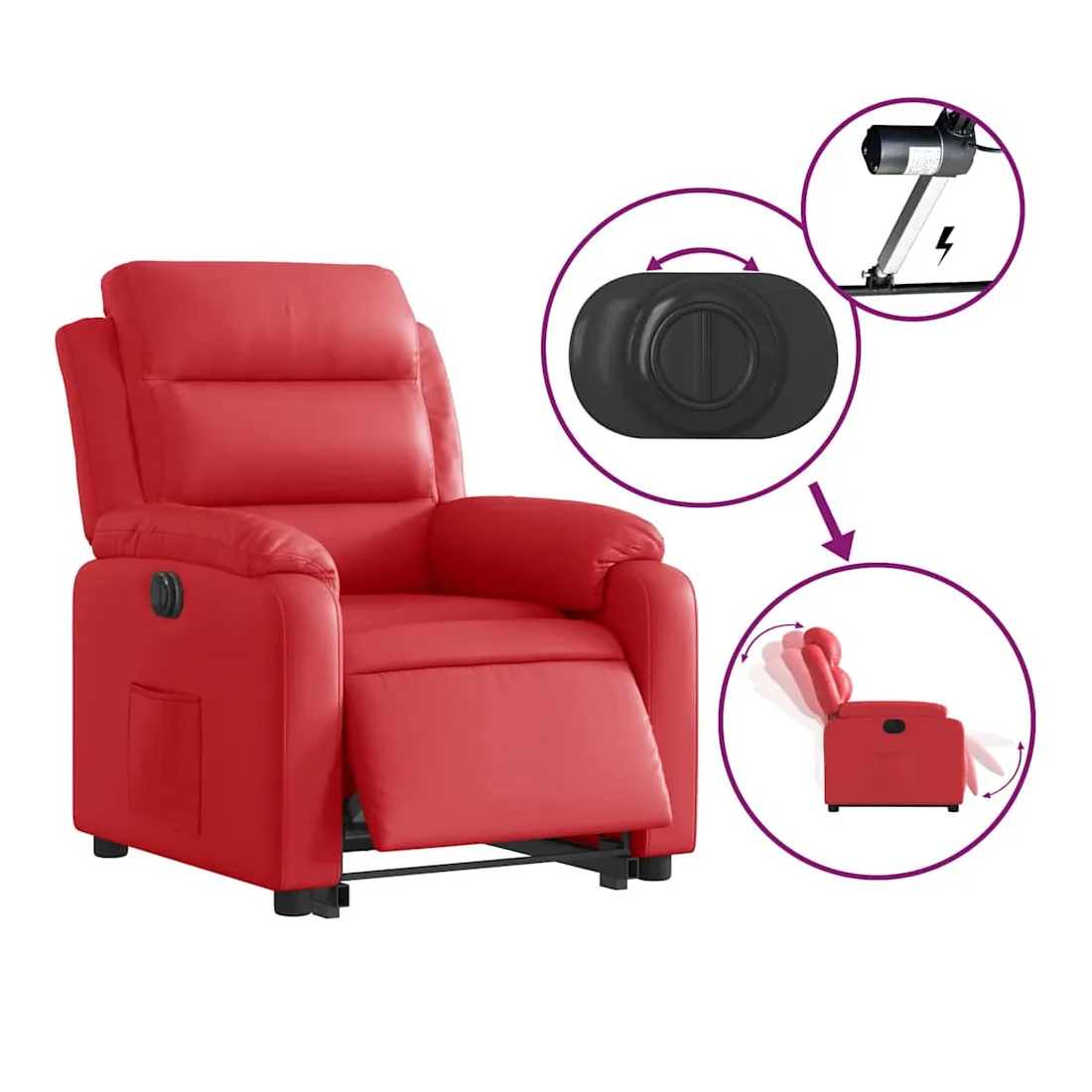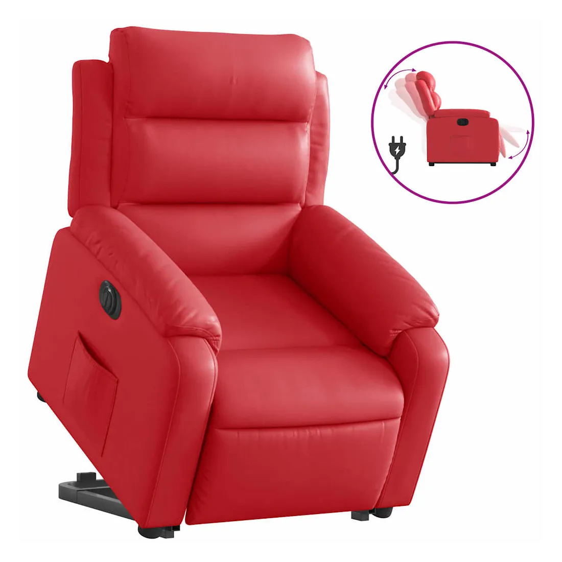 Asseyez-vous et détendez-vous dans ce fauteuil inclinable électrique très confortable ! Fonction de levage électrique : ce fauteuil inclinable pour personnes âgées est équipé d'un moteur électrique pour la fonction de levage. Grâce à la fonction qui pousse toute la chaise vers le haut, vous pouvez facilement vous tenir debout sans stresser votre dos et vos genoux en appuyant simplement sur le bouton.Fonction d'inclinaison électrique : ce fauteuil inclinable est également équipé d'un moteur électrique qui permet de régler automatiquement le repose-pied et le dossier dans n'importe quelle position, selon votre confort, en appuyant simplement sur le bouton situé sur le côté du fauteuil. Cette fonction permet une inclinaison maximale de 135 degrés. En outre, le dossier peut revenir automatiquement à sa position d'origine par une simple pression sur le bouton.Expérience de siège confortable : le siège, le dossier et les larges accoudoirs rembourrés épais recouverts de similicuir procurent une sensation confortable et chaleureuse, vous faisant vous sentir enlacé lorsque vous êtes assis. Le simili cuir est un matériau très résistant. Il est résistant aux taches, ce qui le rend facile à nettoyer avec un chiffon humide. La surface lisse donne également un aspect luxueux et la beauté du cuir véritable.Poche latérale pratique : ce fauteuil est doté d'une poche latérale pour vous permettre de garder vos objets essentiels à portée de main.Cadre solide et stable : le cadre en bois et en métal offre une structure solide et une grande stabilité. Ce fauteuil inclinable est confortable et durable.