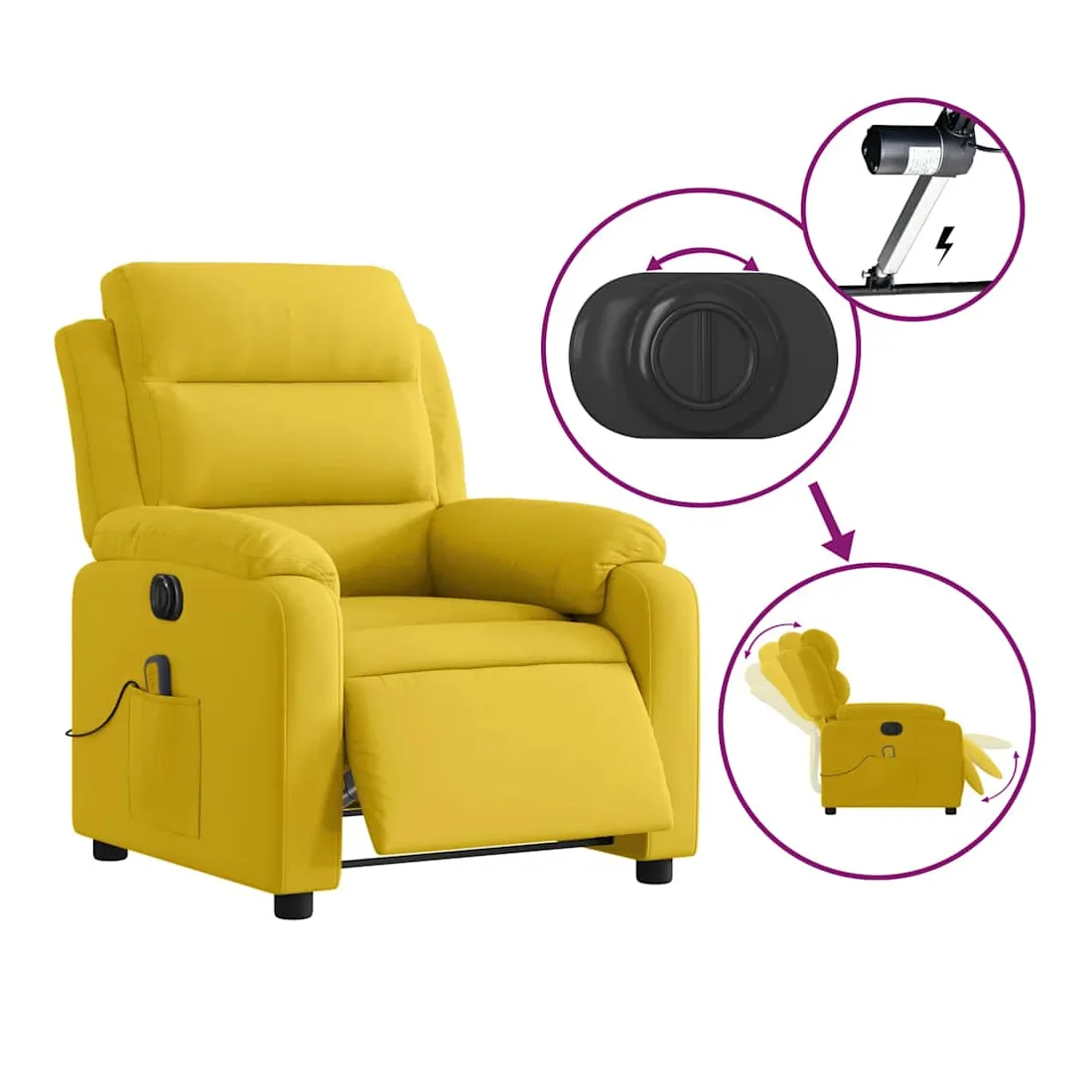 Fauteuil inclinable de massage électrique jaune velours