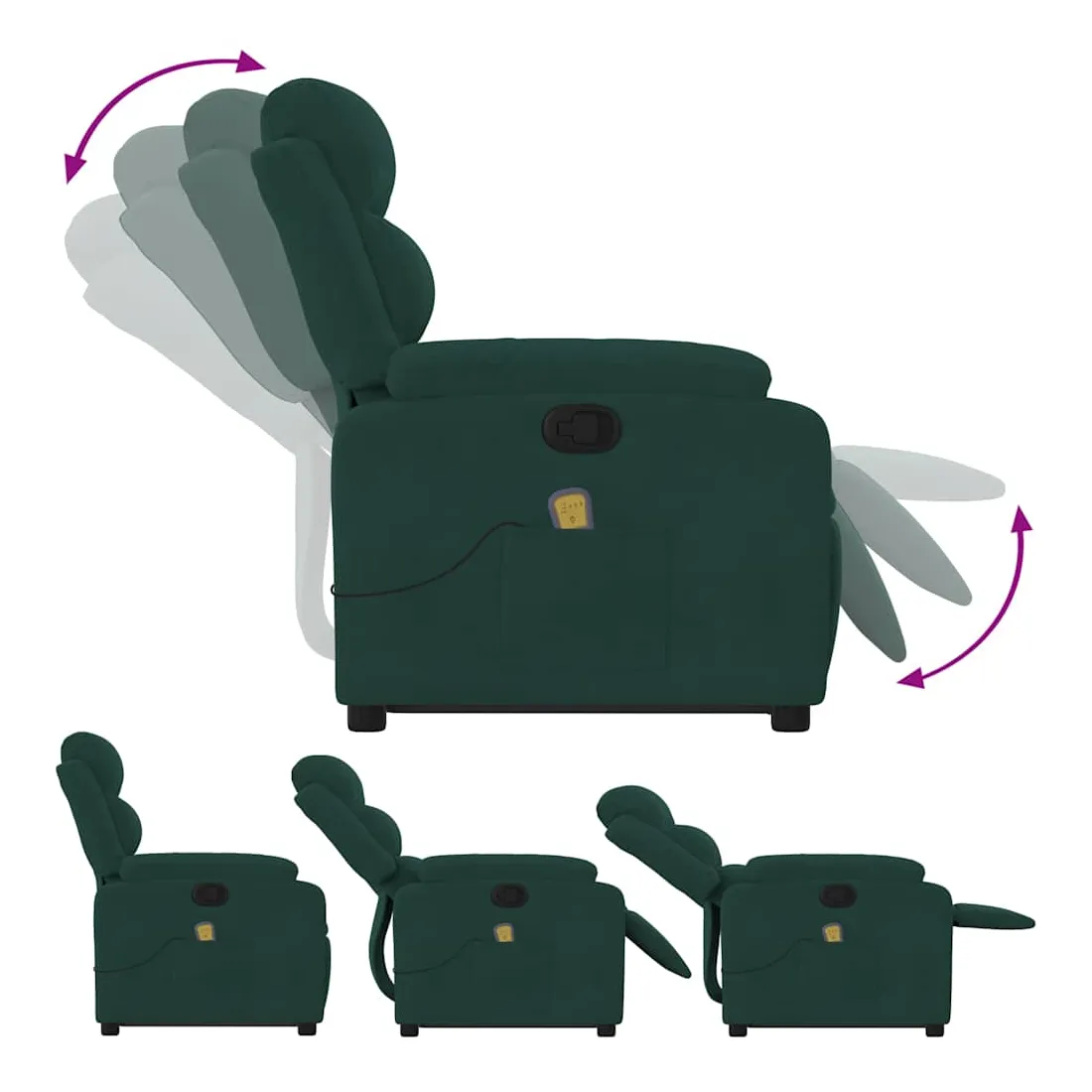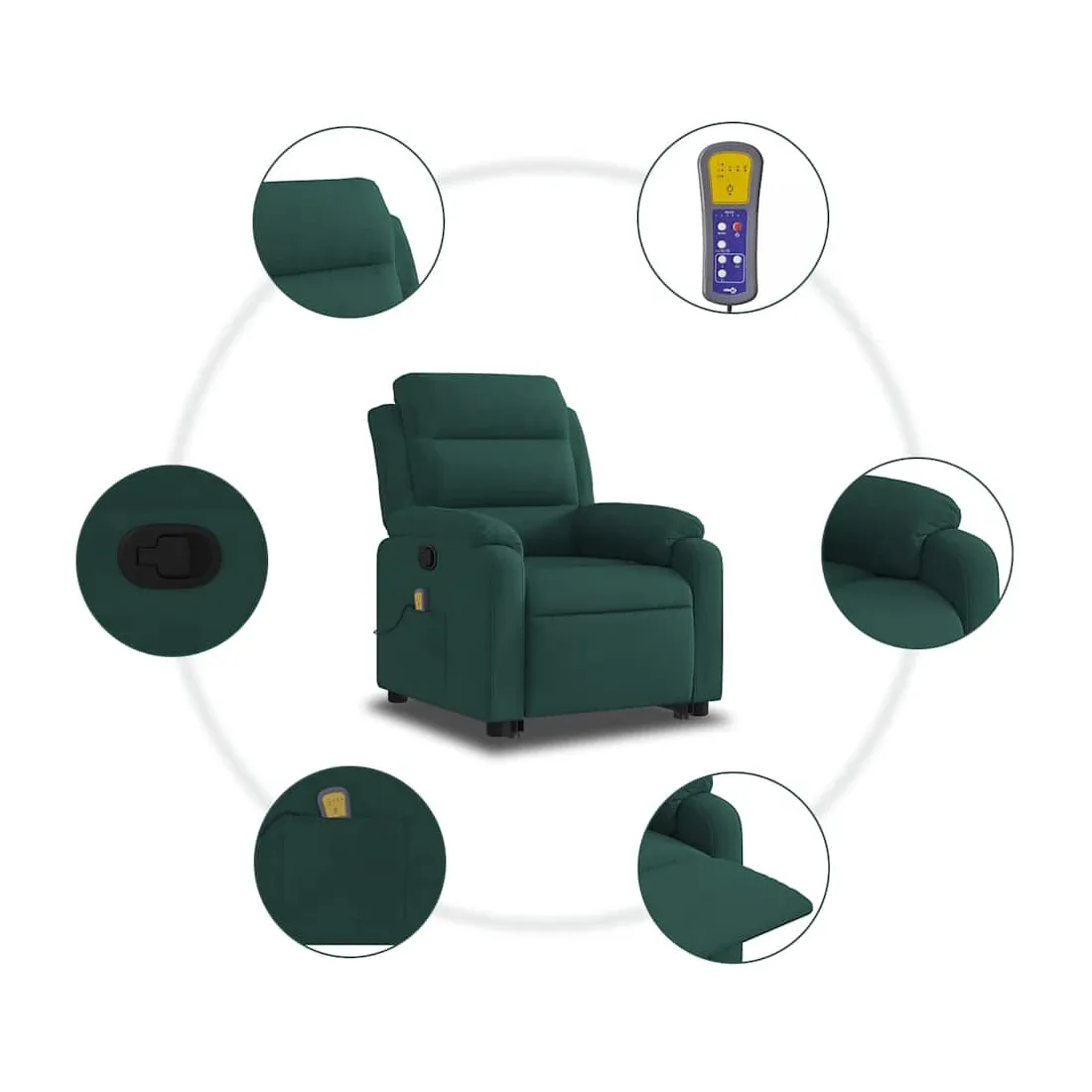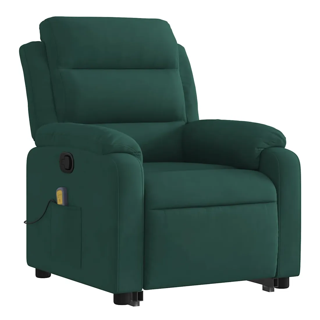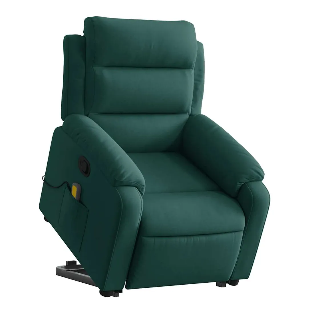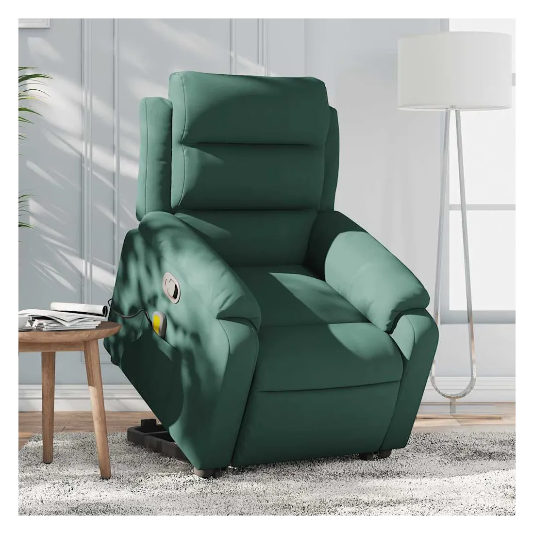 Asseyez-vous et détendez-vous dans ce fauteuil inclinable de massage très confortable ! Fonction de levage électrique : ce fauteuil inclinable pour personnes âgées est équipé d'un moteur électrique pour la fonction de levage. Grâce à la fonction qui pousse toute la chaise vers le haut, vous pouvez facilement vous tenir debout sans stresser votre dos et vos genoux en appuyant simplement sur le bouton.Fonction d'inclinaison manuelle : ce fauteuil inclinable est doté d'une poignée du côté droit. Vous pouvez régler manuellement le repose-pieds et le dossier dans n'importe quelle position selon votre confort en tirant simplement sur la poignée. Cette fonction permet une inclinaison maximale de 135 degrés. De plus, le dossier peut revenir rapidement à sa position d'origine en tirant simplement sur la poignée.Fonction de vibration : les 6 points de massage vous permettent de faire l'expérience d'un massage mieux ciblé. De plus, la télécommande incluse vous permet de choisir différents programmes de massage. La fonction de massage est alimentée par le connecteur USB qui nécessite une source d'alimentation USB certifiée de 5 V (non fournie).Expérience d'assise confortable : le siège, le dossier et les larges accoudoirs rembourrés épais recouverts de velours procurent une sensation confortable et chaleureuse, vous faisant vous sentir enlacé lorsque vous êtes assis. Le velours est un tissu doux et confortable qui est agréable sur la peau.Poche latérale pratique : ce fauteuil est doté d'une poche latérale pour ranger votre télécommande ou garder vos objets essentiels à portée de main.Cadre solide et stable : le cadre en bois et en métal offre une structure solide et une grande stabilité. Ce fauteuil inclinable est confortable et durable.