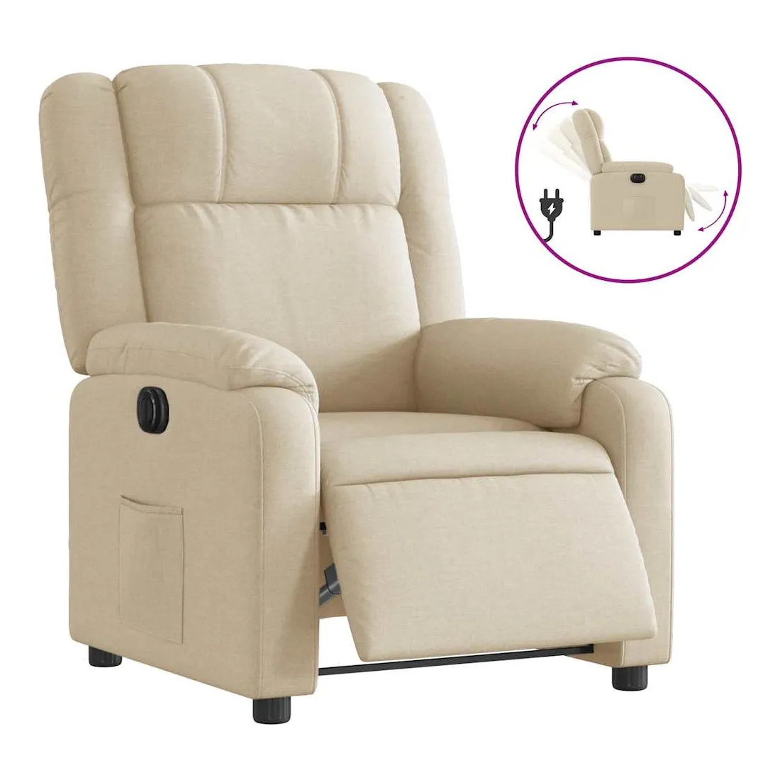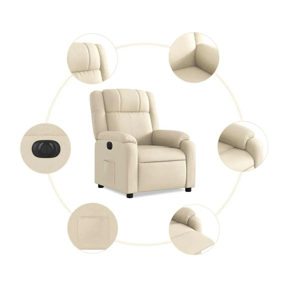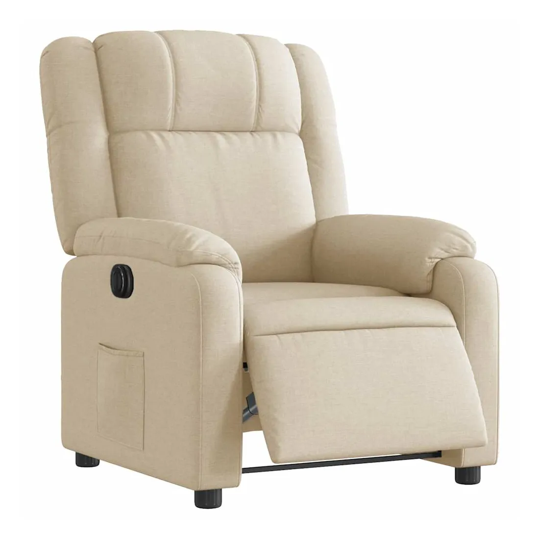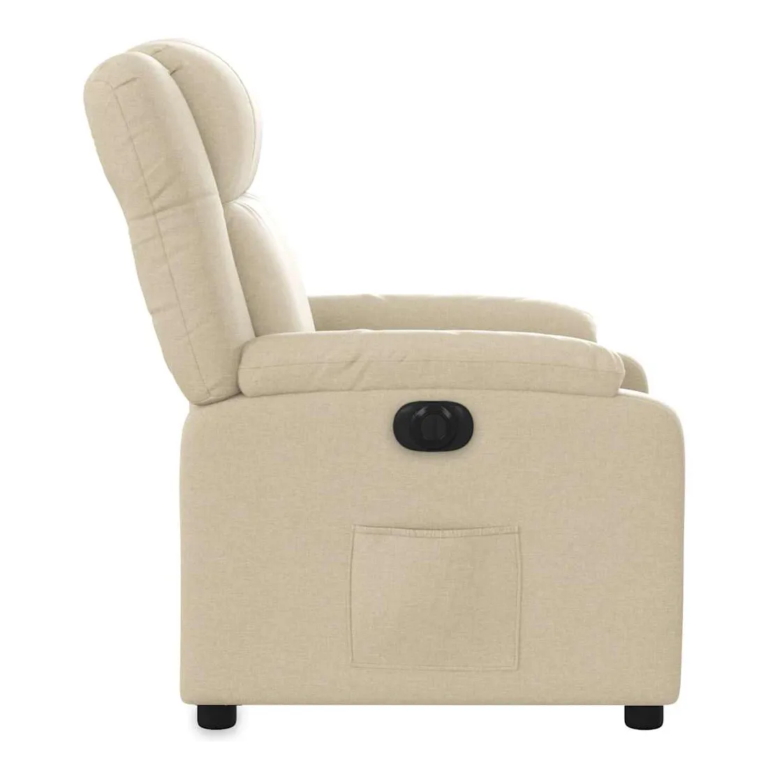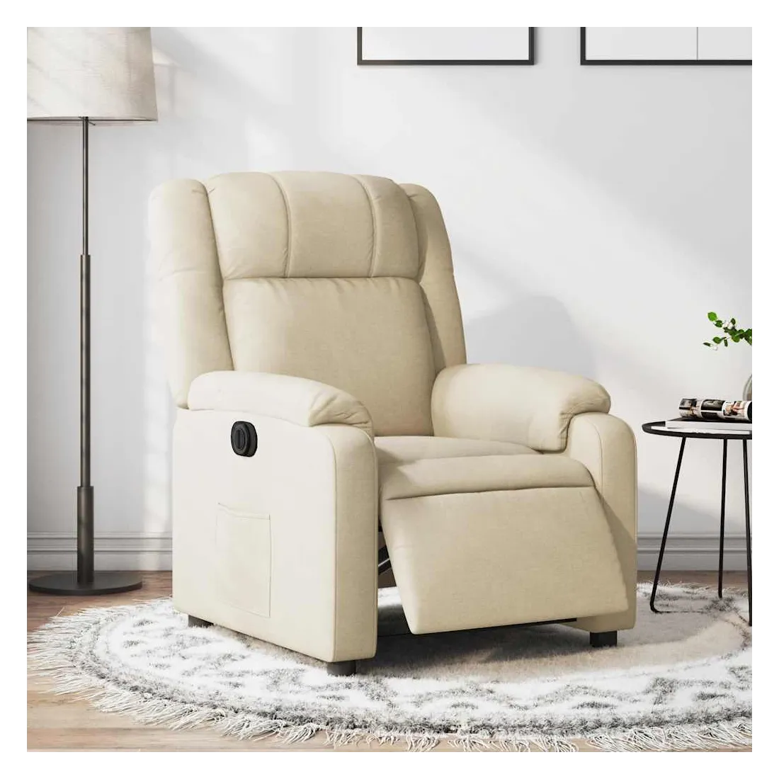 Asseyez-vous et détendez-vous dans ce fauteuil inclinable électrique très confortable ! Fonction d'inclinaison électrique : ce fauteuil inclinable est équipé d'un moteur électrique qui permet de régler automatiquement le repose-pied et le dossier dans n'importe quelle position, selon votre confort, en appuyant simplement sur le bouton situé sur le côté du fauteuil. Cette fonction permet une inclinaison maximale de 135 degrés. En outre, le dossier peut revenir automatiquement à sa position d'origine par une simple pression sur le bouton.Expérience d'assise confortable : le siège, le dossier et les larges accoudoirs bien rembourrés recouverts de tissu procurent une sensation confortable et chaleureuse, vous permettant de vous sentir enveloppé lorsque vous êtes assis. Le tissu présente un aspect simple et épuré et est respirant et durable.Poche latérale pratique : ce fauteuil est doté d'une poche latérale pour vous permettre de garder vos objets essentiels à portée de main.Cadre solide et stable : le cadre en bois et en métal offre une structure solide et une grande stabilité. Ce fauteuil inclinable est confortable et durable.