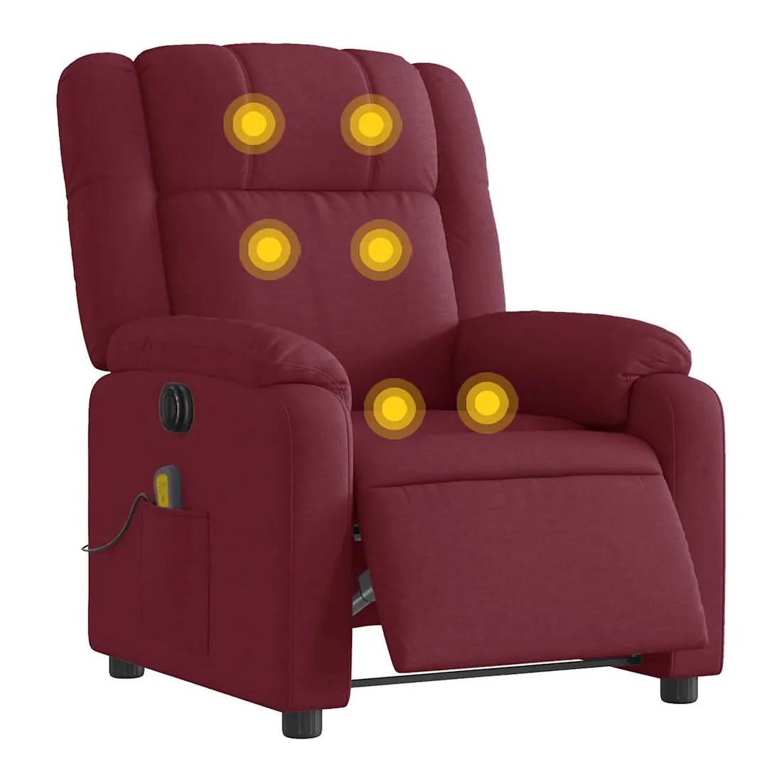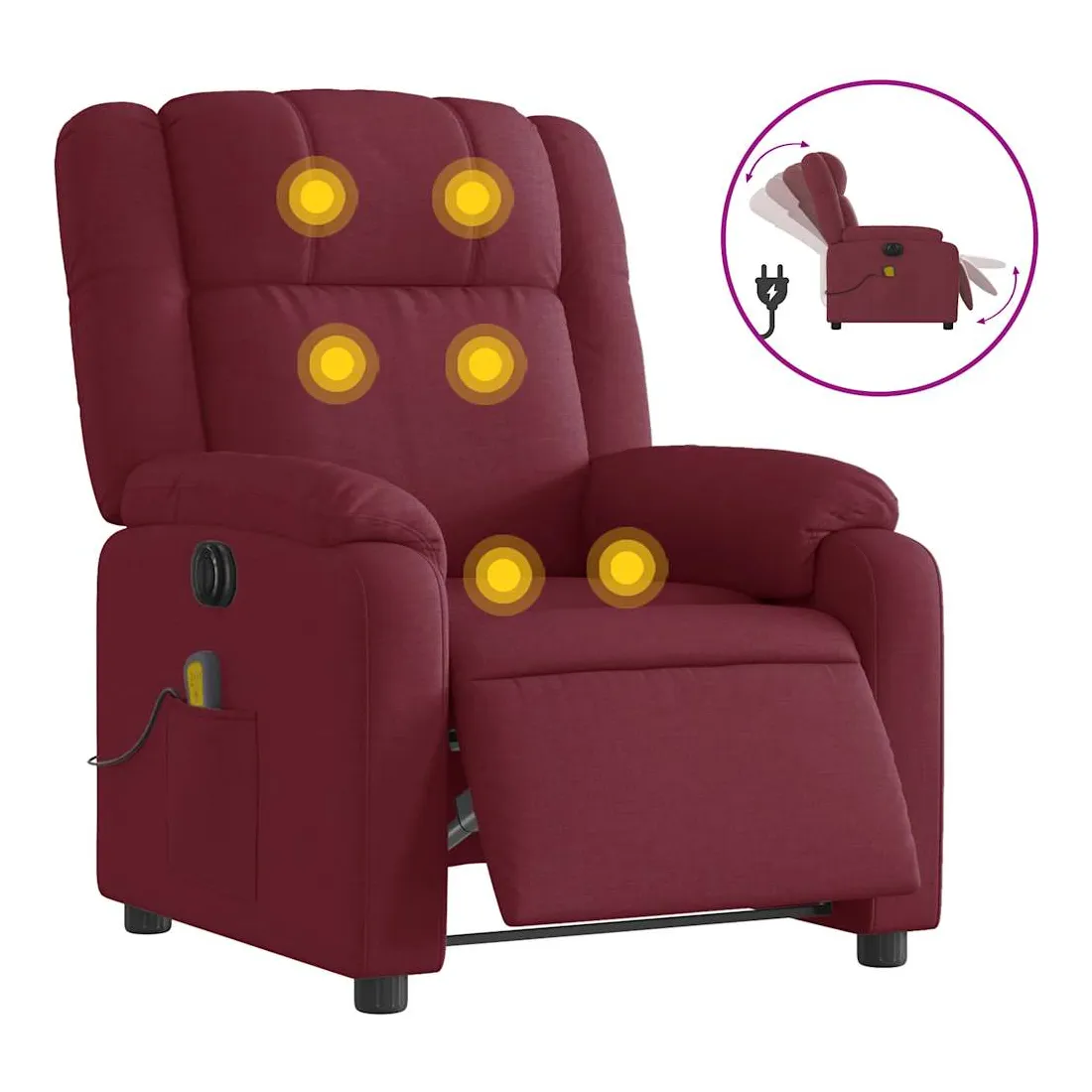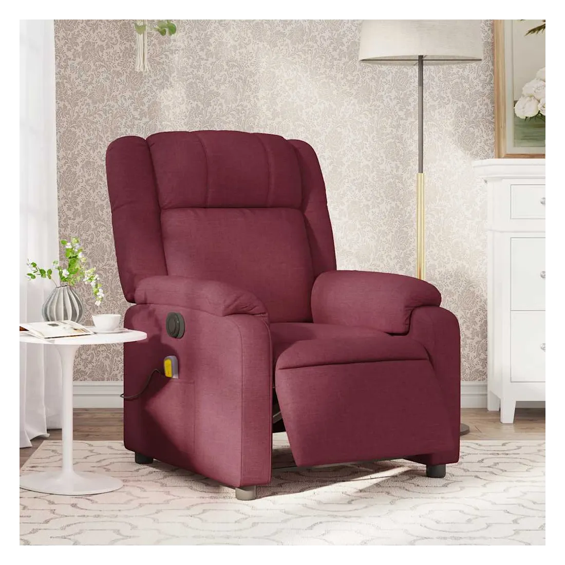 Asseyez-vous et détendez-vous dans ce fauteuil inclinable de massage électrique très confortable ! Fonction d'inclinaison électrique : ce fauteuil inclinable est équipé d'un moteur électrique qui permet de régler automatiquement le repose-pied et le dossier dans n'importe quelle position, selon votre confort, en appuyant simplement sur le bouton situé sur le côté du fauteuil. Cette fonction permet une inclinaison maximale de 135 degrés. En outre, le dossier peut revenir automatiquement à sa position d'origine par une simple pression sur le bouton.Fonction de vibration : les 6 points de massage vous permettent de faire l'expérience d'un massage mieux ciblé. De plus, la télécommande incluse vous permet de choisir différents programmes de massage. La fonction de massage est alimentée par le connecteur USB qui nécessite une source d'alimentation USB certifiée de 5 V (non fournie).Expérience d'assise confortable : le siège, le dossier et les larges accoudoirs bien rembourrés recouverts de tissu procurent une sensation confortable et chaleureuse, vous permettant de vous sentir enveloppé lorsque vous êtes assis. Le tissu présente un aspect simple et épuré et est respirant et durable.Poche latérale pratique : ce fauteuil est doté d'une poche latérale pour ranger votre télécommande ou garder vos objets essentiels à portée de main.Cadre solide et stable : le cadre en bois et en métal offre une structure solide et une grande stabilité. Ce fauteuil inclinable est confortable et durable.