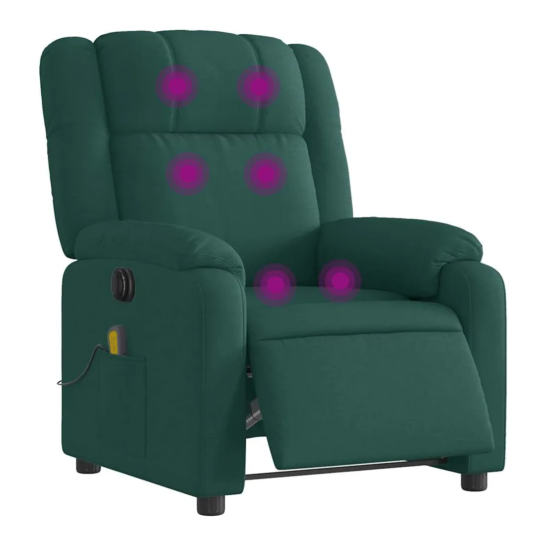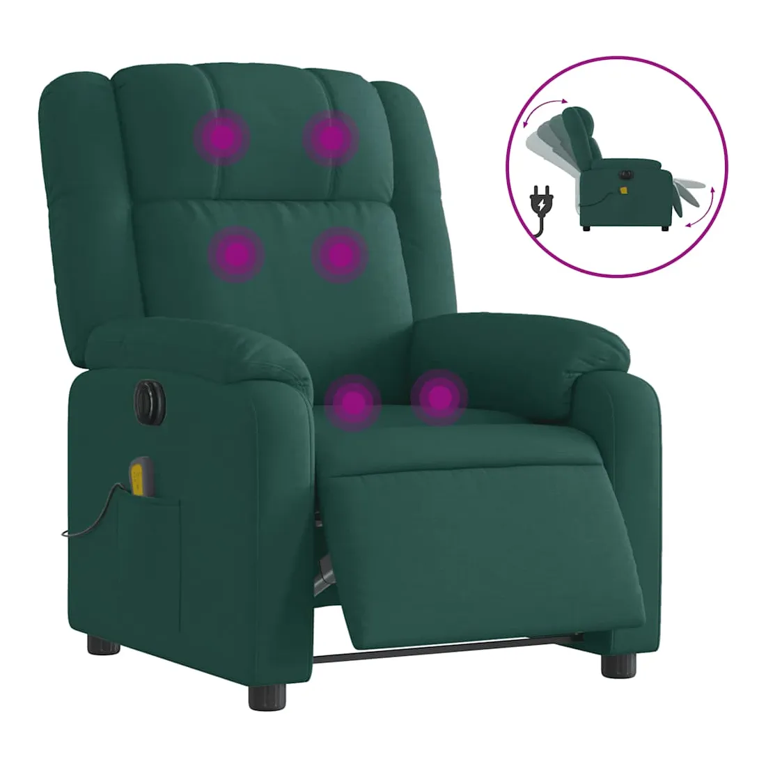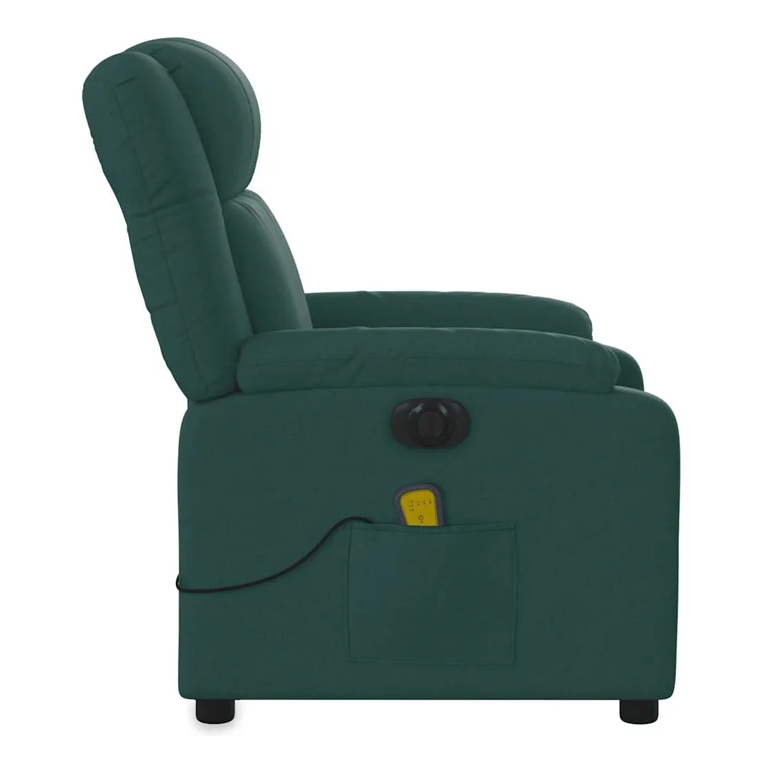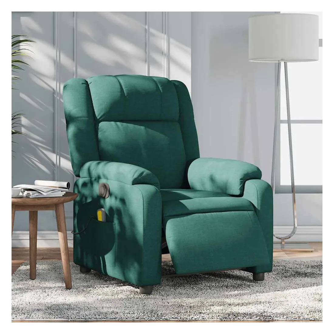 Asseyez-vous et détendez-vous dans ce fauteuil inclinable de massage électrique très confortable ! Fonction d'inclinaison électrique : ce fauteuil inclinable est équipé d'un moteur électrique qui permet de régler automatiquement le repose-pied et le dossier dans n'importe quelle position, selon votre confort, en appuyant simplement sur le bouton situé sur le côté du fauteuil. Cette fonction permet une inclinaison maximale de 135 degrés. En outre, le dossier peut revenir automatiquement à sa position d'origine par une simple pression sur le bouton.Fonction de vibration : les 6 points de massage vous permettent de faire l'expérience d'un massage mieux ciblé. De plus, la télécommande incluse vous permet de choisir différents programmes de massage. La fonction de massage est alimentée par le connecteur USB qui nécessite une source d'alimentation USB certifiée de 5 V (non fournie).Expérience d'assise confortable : le siège, le dossier et les larges accoudoirs bien rembourrés recouverts de tissu procurent une sensation confortable et chaleureuse, vous permettant de vous sentir enveloppé lorsque vous êtes assis. Le tissu présente un aspect simple et épuré et est respirant et durable.Poche latérale pratique : ce fauteuil est doté d'une poche latérale pour ranger votre télécommande ou garder vos objets essentiels à portée de main.Cadre solide et stable : le cadre en bois et en métal offre une structure solide et une grande stabilité. Ce fauteuil inclinable est confortable et durable.