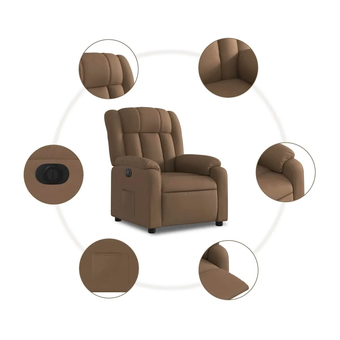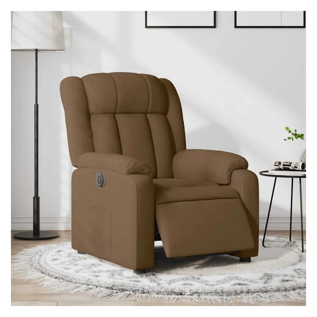 Asseyez-vous et détendez-vous dans ce fauteuil inclinable électrique très confortable ! Fonction d'inclinaison électrique : ce fauteuil inclinable est équipé d'un moteur électrique qui permet de régler automatiquement le repose-pied et le dossier dans n'importe quelle position, selon votre confort, en appuyant simplement sur le bouton situé sur le côté du fauteuil. Cette fonction permet une inclinaison maximale de 135 degrés. En outre, le dossier peut revenir automatiquement à sa position d'origine par une simple pression sur le bouton. Expérience d'assise confortable : le siège, le dossier et les larges accoudoirs bien rembourrés recouverts de tissu procurent une sensation confortable et chaleureuse, vous permettant de vous sentir enveloppé lorsque vous êtes assis. Le tissu présente un aspect simple et épuré et est respirant et durable. Poche latérale pratique : ce fauteuil est doté d'une poche latérale pour vous permettre de garder vos objets essentiels à portée de main. Cadre solide et stable : le cadre en bois et en métal offre une structure solide et une grande stabilité. Ce fauteuil inclinable est confortable et durable.