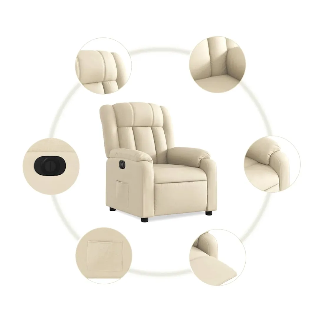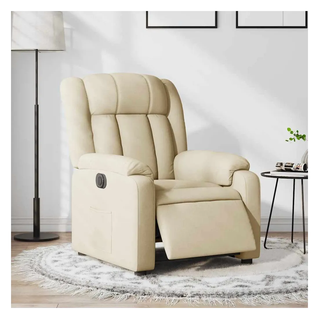 Asseyez-vous et détendez-vous dans ce fauteuil inclinable électrique très confortable ! Fonction d'inclinaison électrique : ce fauteuil inclinable est équipé d'un moteur électrique qui permet de régler automatiquement le repose-pied et le dossier dans n'importe quelle position, selon votre confort, en appuyant simplement sur le bouton situé sur le côté du fauteuil. Cette fonction permet une inclinaison maximale de 135 degrés. En outre, le dossier peut revenir automatiquement à sa position d'origine par une simple pression sur le bouton. Expérience d'assise confortable : le siège, le dossier et les larges accoudoirs bien rembourrés recouverts de tissu procurent une sensation confortable et chaleureuse, vous permettant de vous sentir enveloppé lorsque vous êtes assis. Le tissu présente un aspect simple et épuré et est respirant et durable. Poche latérale pratique : ce fauteuil est doté d'une poche latérale pour vous permettre de garder vos objets essentiels à portée de main. Cadre solide et stable : le cadre en bois et en métal offre une structure solide et une grande stabilité. Ce fauteuil inclinable est confortable et durable.