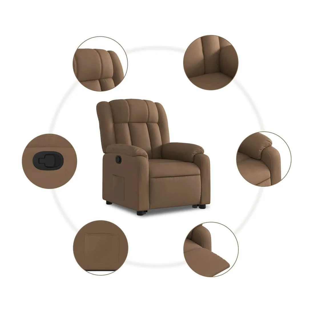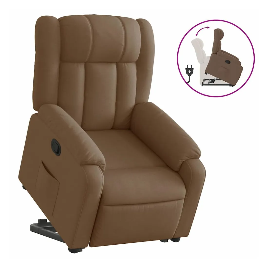 Asseyez-vous et détendez-vous dans ce fauteuil inclinable très confortable ! Fonction de levage électrique : ce fauteuil inclinable pour personnes âgées est équipé d'un moteur électrique pour la fonction de levage. Grâce à la fonction qui pousse toute la chaise vers le haut, vous pouvez facilement vous tenir debout sans stresser votre dos et vos genoux en appuyant simplement sur le bouton. Fonction d'inclinaison manuelle : ce fauteuil inclinable est doté d'une poignée du côté droit. Vous pouvez régler manuellement le repose-pieds et le dossier dans n'importe quelle position selon votre confort en tirant simplement sur la poignée. Cette fonction permet une inclinaison maximale de 135 degrés. De plus, le dossier peut revenir rapidement à sa position d'origine en tirant simplement sur la poignée. Expérience d'assise confortable : le siège, le dossier et les larges accoudoirs bien rembourrés recouverts de tissu procurent une sensation confortable et chaleureuse, vous permettant de vous sentir enveloppé lorsque vous êtes assis. Le tissu présente un aspect simple et épuré et est respirant et durable. Poche latérale pratique : ce fauteuil est doté d'une poche latérale pour vous permettre de garder vos objets essentiels à portée de main. Cadre solide et stable : le cadre en bois et en métal offre une structure solide et une grande stabilité. Ce fauteuil inclinable est confortable et durable.