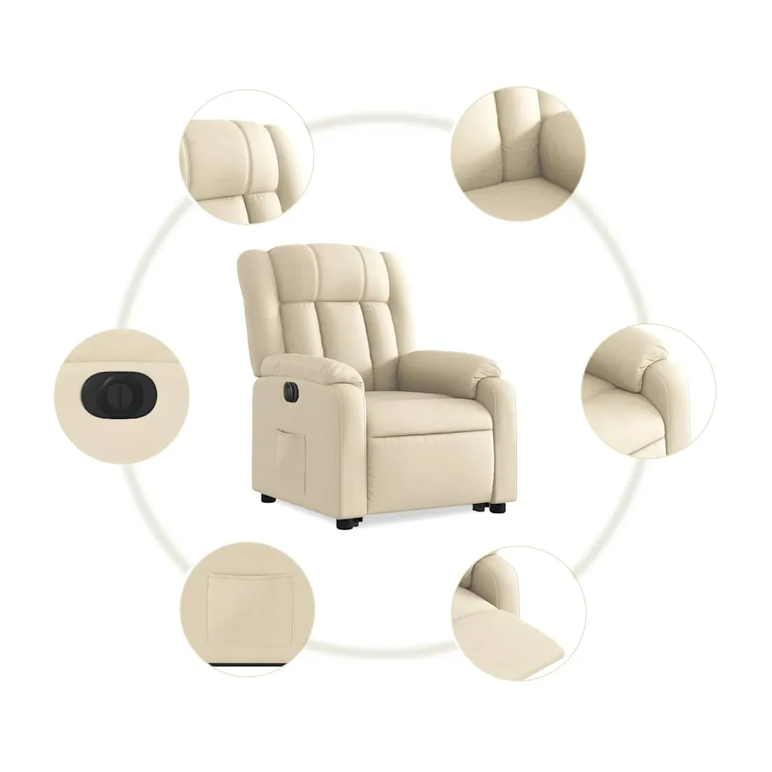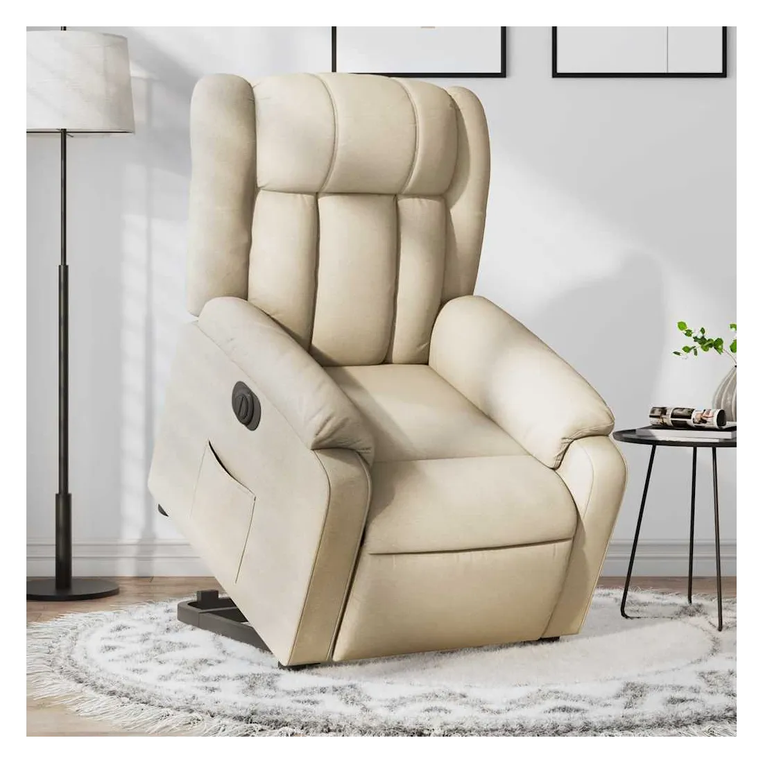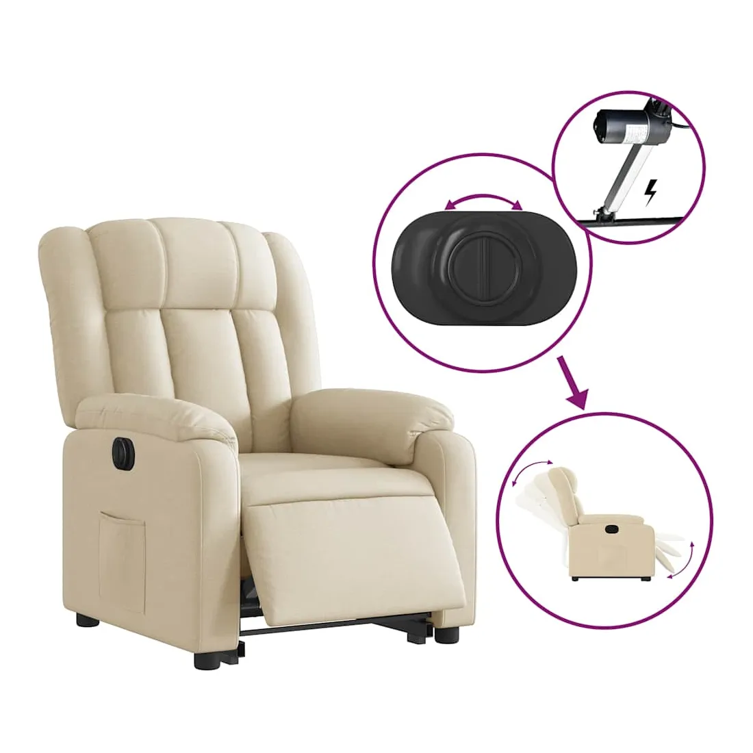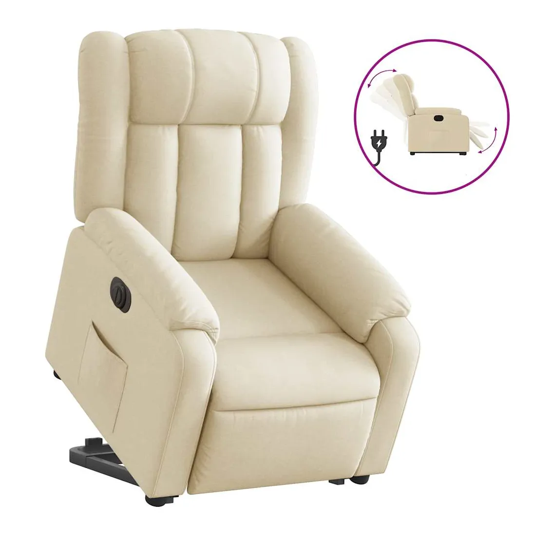 Asseyez-vous et détendez-vous dans ce fauteuil inclinable électrique très confortable ! Fonction de levage électrique : ce fauteuil inclinable pour personnes âgées est équipé d'un moteur électrique pour la fonction de levage. Grâce à la fonction qui pousse toute la chaise vers le haut, vous pouvez facilement vous tenir debout sans stresser votre dos et vos genoux en appuyant simplement sur le bouton. Fonction d'inclinaison électrique : ce fauteuil inclinable est également équipé d'un moteur électrique qui permet de régler automatiquement le repose-pied et le dossier dans n'importe quelle position, selon votre confort, en appuyant simplement sur le bouton situé sur le côté du fauteuil. Cette fonction permet une inclinaison maximale de 135 degrés. En outre, le dossier peut revenir automatiquement à sa position d'origine par une simple pression sur le bouton. Expérience d'assise confortable : le siège, le dossier et les larges accoudoirs bien rembourrés recouverts de tissu procurent une sensation confortable et chaleureuse, vous permettant de vous sentir enveloppé lorsque vous êtes assis. Le tissu présente un aspect simple et épuré et est respirant et durable. Poche latérale pratique : ce fauteuil est doté d'une poche latérale pour vous permettre de garder vos objets essentiels à portée de main. Cadre solide et stable : le cadre en bois et en métal offre une structure solide et une grande stabilité. Ce fauteuil inclinable est confortable et durable.