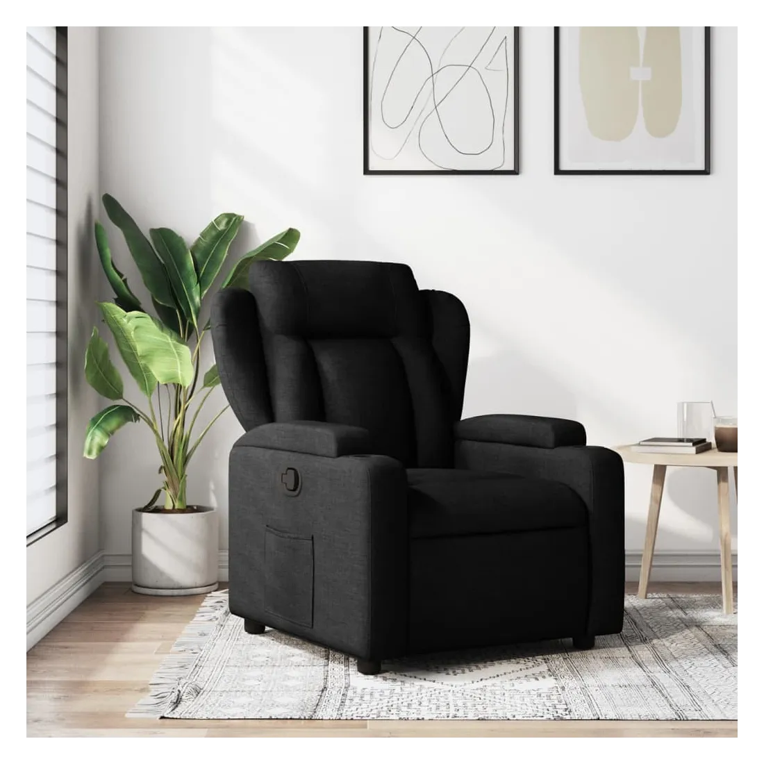 Asseyez-vous et laissez-vous emporter par ce fauteuil inclinable très confortable ! Fonction d'inclinaison manuelle : Ce fauteuil inclinable est doté d'un bouton sur le côté droit. Vous pouvez régler manuellement le repose-pieds et le dossier dans n'importe quelle position selon votre confort en tirant simplement sur la poignée. Cette fonction permet une inclinaison maximale de 135 degrés. De plus, le dossier peut revenir rapidement à sa position initiale en tirant facilement sur la poignée.Expérience d'assise confortable : L'assise, le dossier et les larges accoudoirs rembourrés et recouverts de tissu offrent une sensation de confort et de chaleur, vous donnant l'impression d'être bien installé. Le tissu présente un aspect simple et épuré, est respirant et durable.Porte-gobelets pratiques et poche latérale : Ce fauteuil est doté de deux porte-gobelets pratiques pour vos boissons et d'une poche latérale pour garder vos objets essentiels à portée de main.Cadre solide et stable : Le cadre en bois et en métal offre une structure solide et stable. Ce fauteuil inclinable est confortable et durable.