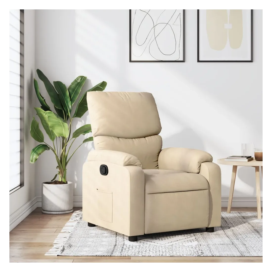 Asseyez-vous et laissez-vous emporter par ce fauteuil inclinable ultra-confortable ! Fonction d'inclinaison manuelle : Ce fauteuil inclinable est doté d'une poignée sur le côté droit. Vous pouvez régler manuellement le repose-pieds et le dossier à votre convenance d'une simple traction sur la poignée. Cette fonction permet une inclinaison maximale de 135 degrés. De plus, le dossier peut revenir rapidement à sa position initiale d'une simple traction sur la poignée.Assise confortable : L'assise, le dossier et les larges accoudoirs rembourrés et recouverts de tissu offrent une sensation de confort et de chaleur, vous permettant de vous sentir bien installé. Le tissu, au look simple et épuré, est respirant et durable.Poche latérale pratique : Ce fauteuil est doté d'une poche latérale pour garder vos objets essentiels à portée de main.Cadre solide et stable : Le cadre en bois et en métal offre une structure solide et stable. Ce fauteuil inclinable est confortable et durable.