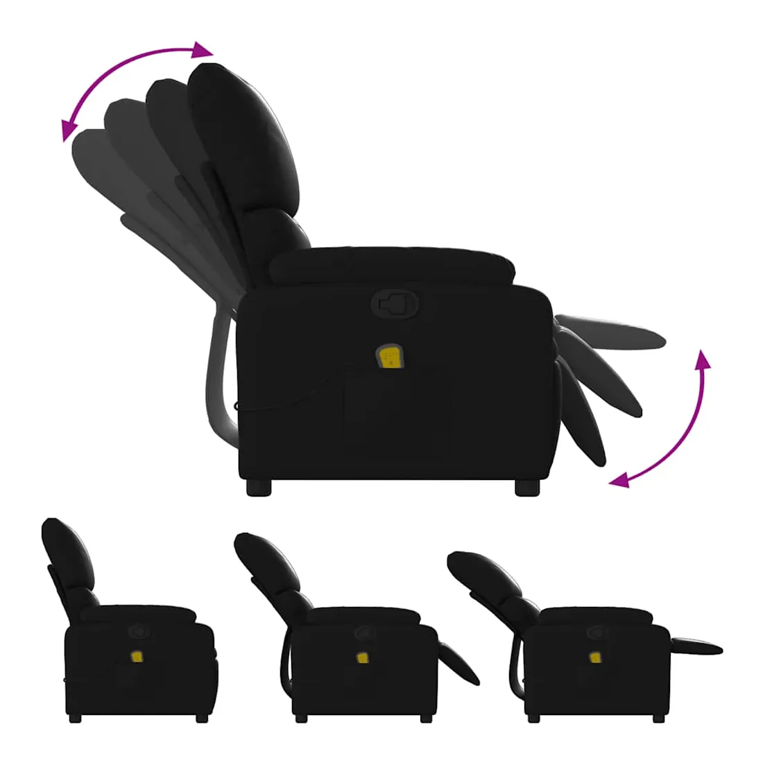 Asseyez-vous et détendez-vous dans ce fauteuil inclinable de massage très confortable ! Fonction d'inclinaison manuelle : ce fauteuil inclinable est doté d'une poignée du côté droit. Vous pouvez régler manuellement le repose-pieds et le dossier dans n'importe quelle position selon votre confort en tirant simplement sur la poignée. Cette fonction permet une inclinaison maximale de 135 degrés. De plus, le dossier peut revenir rapidement à sa position d'origine en tirant simplement sur la poignée.Fonction de vibration : les 6 points de massage vous permettent de faire l'expérience d'un massage mieux ciblé. De plus, la télécommande incluse vous permet de choisir différents programmes de massage. La fonction de massage est alimentée par le connecteur USB, mais la source d'alimentation USB 5V certifiée n'est pas incluse.Expérience de siège confortable : le siège, le dossier et les larges accoudoirs rembourrés épais recouverts de similicuir procurent une sensation confortable, vous faisant vous sentir enlacé lorsque vous êtes assis. Le similicuir est un matériau très résistant. Il est résistant aux taches, ce qui le rend facile à nettoyer avec un chiffon humide. La surface lisse donne également un aspect luxueux et la beauté du cuir véritable.Poche latérale pratique : ce fauteuil est doté d'une poche latérale pour ranger votre télécommande ou garder vos objets essentiels à portée de main.Cadre solide et stable : le cadre en bois et en métal offre une structure solide et une grande stabilité. Ce fauteuil inclinable est confortable et durable.