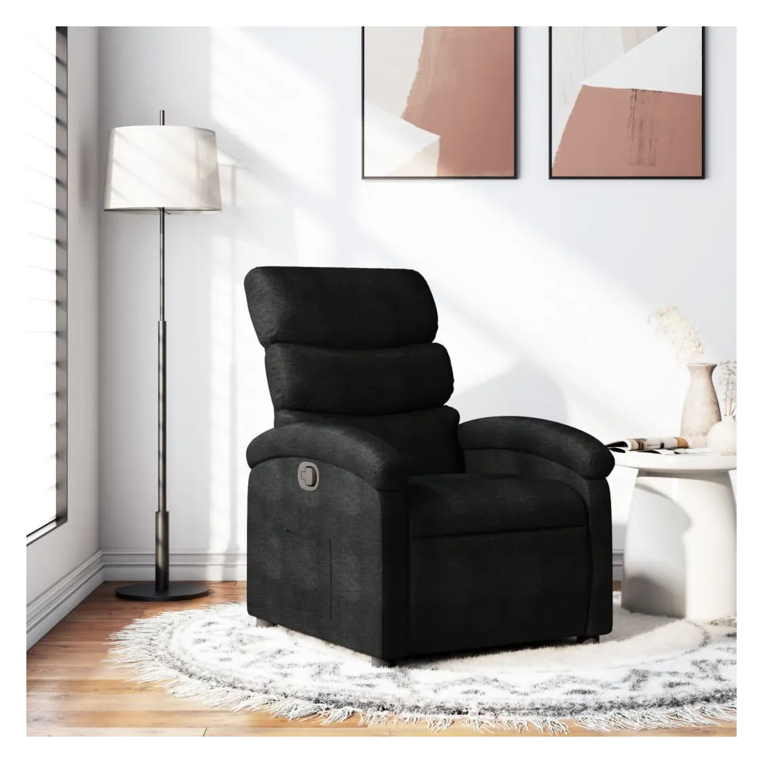 Asseyez-vous et détendez-vous dans ce fauteuil inclinable très confortable ! Fonction d'inclinaison manuelle : ce fauteuil inclinable est doté d'une poignée du côté droit. Vous pouvez régler manuellement le repose-pieds et le dossier dans n'importe quelle position selon votre confort en tirant simplement sur la poignée. Cette fonction permet une inclinaison maximale de 135 degrés. De plus, le dossier peut revenir rapidement à sa position d'origine en tirant simplement sur la poignée.Expérience d'assise confortable : le siège, le dossier et les larges accoudoirs bien rembourrés recouverts de tissu procurent une sensation confortable et chaleureuse, vous permettant de vous sentir enveloppé lorsque vous êtes assis. Le tissu présente un aspect simple et épuré et est respirant et durable.Poche latérale pratique : ce fauteuil est doté d'une poche latérale pour vous permettre de garder vos objets essentiels à portée de main.Cadre solide et stable : le cadre en bois et en métal offre une structure solide et une grande stabilité. Ce fauteuil inclinable est confortable et durable.