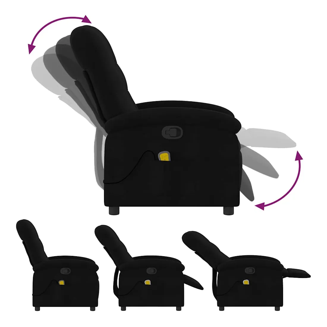 Asseyez-vous et détendez-vous dans ce fauteuil inclinable de massage très confortable ! Fonction d'inclinaison manuelle : ce fauteuil inclinable est doté d'une poignée du côté droit. Vous pouvez régler manuellement le repose-pieds et le dossier dans n'importe quelle position selon votre confort en tirant simplement sur la poignée. Cette fonction permet une inclinaison maximale de 135 degrés. De plus, le dossier peut revenir rapidement à sa position d'origine en tirant simplement sur la poignée.Fonction de vibration : les 6 points de massage vous permettent de faire l'expérience d'un massage mieux ciblé. De plus, la télécommande incluse vous permet de choisir différents programmes de massage. La fonction de massage est alimentée par le connecteur USB, mais la source d'alimentation USB 5V certifiée n'est pas incluse.Expérience d'assise confortable : le siège, le dossier et les larges accoudoirs bien rembourrés recouverts de tissu procurent une sensation confortable et chaleureuse, vous permettant de vous sentir enveloppé lorsque vous êtes assis. Le tissu présente un aspect simple et épuré et est respirant et durable.Poche latérale pratique : ce fauteuil est doté d'une poche latérale pour ranger votre télécommande ou garder vos objets essentiels à portée de main.Cadre solide et stable : le cadre en bois et en métal offre une structure solide et une grande stabilité. Ce fauteuil inclinable est confortable et durable.
