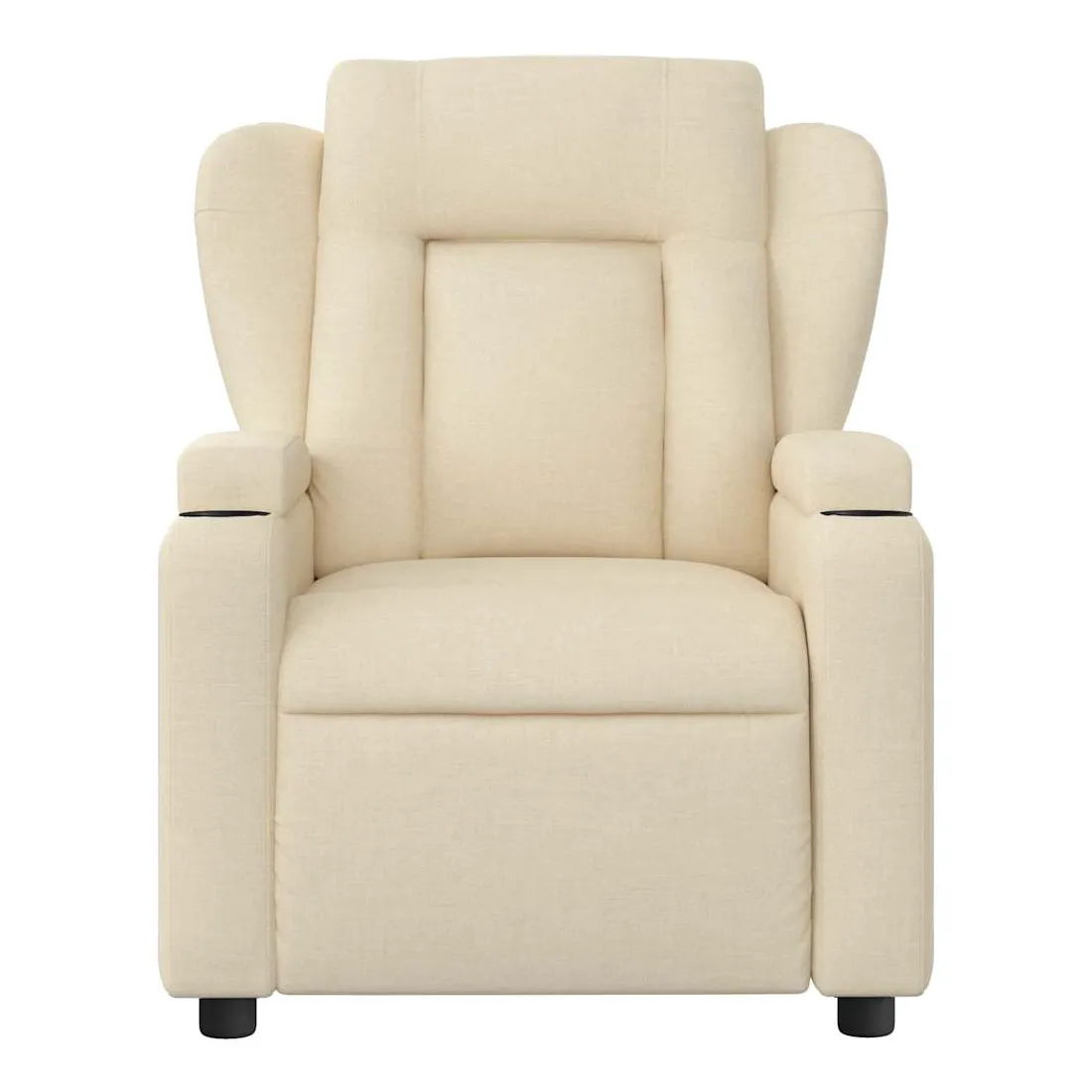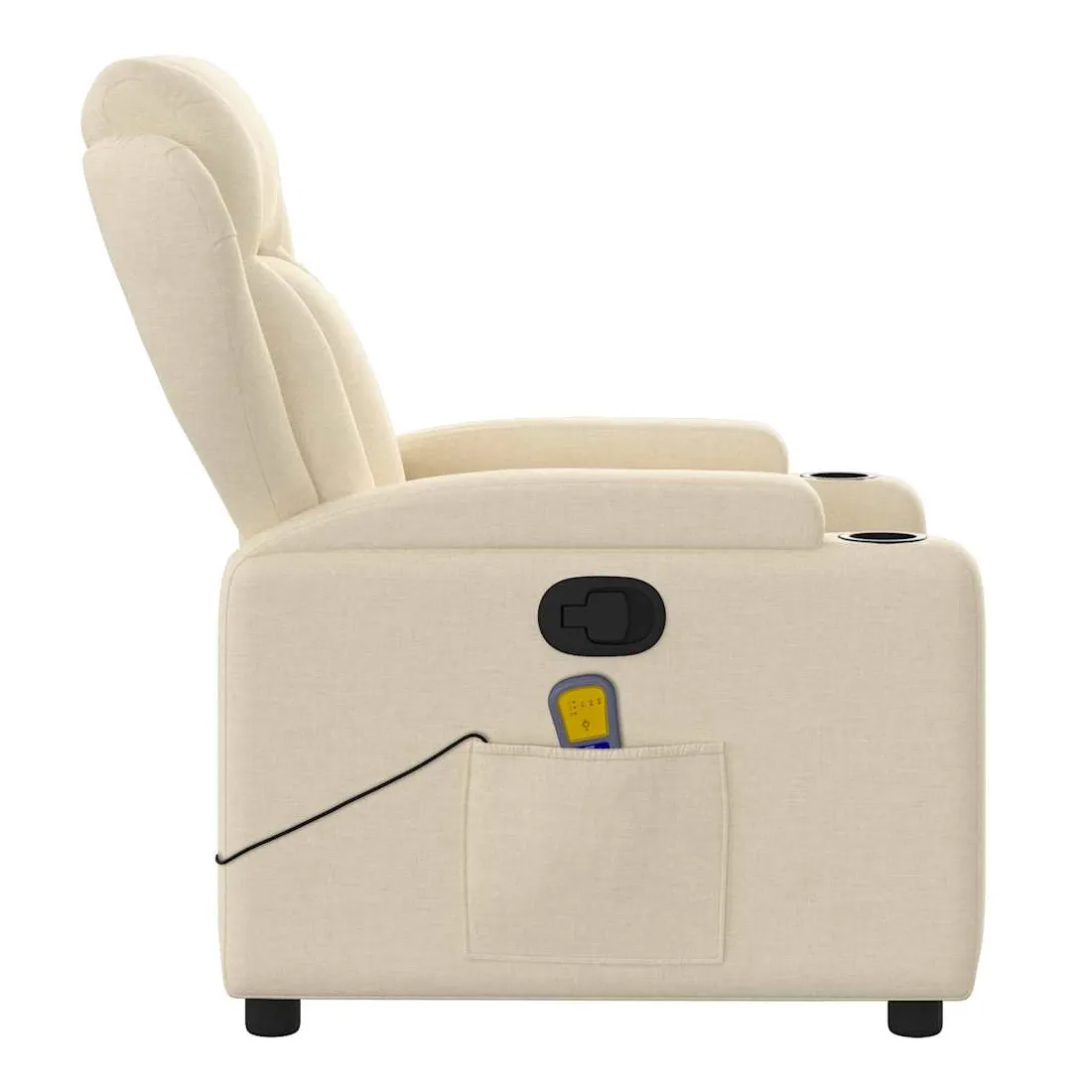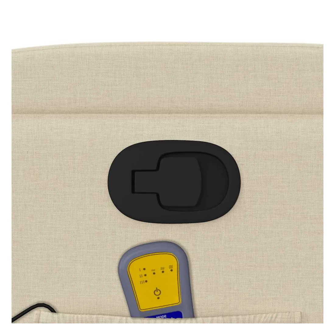 Asseyez-vous et détendez-vous dans ce fauteuil inclinable de massage très confortable ! Fonction d'inclinaison manuelle : ce fauteuil inclinable est doté d'une poignée du côté droit. Vous pouvez régler manuellement le repose-pieds et le dossier dans n'importe quelle position selon votre confort en tirant simplement sur la poignée. Cette fonction permet une inclinaison maximale de 135 degrés. De plus, le dossier peut revenir rapidement à sa position d'origine en tirant simplement sur la poignée.Fonction de vibration : les 6 points de massage vous permettent de faire l'expérience d'un massage mieux ciblé. De plus, la télécommande incluse vous permet de choisir différents programmes de massage. La fonction de massage est alimentée par le connecteur USB, mais la source d'alimentation USB 5V certifiée n'est pas incluse.Expérience d'assise confortable : le siège, le dossier et les larges accoudoirs bien rembourrés recouverts de tissu procurent une sensation confortable et chaleureuse, vous permettant de vous sentir enveloppé lorsque vous êtes assis. Le tissu présente un aspect simple et épuré et est respirant et durable.Porte-gobelets et poche latérale pratiques : ce fauteuil dispose de deux porte-gobelets pratiques pour vos boissons et d'une poche latérale pour votre télécommande ou pour garder vos objets essentiels à portée de main.Cadre solide et stable : le cadre en bois et en métal offre une structure solide et une grande stabilité. Ce fauteuil inclinable est confortable et durable.