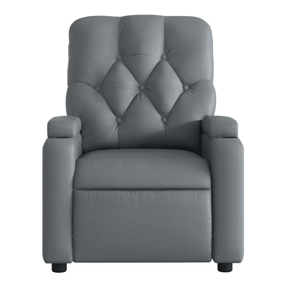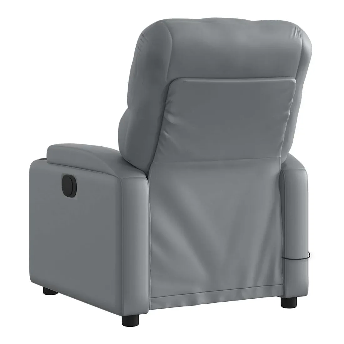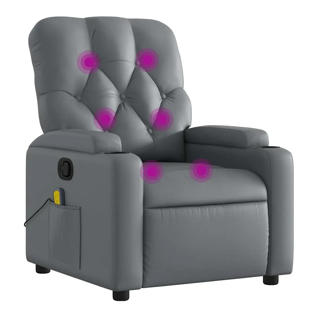 Asseyez-vous et détendez-vous dans ce fauteuil inclinable de massage très confortable ! Fonction d'inclinaison manuelle : ce fauteuil inclinable est doté d'une poignée du côté droit. Vous pouvez régler manuellement le repose-pieds et le dossier dans n'importe quelle position selon votre confort en tirant simplement sur la poignée. Cette fonction permet une inclinaison maximale de 135 degrés. De plus, le dossier peut revenir rapidement à sa position d'origine en tirant simplement sur la poignée.Fonction de vibration : les 6 points de massage vous permettent de faire l'expérience d'un massage mieux ciblé. De plus, la télécommande incluse vous permet de choisir différents programmes de massage. La fonction de massage est alimentée par le connecteur USB, mais la source d'alimentation USB 5V certifiée n'est pas incluse.Expérience de siège confortable : le siège, le dossier et les larges accoudoirs rembourrés épais recouverts de similicuir procurent une sensation confortable, vous faisant vous sentir enlacé lorsque vous êtes assis. Le similicuir est un matériau très résistant. Il est résistant aux taches, ce qui le rend facile à nettoyer avec un chiffon humide. La surface lisse donne également un aspect luxueux et la beauté du cuir véritable.Porte-gobelets et poche latérale pratiques : ce fauteuil dispose de deux porte-gobelets pratiques pour vos boissons et d'une poche latérale pour votre télécommande ou pour garder vos objets essentiels à portée de main.Cadre solide et stable : le cadre en bois et en métal offre une structure solide et une grande stabilité. Ce fauteuil inclinable est confortable et durable.