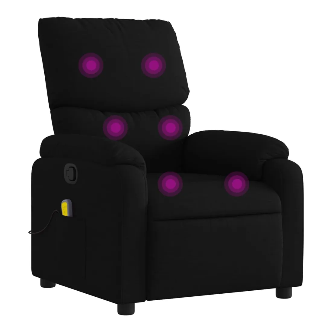 Asseyez-vous et détendez-vous dans ce fauteuil inclinable de massage très confortable ! Fonction d'inclinaison manuelle : ce fauteuil inclinable est doté d'une poignée du côté droit. Vous pouvez régler manuellement le repose-pieds et le dossier dans n'importe quelle position selon votre confort en tirant simplement sur la poignée. Cette fonction permet une inclinaison maximale de 135 degrés. De plus, le dossier peut revenir rapidement à sa position d'origine en tirant simplement sur la poignée.Fonction de vibration : les 6 points de massage vous permettent de faire l'expérience d'un massage mieux ciblé. De plus, la télécommande incluse vous permet de choisir différents programmes de massage. La fonction de massage est alimentée par le connecteur USB, mais la source d'alimentation USB 5V certifiée n'est pas incluse.Expérience d'assise confortable : le siège, le dossier et les larges accoudoirs bien rembourrés recouverts de tissu procurent une sensation confortable et chaleureuse, vous permettant de vous sentir enveloppé lorsque vous êtes assis. Le tissu présente un aspect simple et épuré et est respirant et durable.Poche latérale pratique : ce fauteuil est doté d'une poche latérale pour ranger votre télécommande ou garder vos objets essentiels à portée de main.Cadre solide et stable : le cadre en bois et en métal offre une structure solide et une grande stabilité. Ce fauteuil inclinable est confortable et durable.
