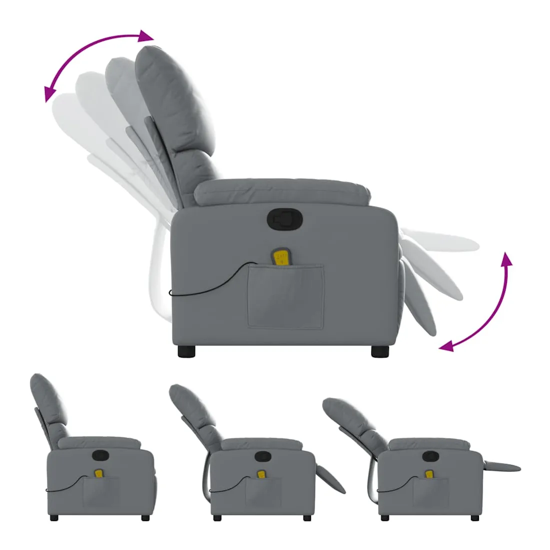 Asseyez-vous et détendez-vous dans ce fauteuil inclinable de massage très confortable ! Fonction d'inclinaison manuelle : ce fauteuil inclinable est doté d'une poignée du côté droit. Vous pouvez régler manuellement le repose-pieds et le dossier dans n'importe quelle position selon votre confort en tirant simplement sur la poignée. Cette fonction permet une inclinaison maximale de 135 degrés. De plus, le dossier peut revenir rapidement à sa position d'origine en tirant simplement sur la poignée.Fonction de vibration : les 6 points de massage vous permettent de faire l'expérience d'un massage mieux ciblé. De plus, la télécommande incluse vous permet de choisir différents programmes de massage. La fonction de massage est alimentée par le connecteur USB, mais la source d'alimentation USB 5V certifiée n'est pas incluse.Expérience de siège confortable : le siège, le dossier et les larges accoudoirs rembourrés épais recouverts de similicuir procurent une sensation confortable, vous faisant vous sentir enlacé lorsque vous êtes assis. Le similicuir est un matériau très résistant. Il est résistant aux taches, ce qui le rend facile à nettoyer avec un chiffon humide. La surface lisse donne également un aspect luxueux et la beauté du cuir véritable.Poche latérale pratique : ce fauteuil est doté d'une poche latérale pour ranger votre télécommande ou garder vos objets essentiels à portée de main.Cadre solide et stable : le cadre en bois et en métal offre une structure solide et une grande stabilité. Ce fauteuil inclinable est confortable et durable.