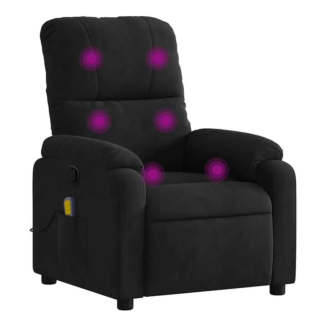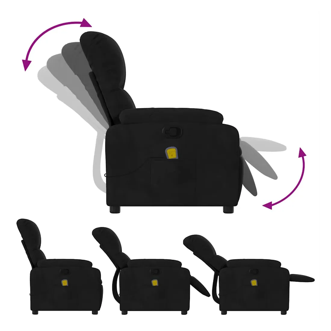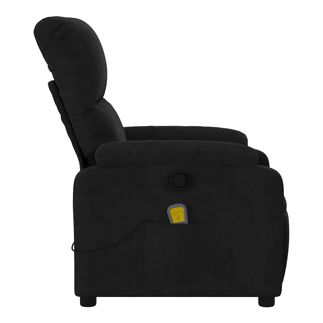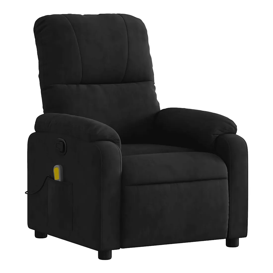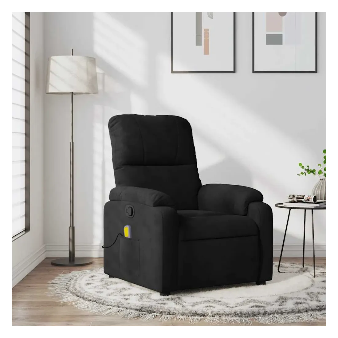 Asseyez-vous et détendez-vous dans ce fauteuil inclinable de massage très confortable ! Fonction d'inclinaison manuelle : ce fauteuil inclinable est doté d'une poignée du côté droit. Vous pouvez régler manuellement le repose-pieds et le dossier dans n'importe quelle position selon votre confort en tirant simplement sur la poignée. Cette fonction permet une inclinaison maximale de 135 degrés. De plus, le dossier peut revenir rapidement à sa position d'origine en tirant simplement sur la poignée.Fonction de vibration : les 6 points de massage vous permettent de faire l'expérience d'un massage mieux ciblé. De plus, la télécommande incluse vous permet de choisir différents programmes de massage. La fonction de massage est alimentée par le connecteur USB, mais la source d'alimentation USB 5V certifiée n'est pas incluse.Expérience d'assise confortable : l'assise, le dossier et les larges accoudoirs recouverts de microfibres et dotés d'un rembourrage épais procurent une sensation de confort et de chaleur, vous permettant de vous sentir enveloppé lorsque vous êtes assis. La microfibre est un tissu synthétique composé de fibres ultrafines, particulièrement imperméables aux taches. La microfibre est un excellent choix pour le revêtement des meubles en raison de sa durabilité et de sa facilité d'entretien.Poche latérale pratique : ce fauteuil est doté d'une poche latérale pour ranger votre télécommande ou garder vos objets essentiels à portée de main.Cadre solide et stable : le cadre en bois et en métal offre une structure solide et une grande stabilité. Ce fauteuil inclinable est confortable et durable.