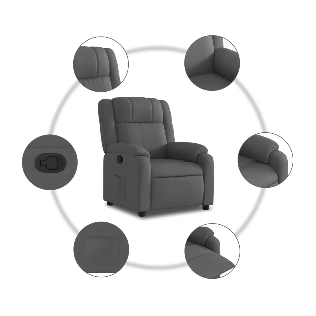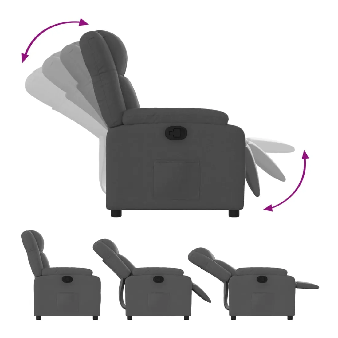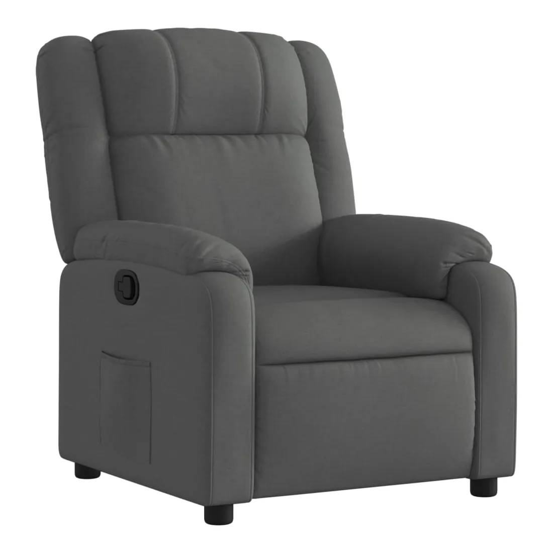 Asseyez-vous et détendez-vous dans ce fauteuil inclinable très confortable ! Fonction d'inclinaison manuelle : ce fauteuil inclinable est doté d'une poignée du côté droit. Vous pouvez régler manuellement le repose-pieds et le dossier dans n'importe quelle position selon votre confort en tirant simplement sur la poignée. Cette fonction permet une inclinaison maximale de 135 degrés. De plus, le dossier peut revenir rapidement à sa position d'origine en tirant simplement sur la poignée.Expérience d'assise confortable : le siège, le dossier et les larges accoudoirs bien rembourrés recouverts de tissu procurent une sensation confortable et chaleureuse, vous permettant de vous sentir enveloppé lorsque vous êtes assis. Le tissu présente un aspect simple et épuré et est respirant et durable.Poche latérale pratique : ce fauteuil est doté d'une poche latérale pour vous permettre de garder vos objets essentiels à portée de main.Cadre solide et stable : le cadre en bois et en métal offre une structure solide et une grande stabilité. Ce fauteuil inclinable est confortable et durable.
