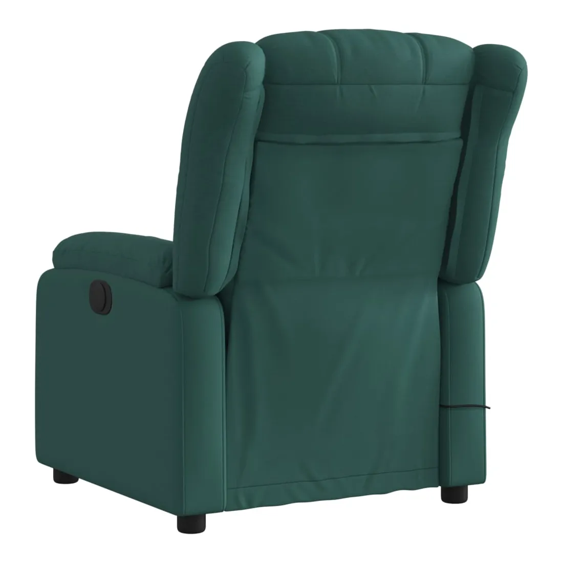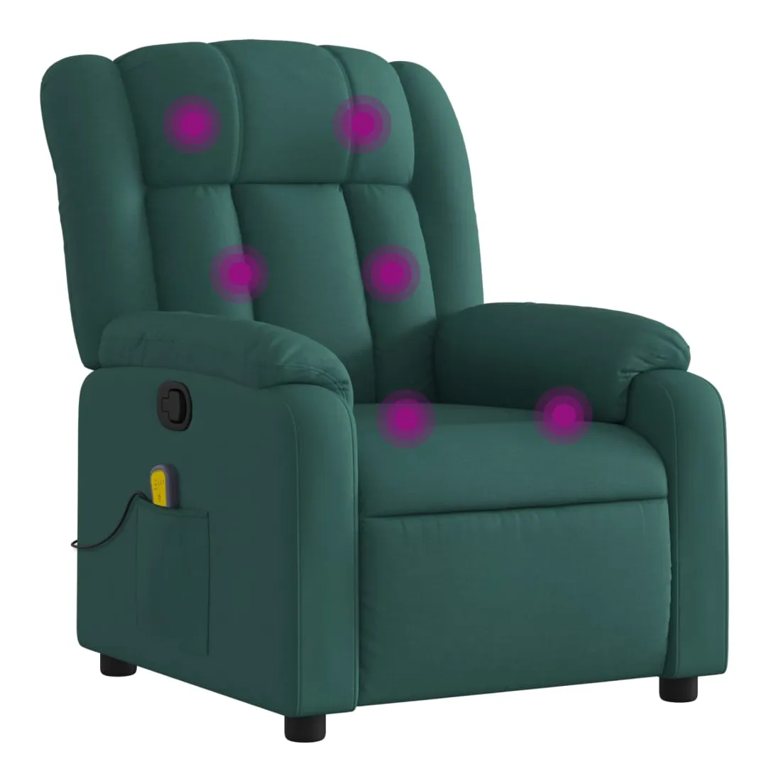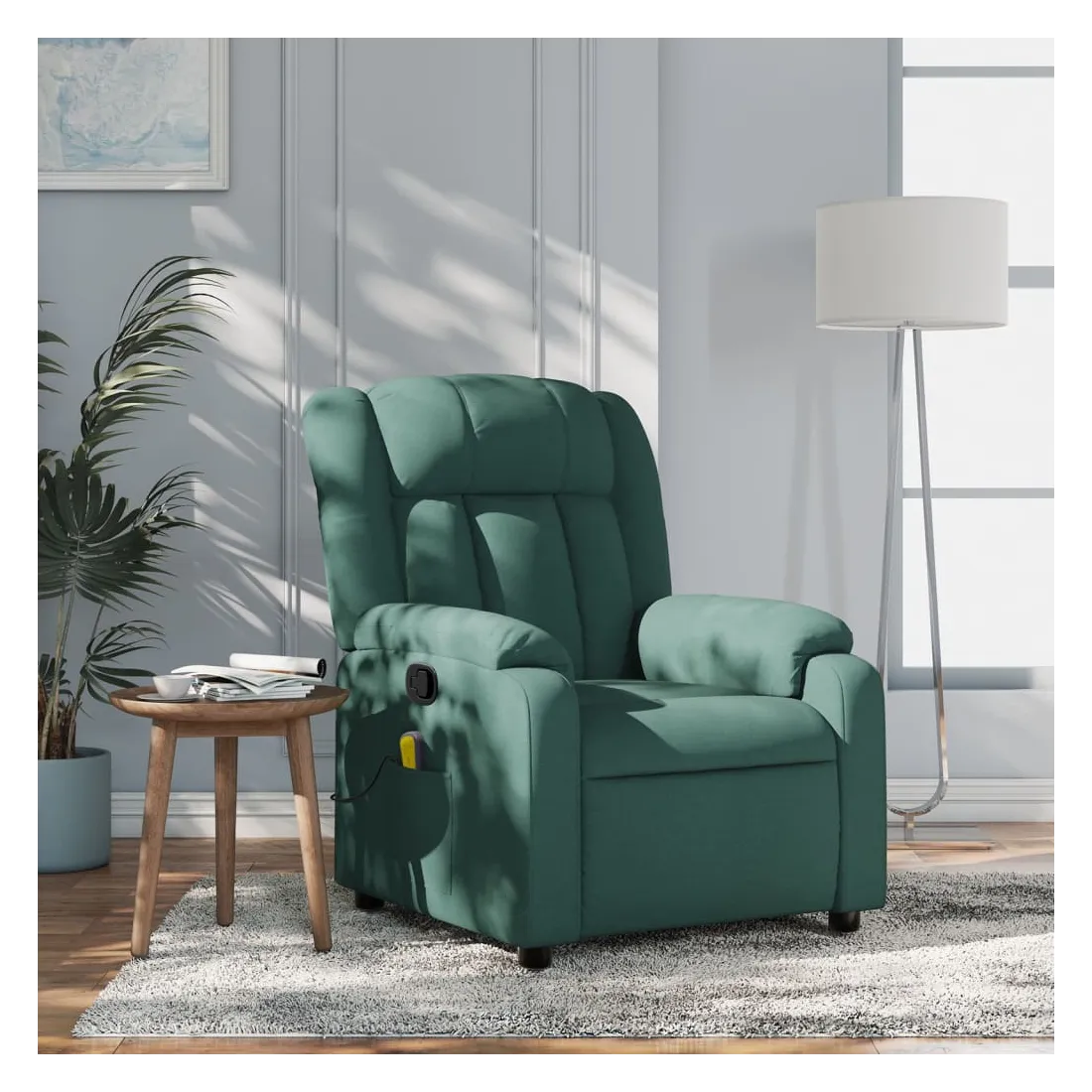 Asseyez-vous et détendez-vous dans ce fauteuil inclinable de massage très confortable ! Fonction d'inclinaison manuelle : ce fauteuil inclinable est doté d'une poignée du côté droit. Vous pouvez régler manuellement le repose-pieds et le dossier dans n'importe quelle position selon votre confort en tirant simplement sur la poignée. Cette fonction permet une inclinaison maximale de 135 degrés. De plus, le dossier peut revenir rapidement à sa position d'origine en tirant simplement sur la poignée.Fonction de vibration : les 6 points de massage vous permettent de faire l'expérience d'un massage mieux ciblé. De plus, la télécommande incluse vous permet de choisir différents programmes de massage. La fonction de massage est alimentée par le connecteur USB, mais la source d'alimentation USB 5V certifiée n'est pas incluse.Expérience d'assise confortable : le siège, le dossier et les larges accoudoirs bien rembourrés recouverts de tissu procurent une sensation confortable et chaleureuse, vous permettant de vous sentir enveloppé lorsque vous êtes assis. Le tissu présente un aspect simple et épuré et est respirant et durable.Poche latérale pratique : ce fauteuil est doté d'une poche latérale pour ranger votre télécommande ou garder vos objets essentiels à portée de main.Cadre solide et stable : le cadre en bois et en métal offre une structure solide et une grande stabilité. Ce fauteuil inclinable est confortable et durable.