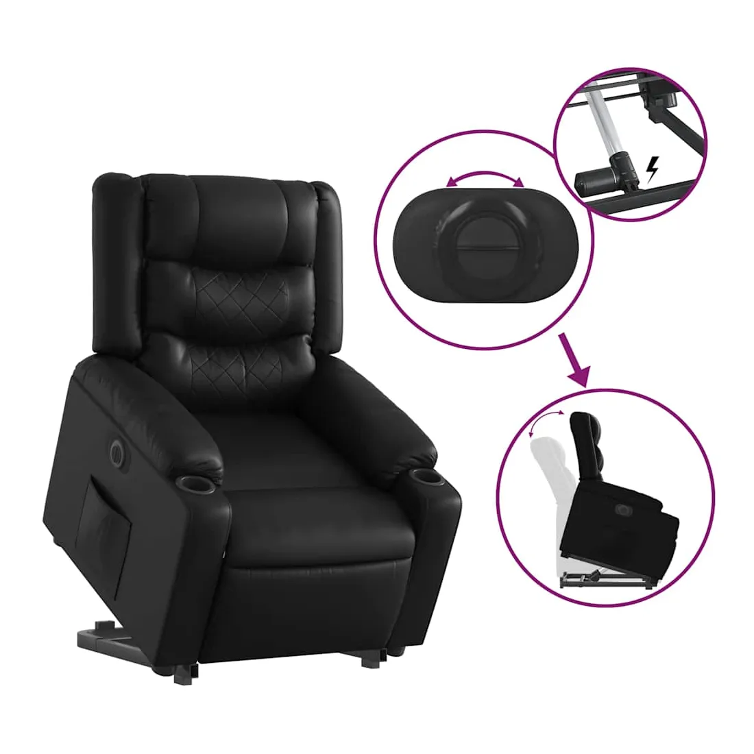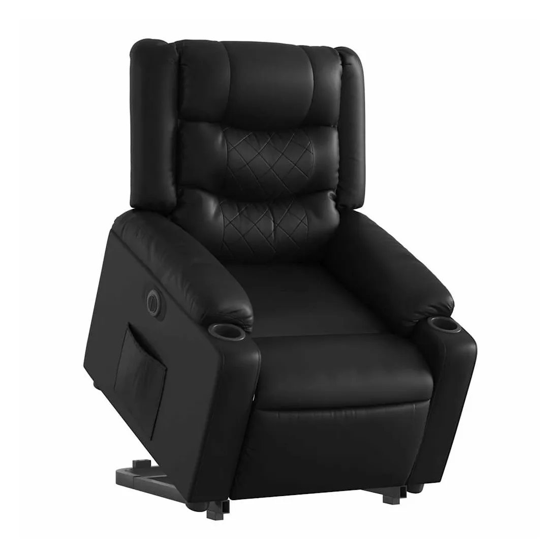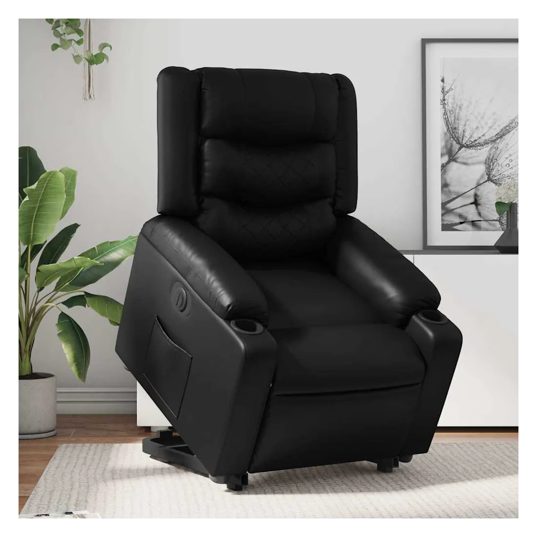 Asseyez-vous et détendez-vous dans ce fauteuil inclinable électrique très confortable ! Fonction de levage électrique : ce fauteuil inclinable pour personnes âgées est équipé d'un moteur électrique pour la fonction de levage. Grâce à la fonction qui pousse toute la chaise vers le haut, vous pouvez facilement vous tenir debout sans stresser votre dos et vos genoux en appuyant simplement sur le bouton.Fonction d'inclinaison électrique : ce fauteuil inclinable est également équipé d'un moteur électrique qui permet de régler automatiquement le repose-pied et le dossier dans n'importe quelle position, selon votre confort, en appuyant simplement sur le bouton situé sur le côté du fauteuil. Cette fonction permet une inclinaison maximale de 135 degrés. En outre, le dossier peut revenir automatiquement à sa position d'origine par une simple pression sur le bouton.Expérience de siège confortable : le siège, le dossier et les larges accoudoirs rembourrés épais recouverts de similicuir procurent une sensation confortable, vous faisant vous sentir enlacé lorsque vous êtes assis. Le similicuir est un matériau très résistant. Il est résistant aux taches, ce qui le rend facile à nettoyer avec un chiffon humide. La surface lisse donne également un aspect luxueux et la beauté du cuir véritable.Poche latérale pratique : ce fauteuil est doté d'une poche latérale pour vous permettre de garder vos objets essentiels à portée de main.Cadre solide et stable : le cadre en bois et en métal offre une structure solide et une grande stabilité. Ce fauteuil inclinable est confortable et durable.