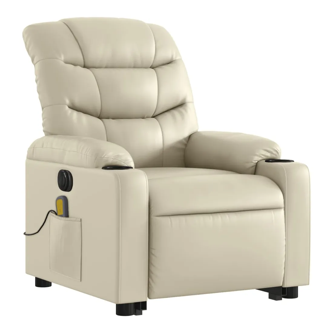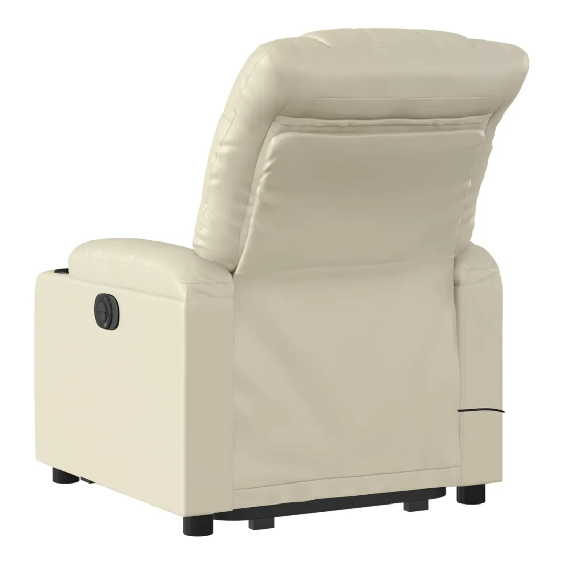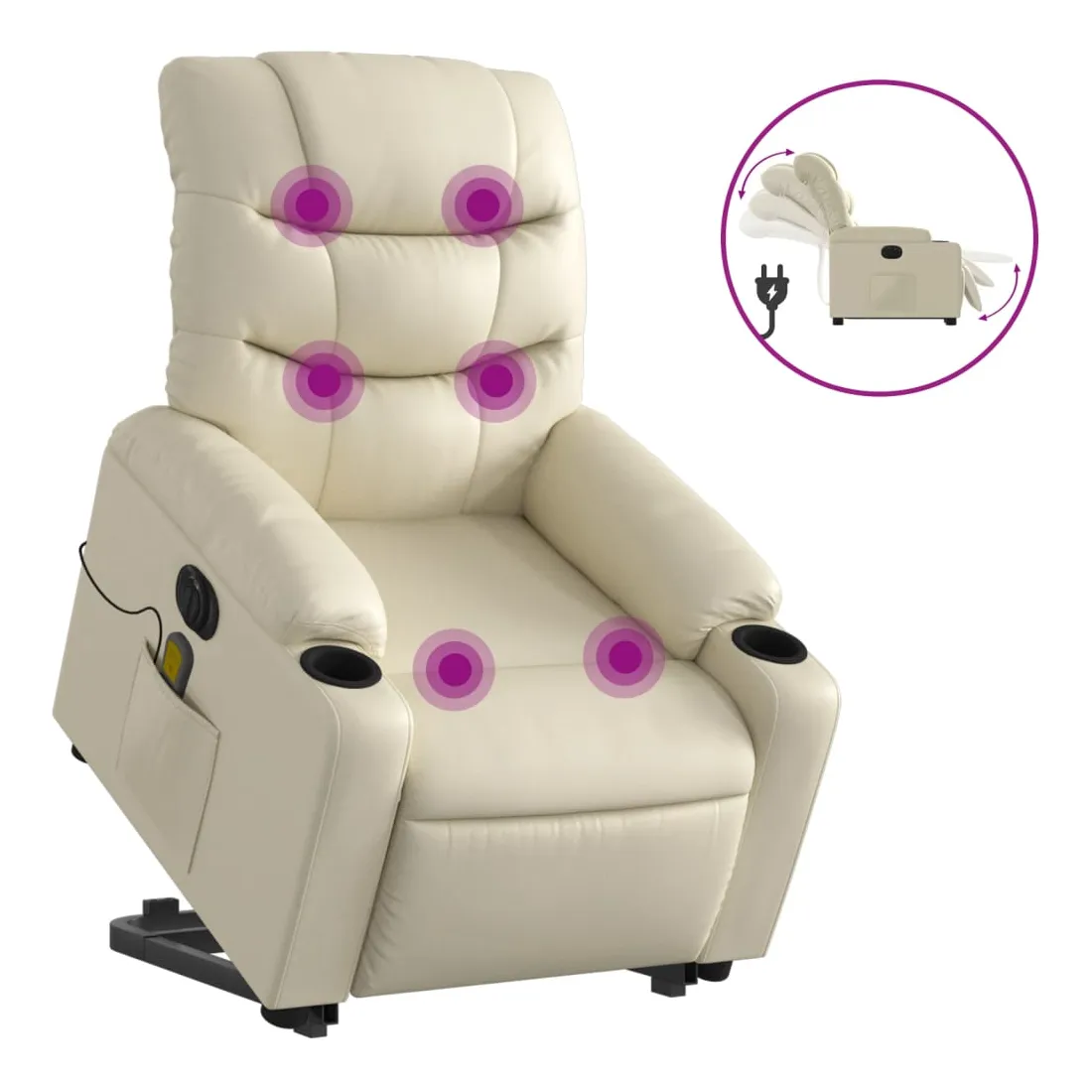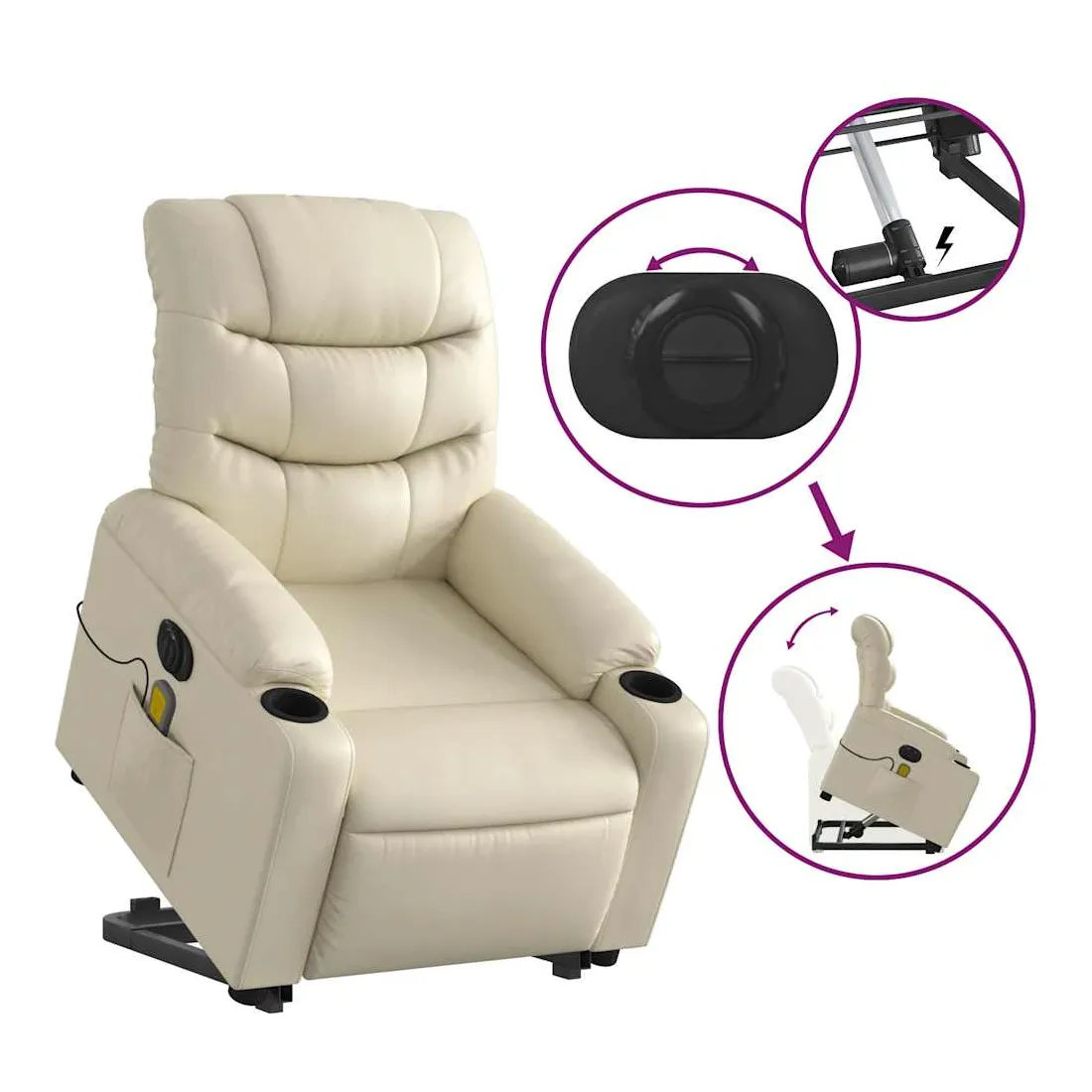 Asseyez-vous et détendez-vous dans ce fauteuil inclinable de massage électrique très confortable ! Fonction de levage électrique : ce fauteuil inclinable pour personnes âgées est équipé d'un moteur électrique pour la fonction de levage. Grâce à la fonction qui pousse toute la chaise vers le haut, vous pouvez facilement vous tenir debout sans stresser votre dos et vos genoux en appuyant simplement sur le bouton.Fonction d'inclinaison électrique : ce fauteuil inclinable est également équipé d'un moteur électrique qui permet de régler automatiquement le repose-pied et le dossier dans n'importe quelle position, selon votre confort, en appuyant simplement sur le bouton situé sur le côté du fauteuil. Cette fonction permet une inclinaison maximale de 135 degrés. En outre, le dossier peut revenir automatiquement à sa position d'origine par une simple pression sur le bouton.Fonction de vibration : les 6 points de massage vous permettent de faire l'expérience d'un massage mieux ciblé. De plus, la télécommande incluse vous permet de choisir différents programmes de massage. La fonction de massage est alimentée par le connecteur USB qui nécessite une source d'alimentation USB certifiée de 5 V (non fournie).Expérience de siège confortable : le siège, le dossier et les larges accoudoirs rembourrés épais recouverts de similicuir procurent une sensation confortable et chaleureuse, vous faisant vous sentir enlacé lorsque vous êtes assis. Le simili cuir est un matériau très résistant. Il est résistant aux taches, ce qui le rend facile à nettoyer avec un chiffon humide. La surface lisse donne également un aspect luxueux et la beauté du cuir véritable.Poche latérale pratique : ce fauteuil est doté d'une poche latérale pour ranger votre télécommande ou garder vos objets essentiels à portée de main.Cadre solide et stable : le cadre en bois et en métal offre une structure solide et une grande stabilité. Ce fauteuil inclinable est confortable et durable.