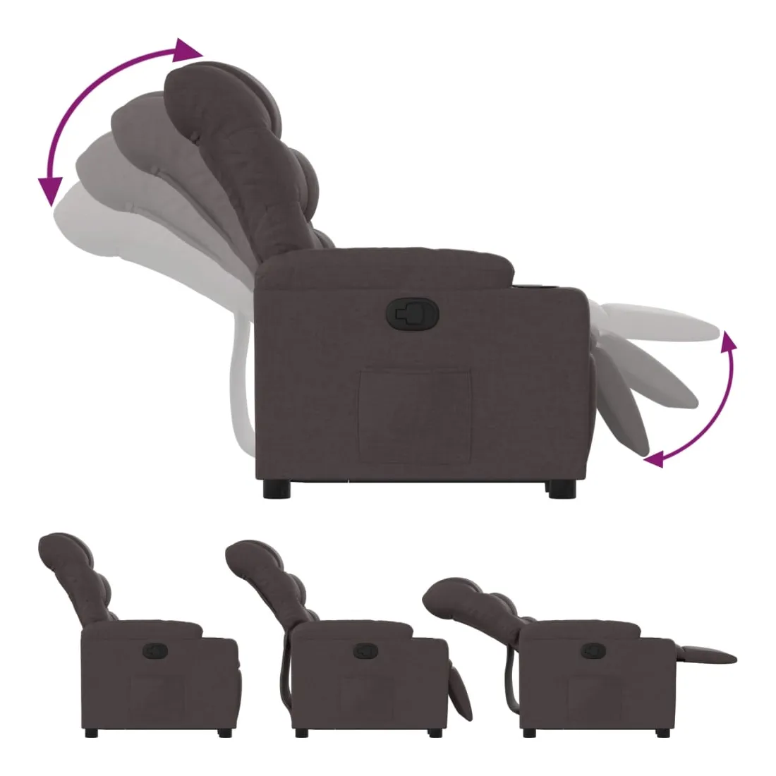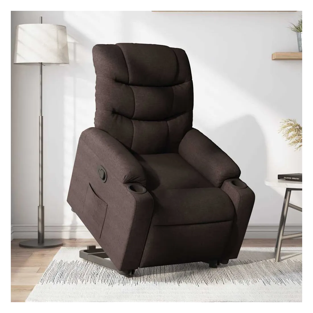 Asseyez-vous et détendez-vous dans ce fauteuil inclinable très confortable ! Fonction de levage électrique : ce fauteuil inclinable pour personnes âgées est équipé d'un moteur électrique pour la fonction de levage. Grâce à la fonction qui pousse toute la chaise vers le haut, vous pouvez facilement vous tenir debout sans stresser votre dos et vos genoux en appuyant simplement sur le bouton.Fonction d'inclinaison manuelle : ce fauteuil inclinable est doté d'une poignée du côté droit. Vous pouvez régler manuellement le repose-pieds et le dossier dans n'importe quelle position selon votre confort en tirant simplement sur la poignée. Cette fonction permet une inclinaison maximale de 135 degrés. De plus, le dossier peut revenir rapidement à sa position d'origine en tirant simplement sur la poignée.Expérience d'assise confortable : le siège, le dossier et les larges accoudoirs bien rembourrés recouverts de tissu procurent une sensation confortable et chaleureuse, vous permettant de vous sentir enveloppé lorsque vous êtes assis. Le tissu présente un aspect simple et épuré et est respirant et durable.Poche latérale pratique : ce fauteuil est doté d'une poche latérale pour vous permettre de garder vos objets essentiels à portée de main.Cadre solide et stable : le cadre en bois et en métal offre une structure solide et une grande stabilité. Ce fauteuil inclinable est confortable et durable.